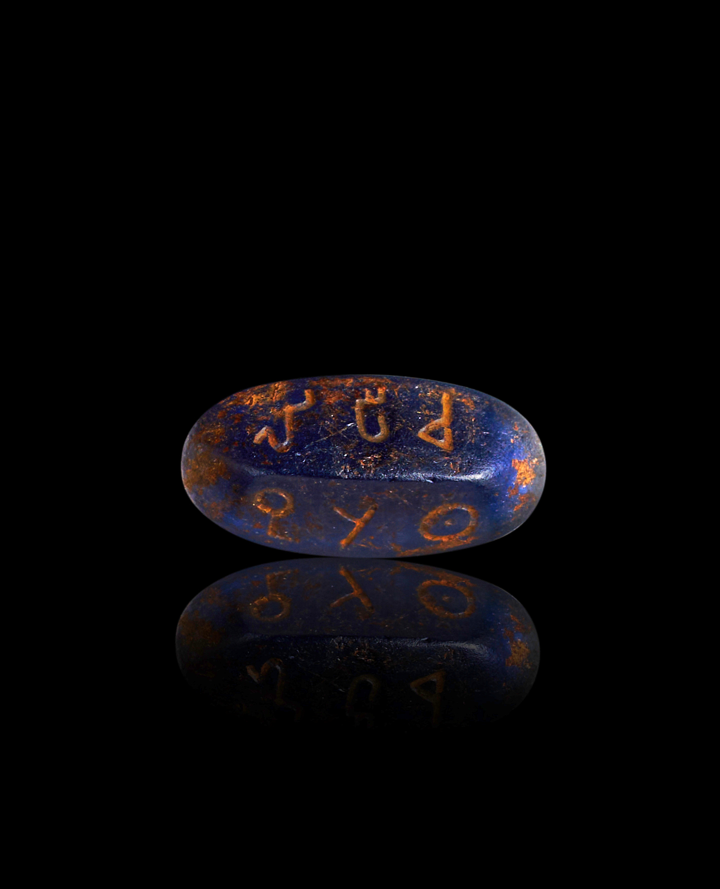 AN INSCRIBED BLUE GLASS BEAD AMULET, NEAR EAST, MID FIRST MILLENNIUM B.C