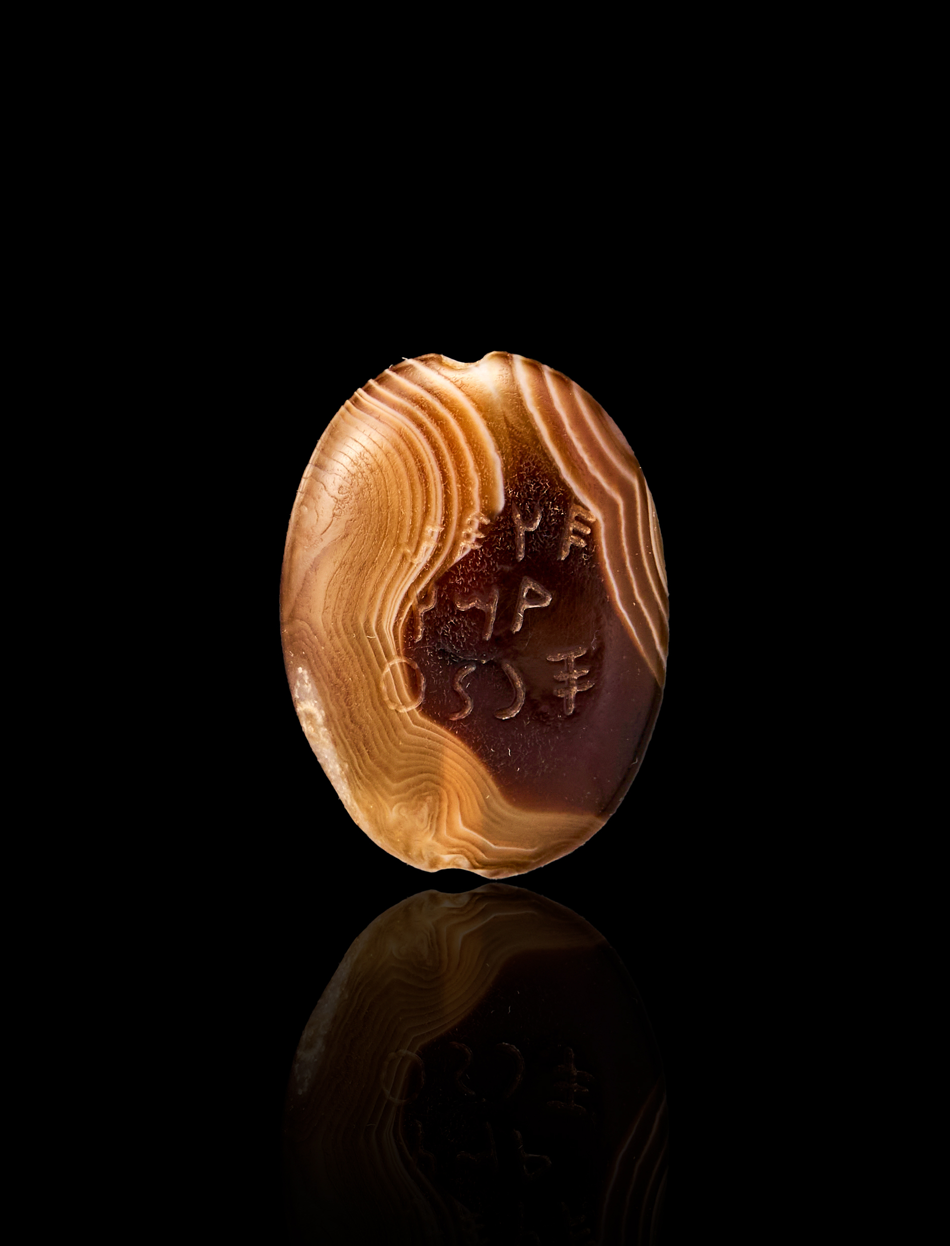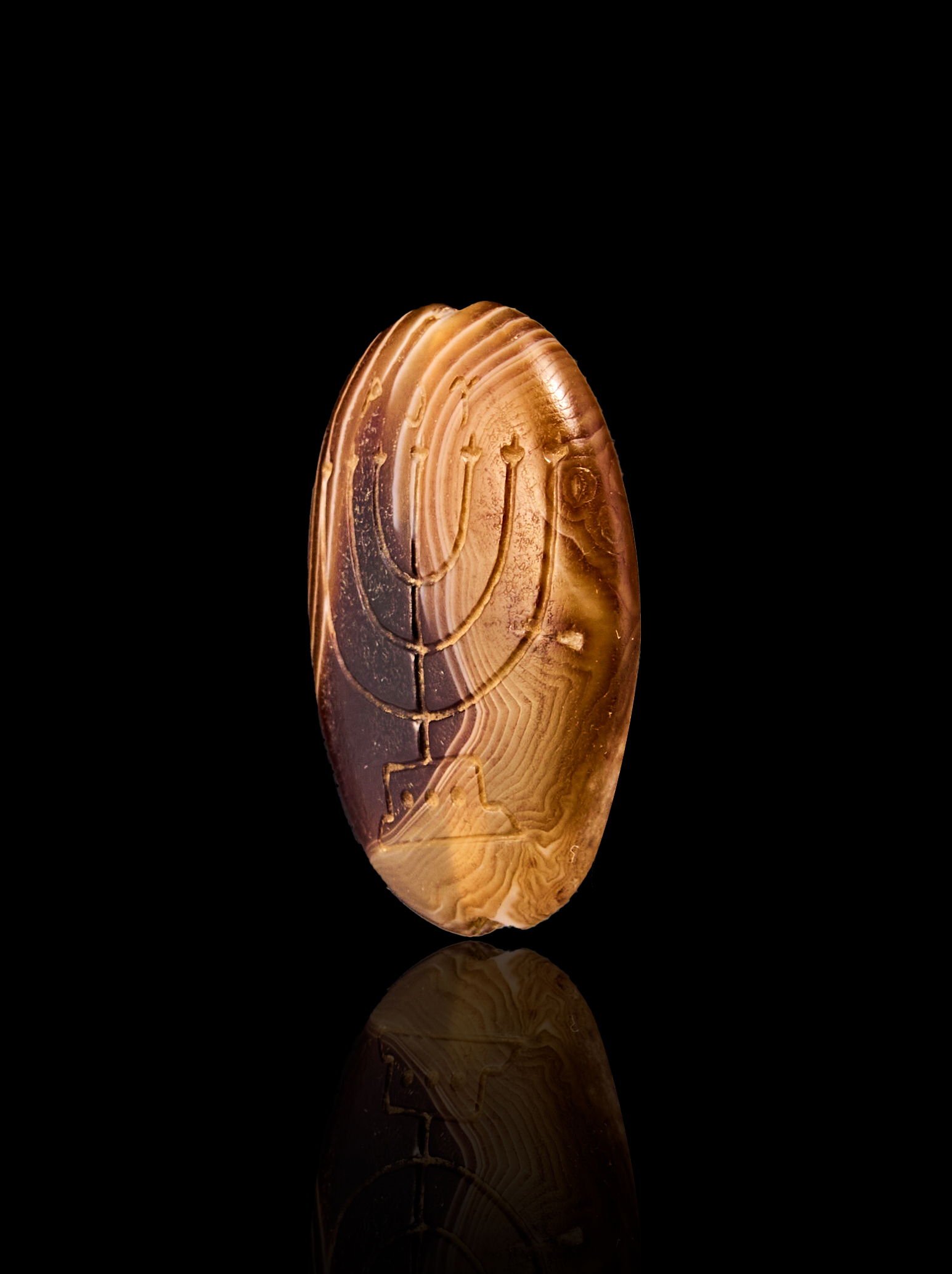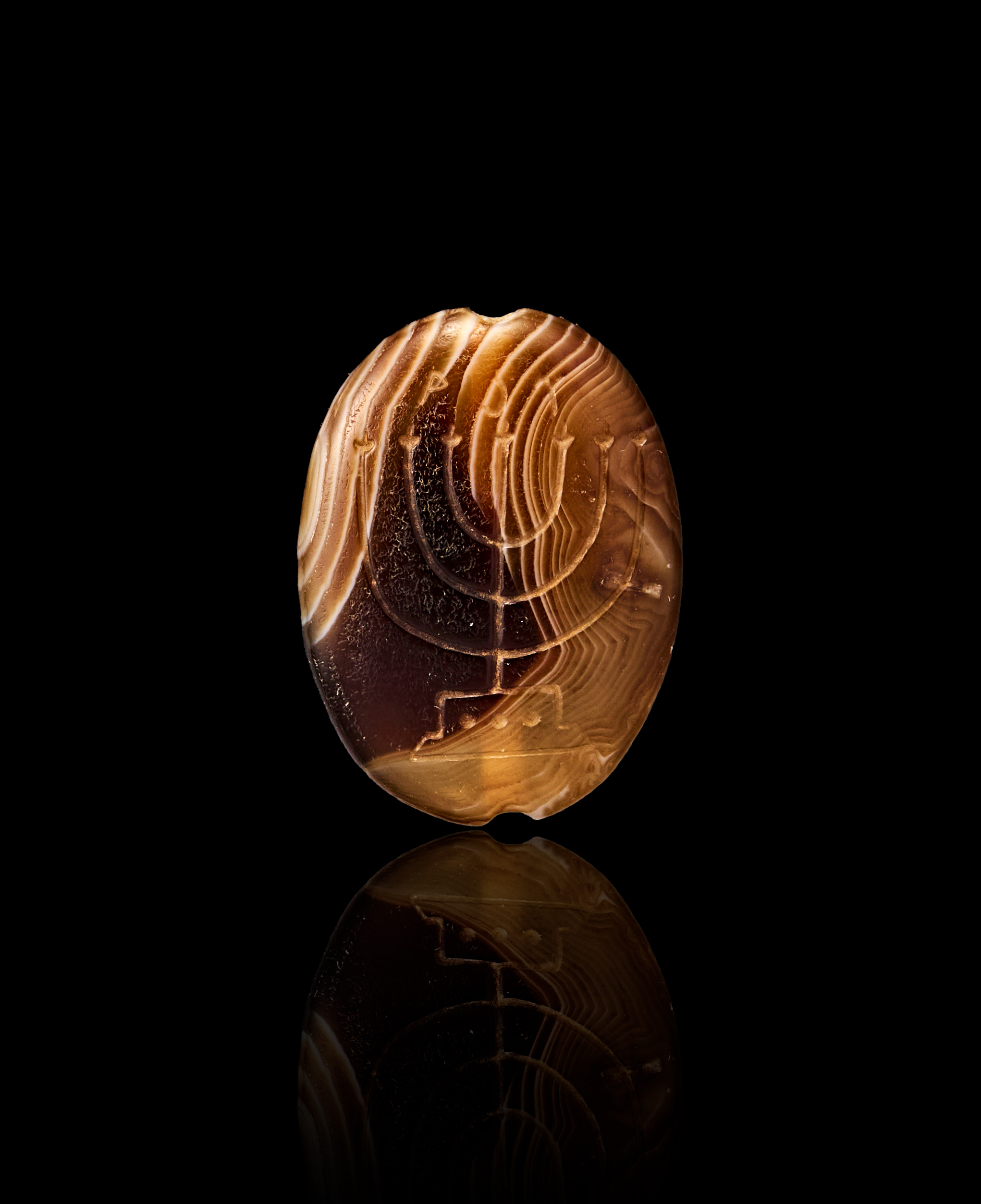 AN INSCRIBED BANDED AGATE SARDONYX AGATE WITH MENORAH, PERSIAN PERIOD, 400 – 300 B.C