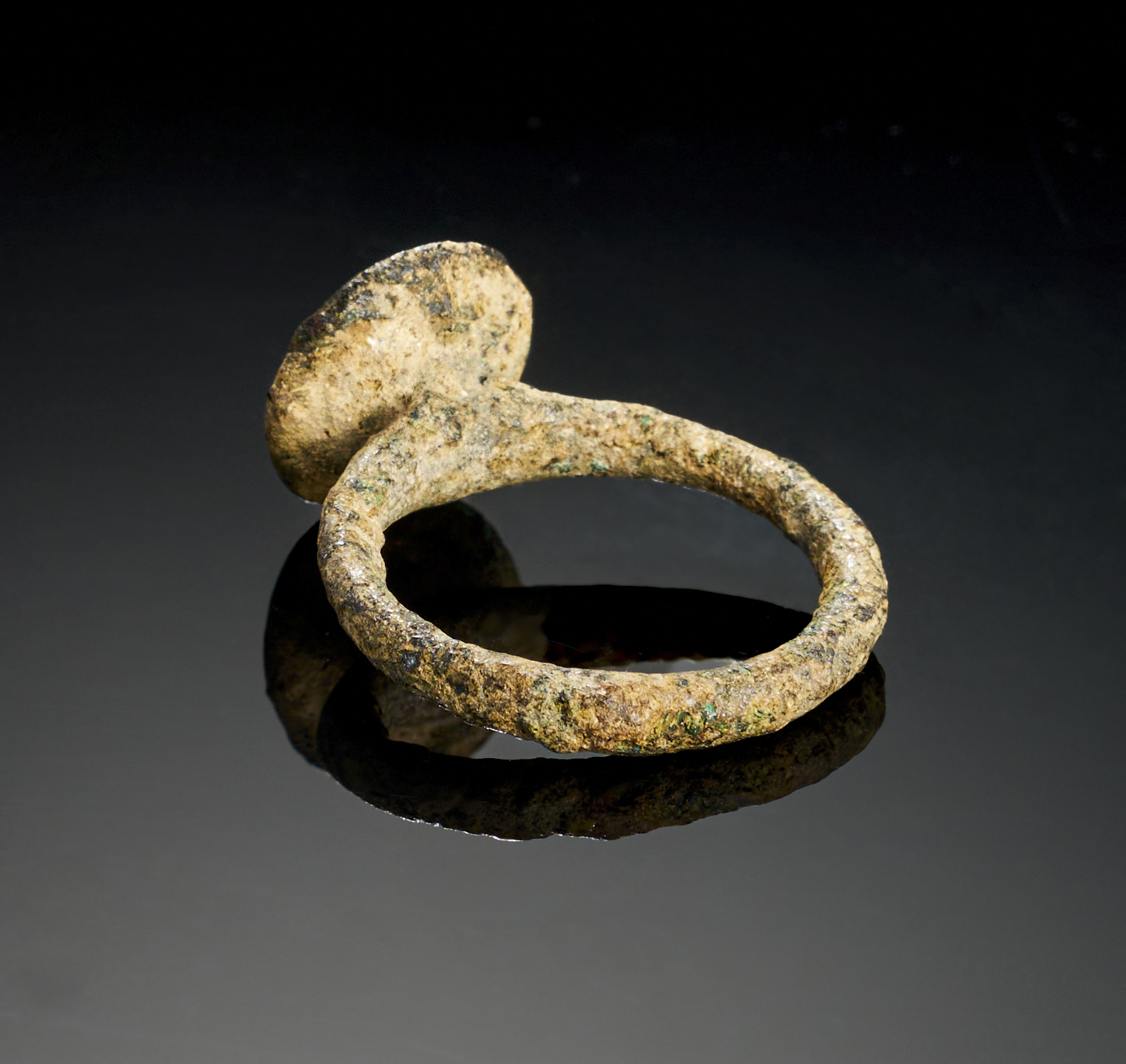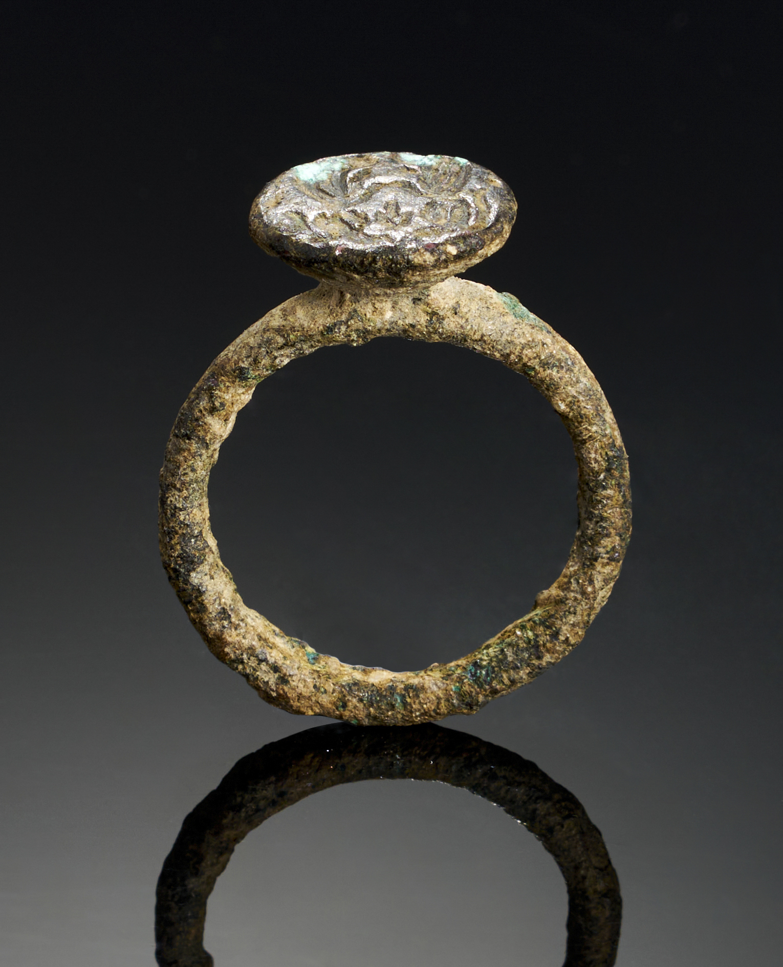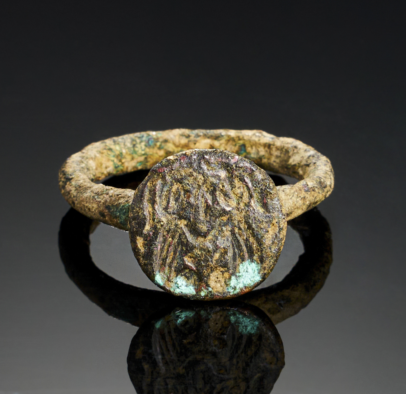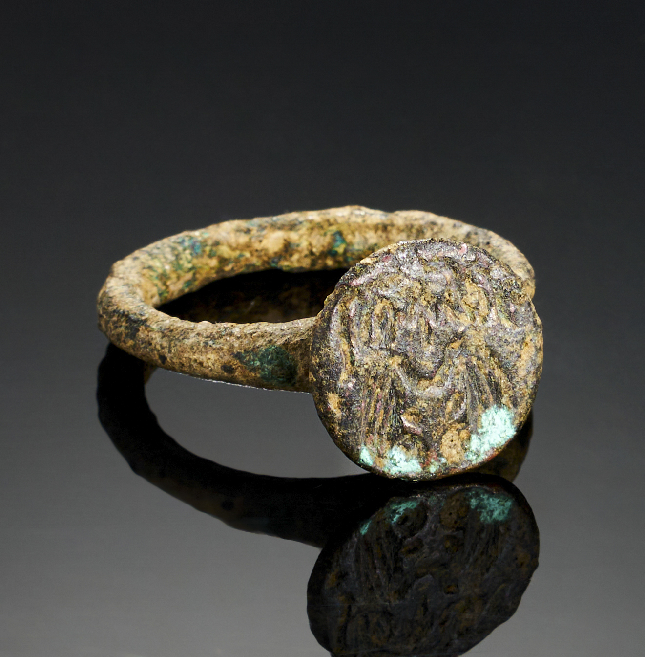 ANCIENT BRONZE RING, BYZANTINE PERIOD WITH CHRISTIAN SYMBOLS, 5TH – 6TH CENTURY A.D