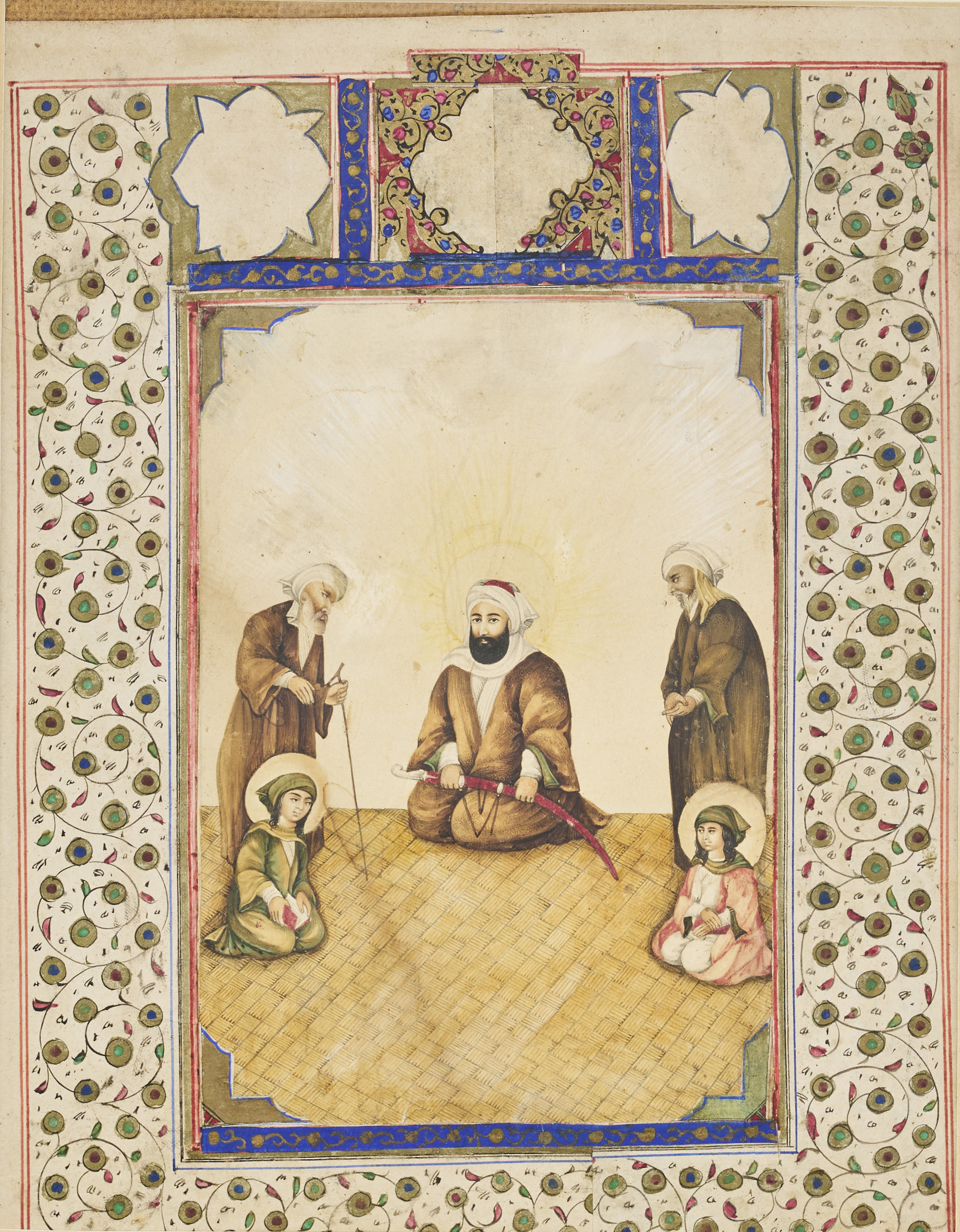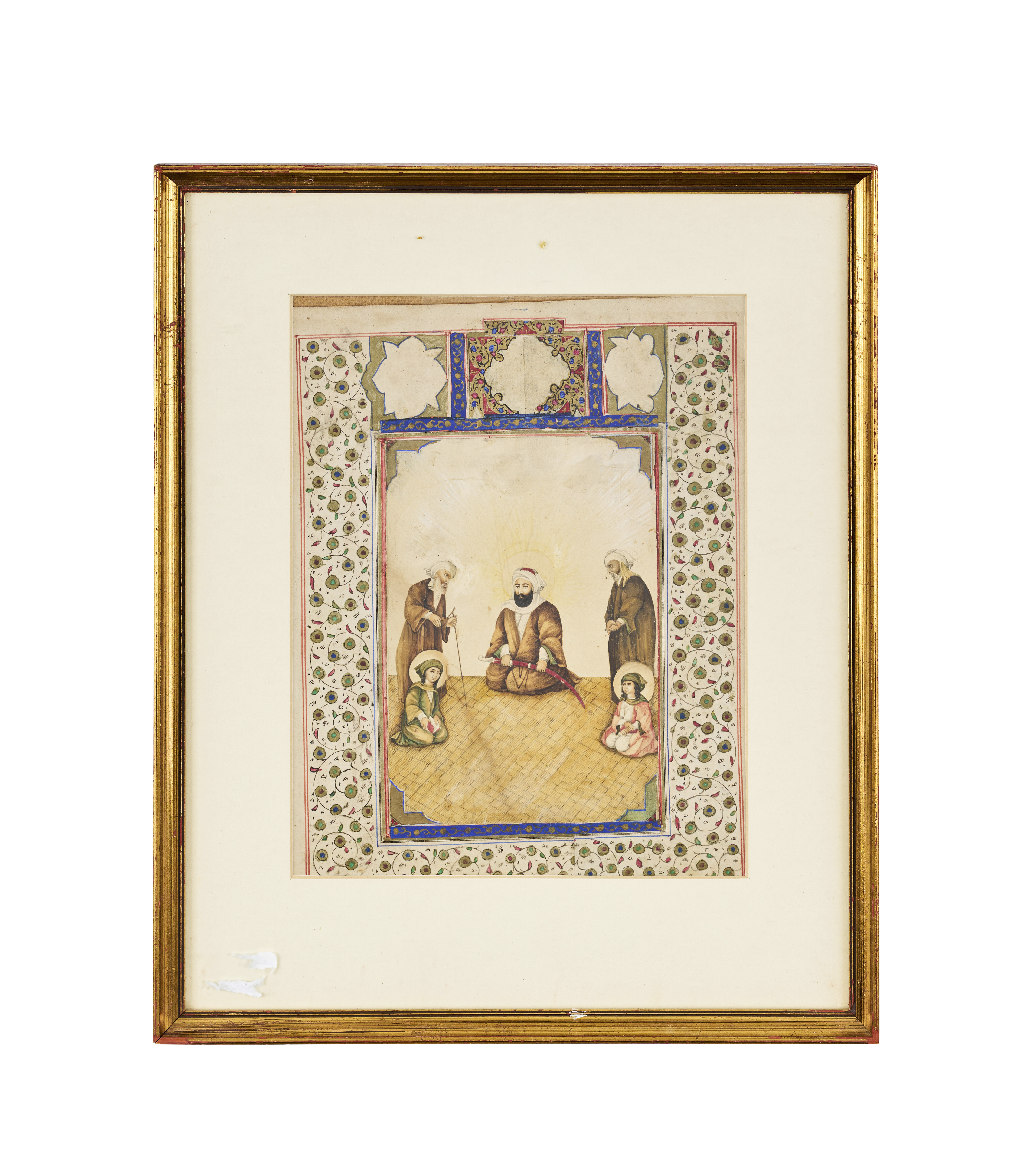 A 19TH CENTURY PERSIAN QAJAR MINIATURE OF IMAM ALI AND HIS SONS HASSAN AND HUSSEIN