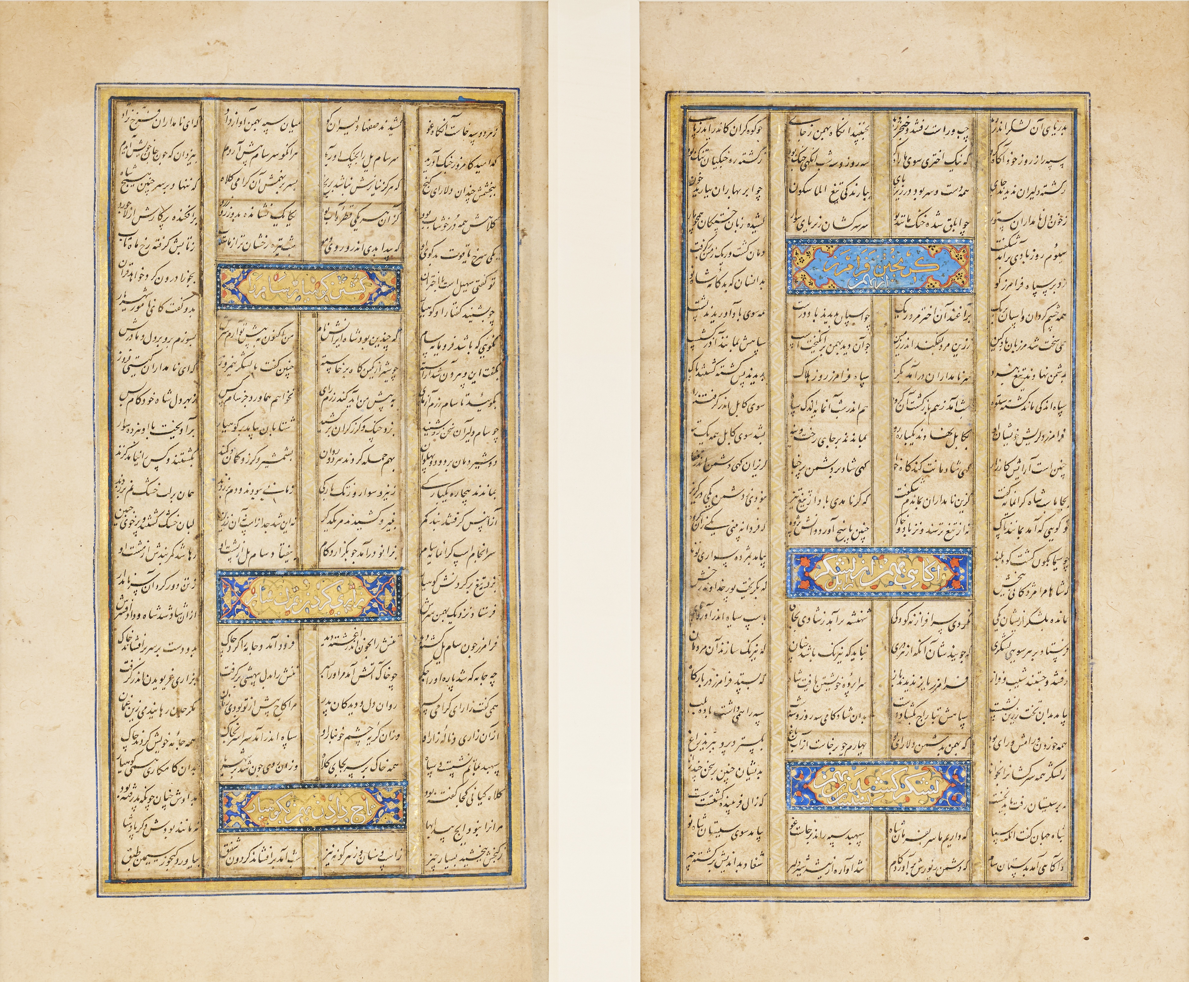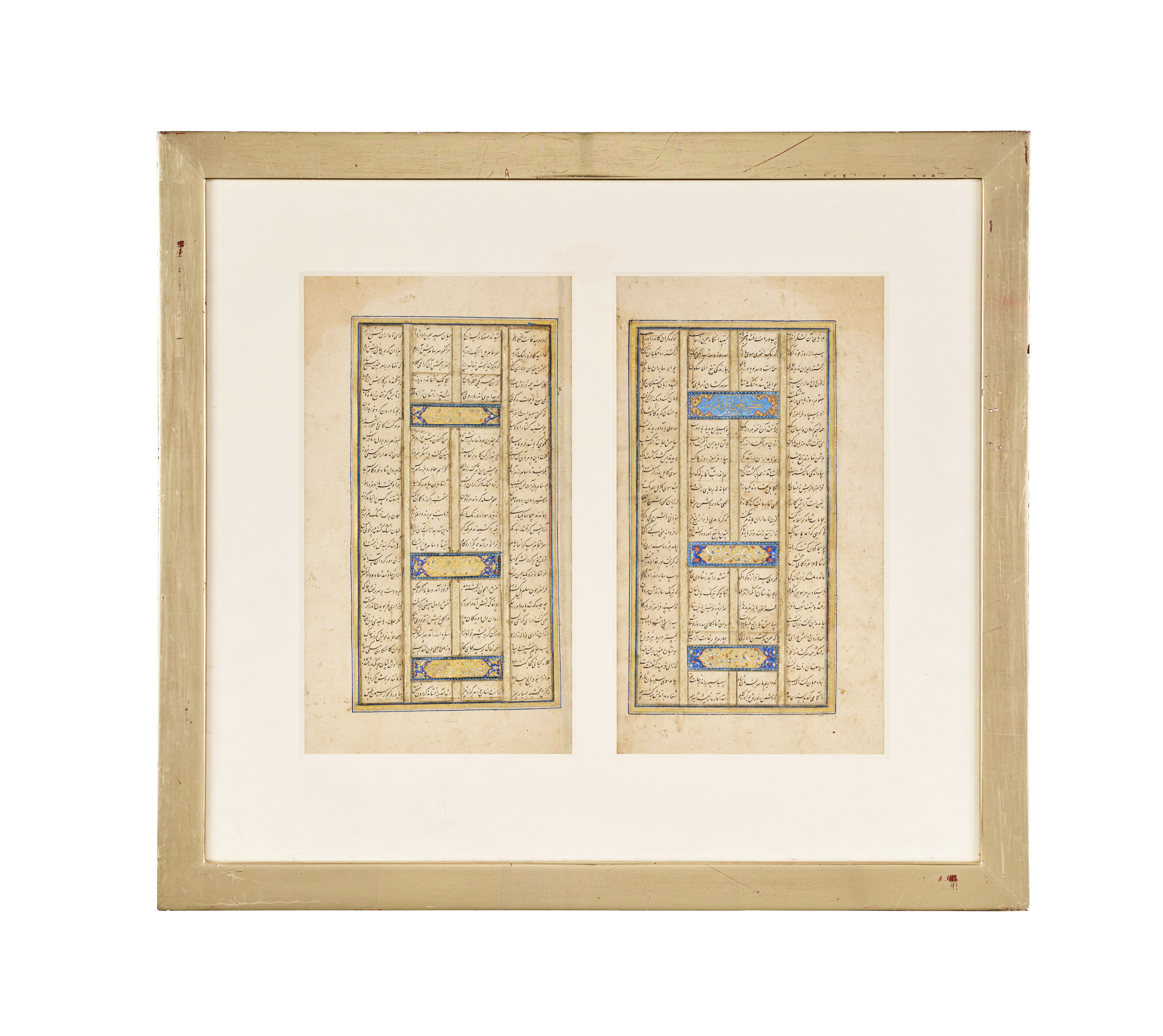 A SAFAVID DOUBLE PAGE OF POETRY FROM A 16TH CENTURY SHAHNAMA