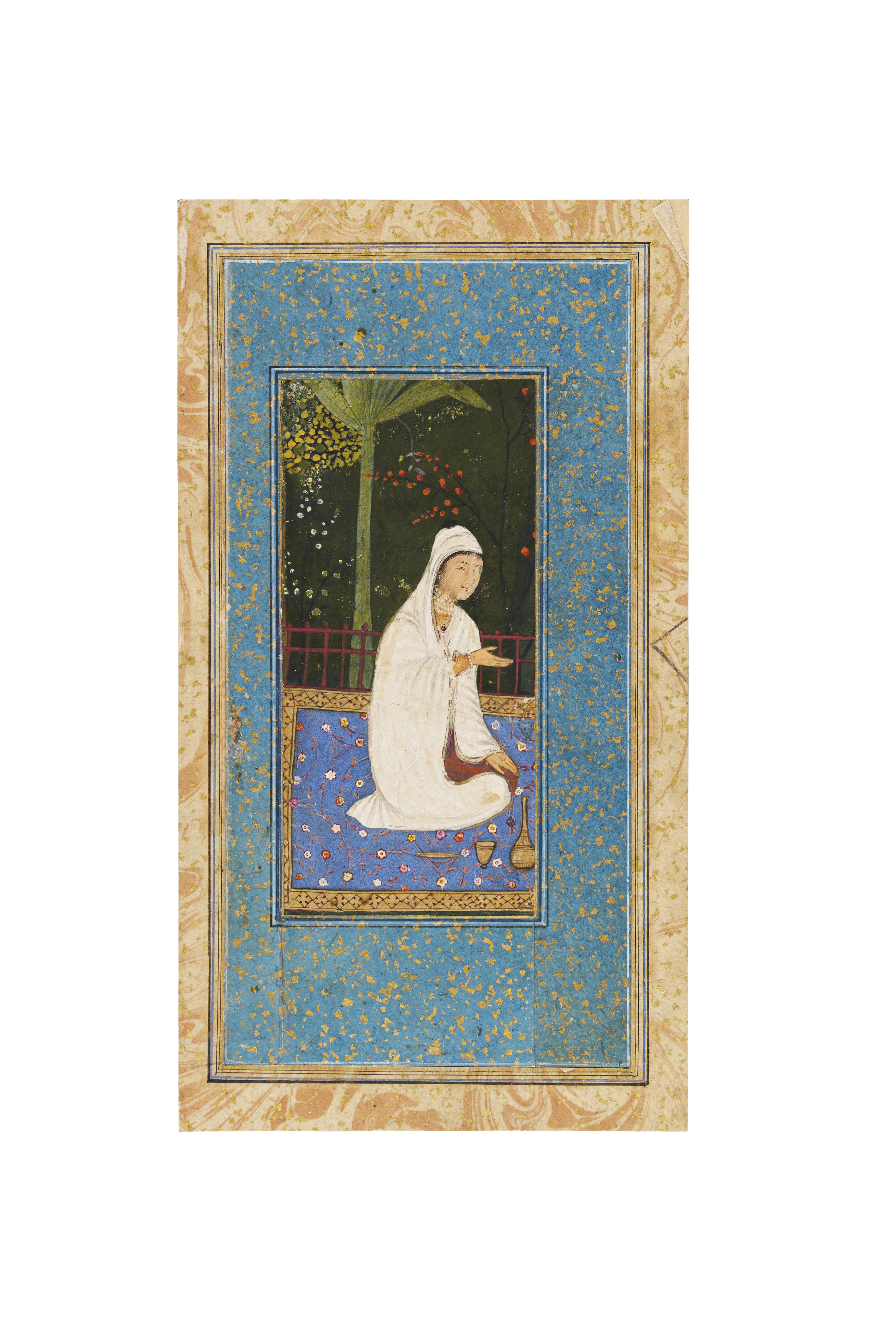 A FINE 17TH CENTURY INDIAN DECCANI MINIATURE PAINTING OF A SEATED LADY