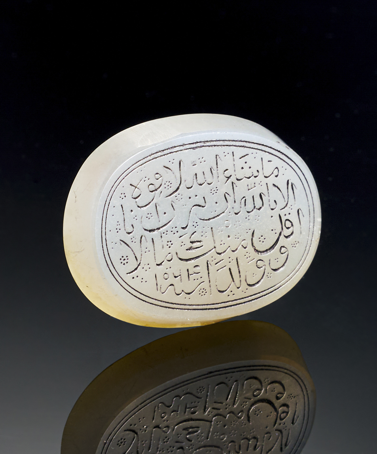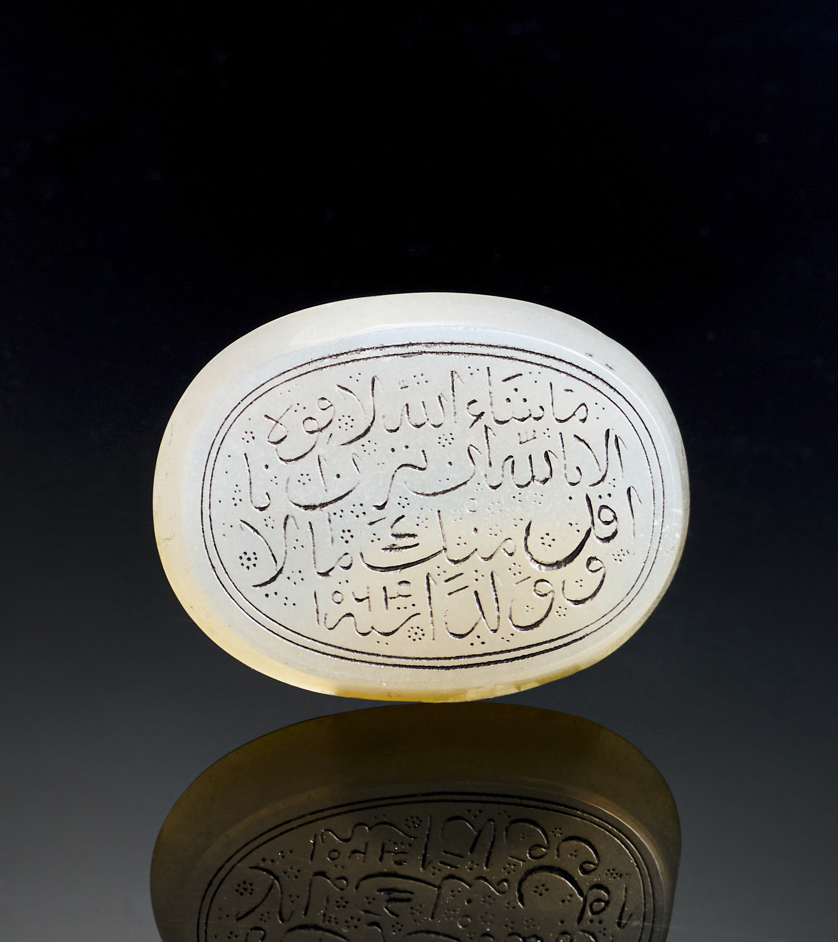 AN INSCRIBED ISLAMIC WHITE AGATE RING STONE, 19TH CENTURY