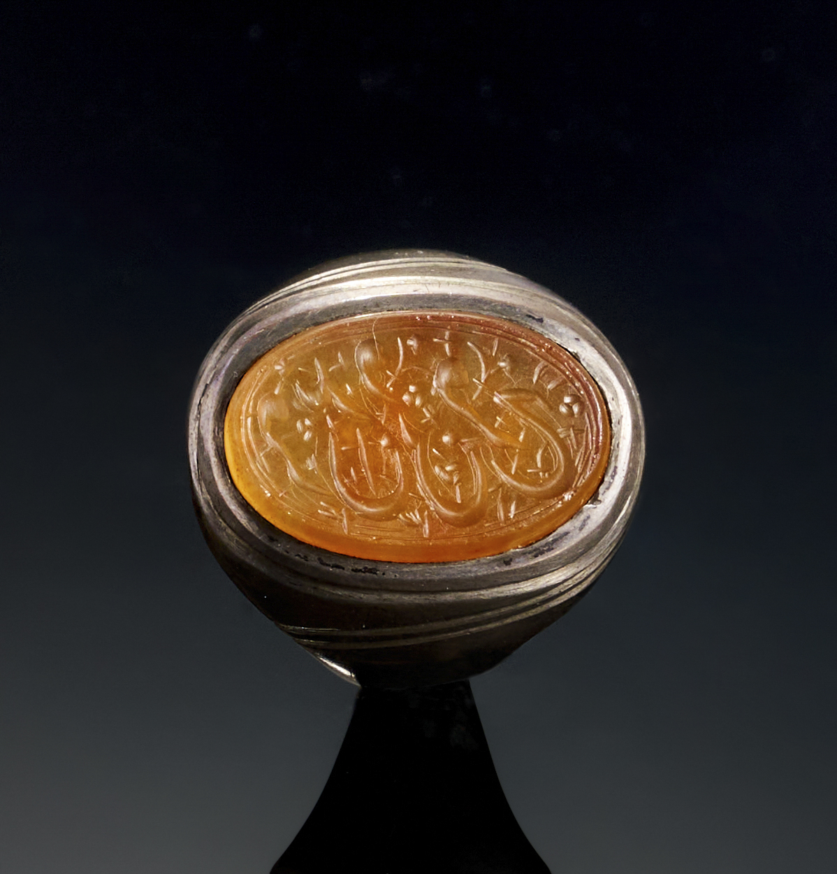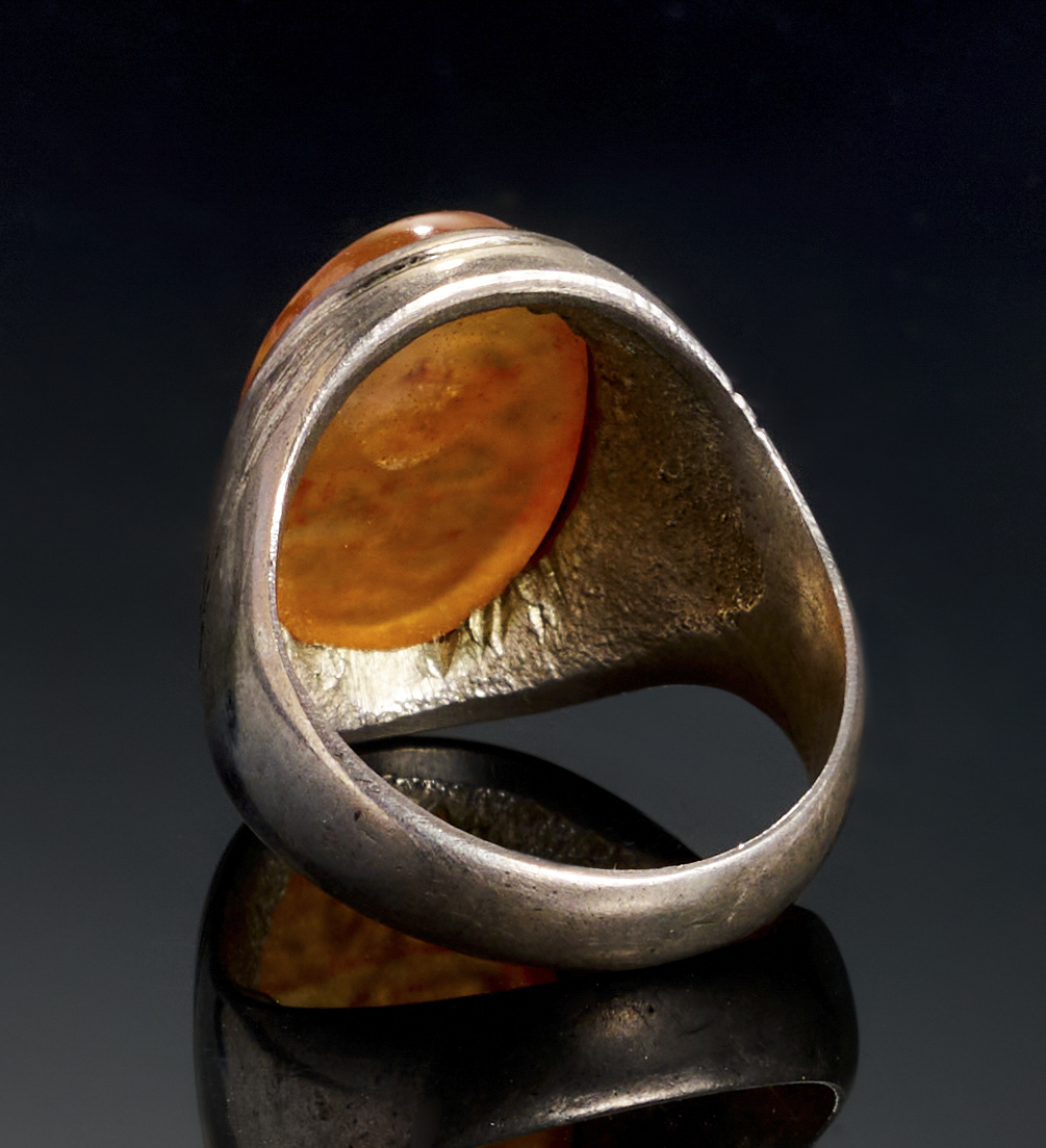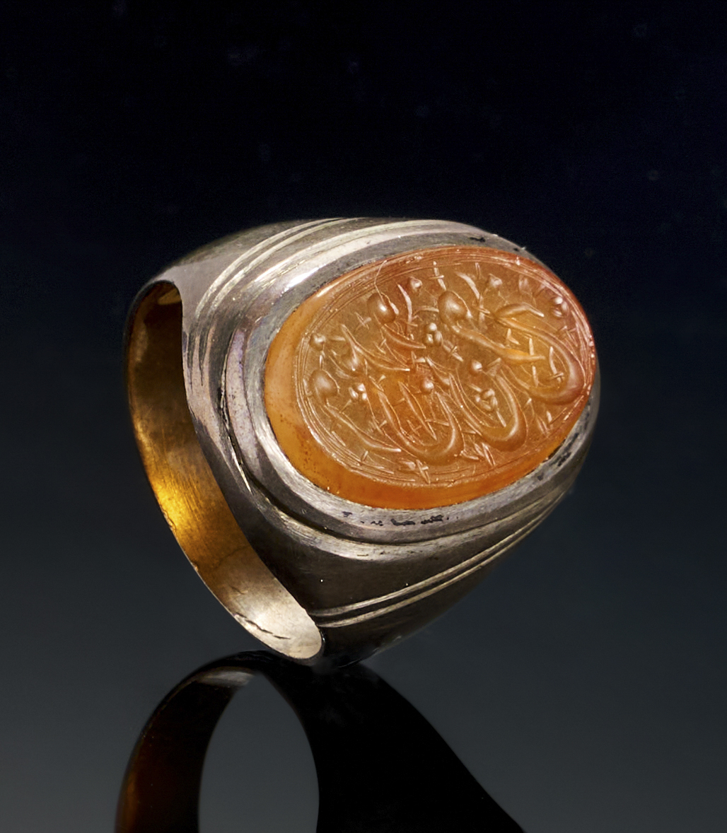 AN INSCRIBED ISLAMIC AGATE IN A SILVER RING, LATE 19TH-EARLY 20TH CENTURY