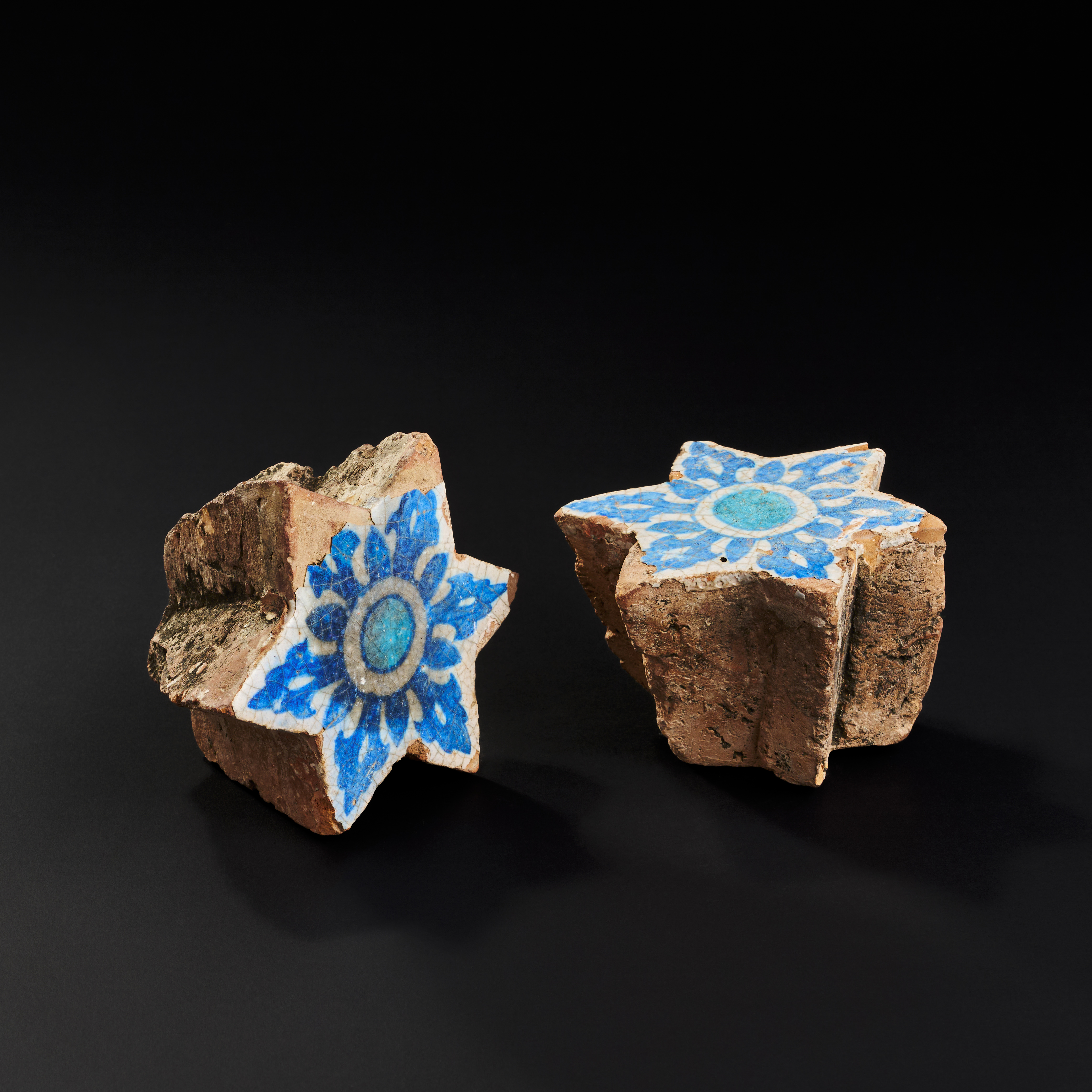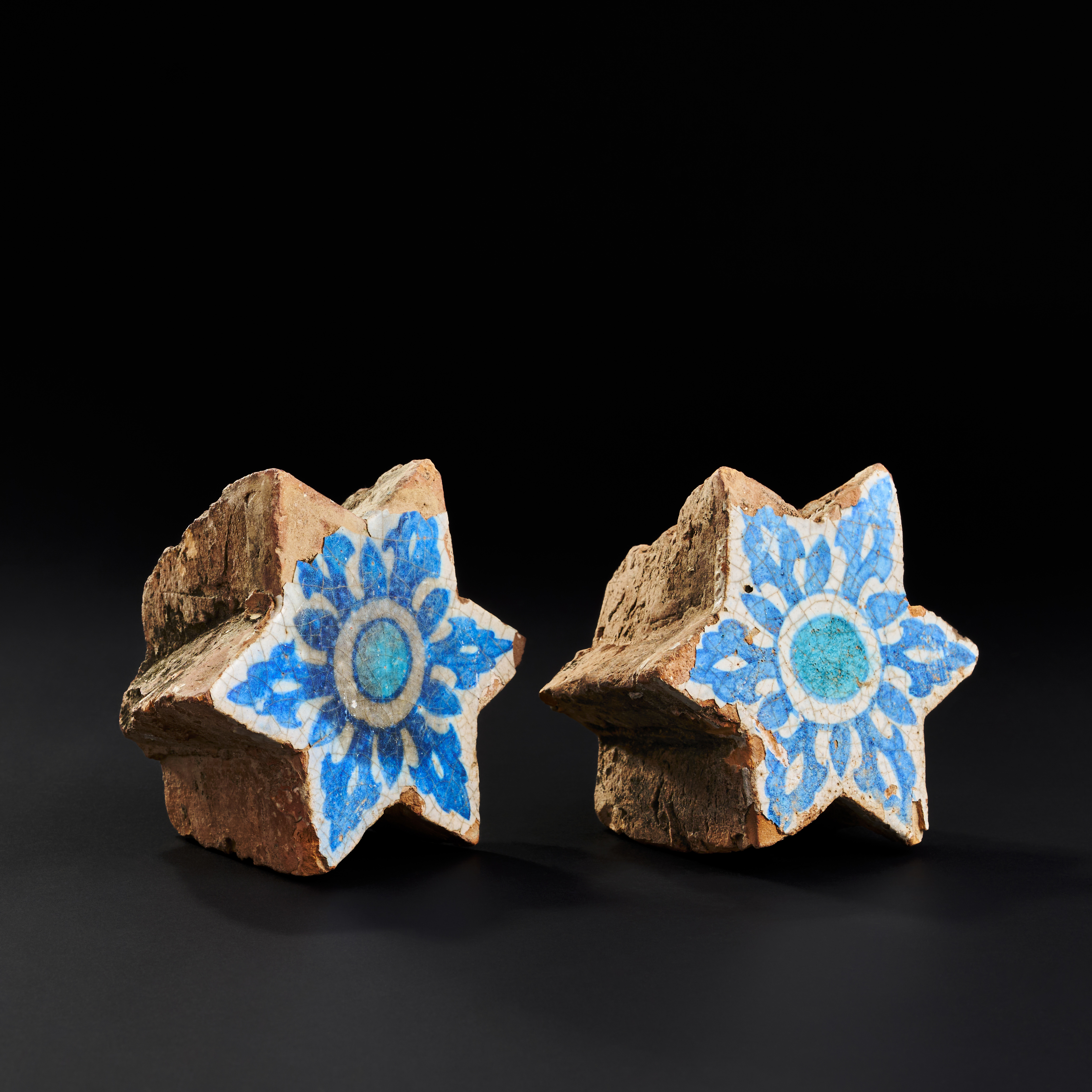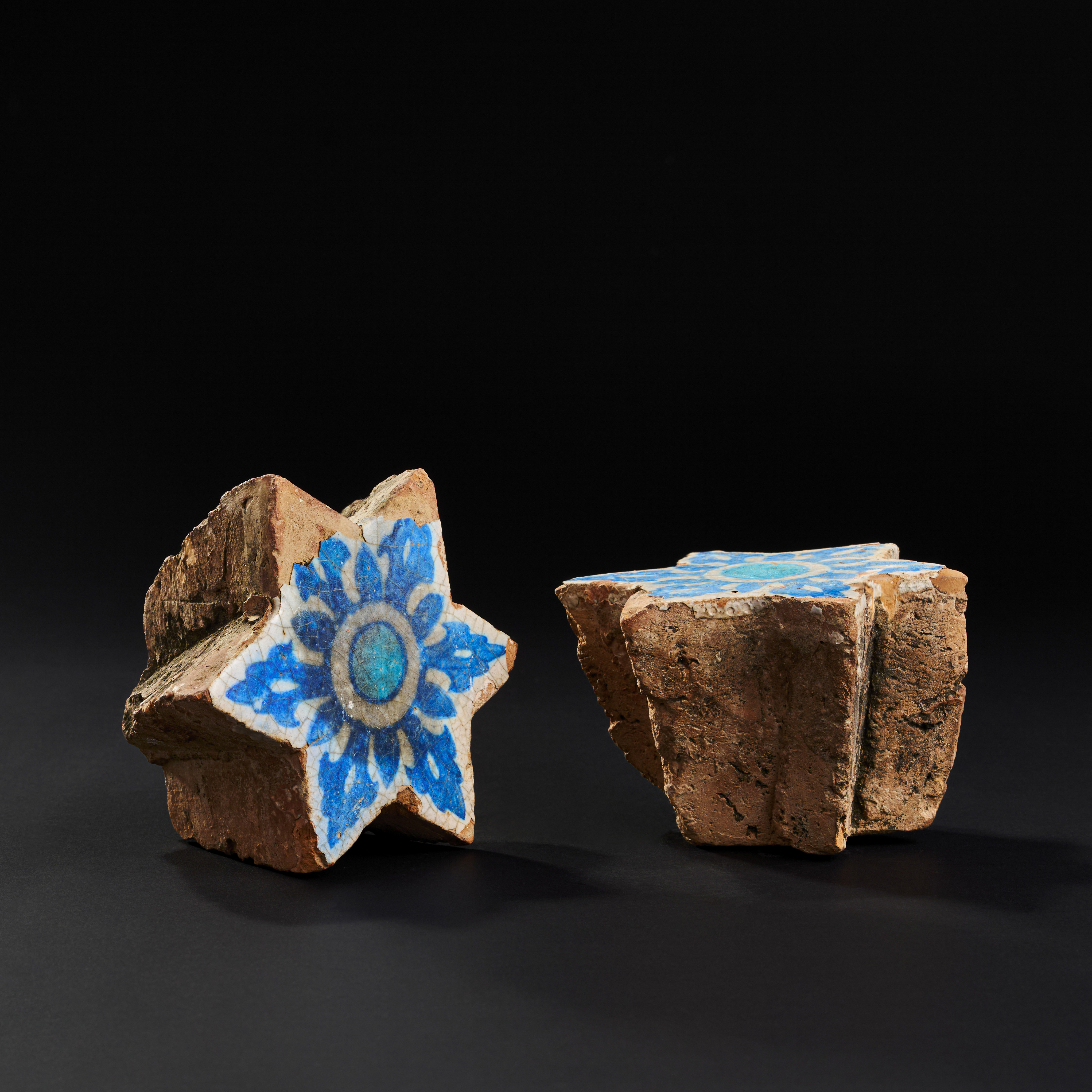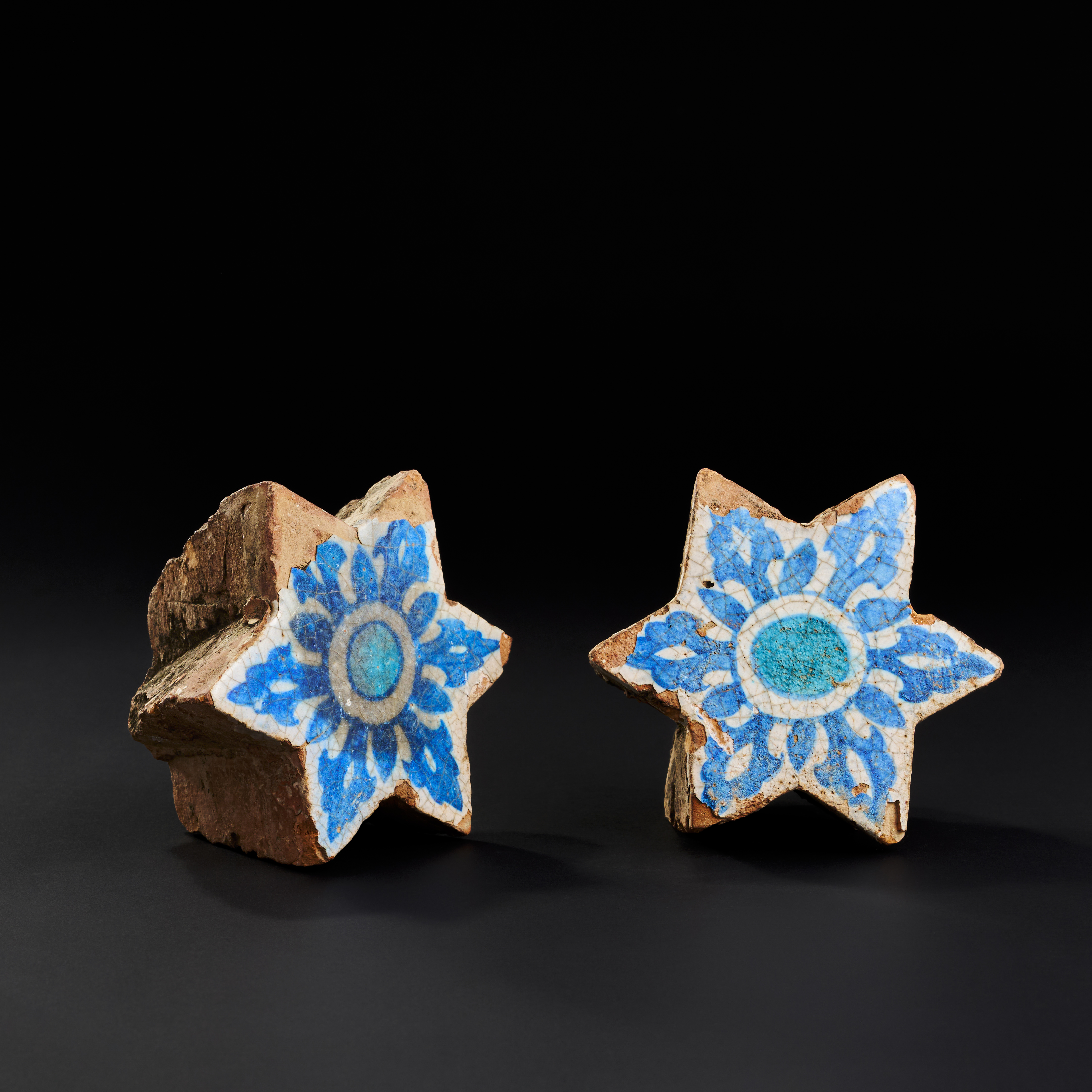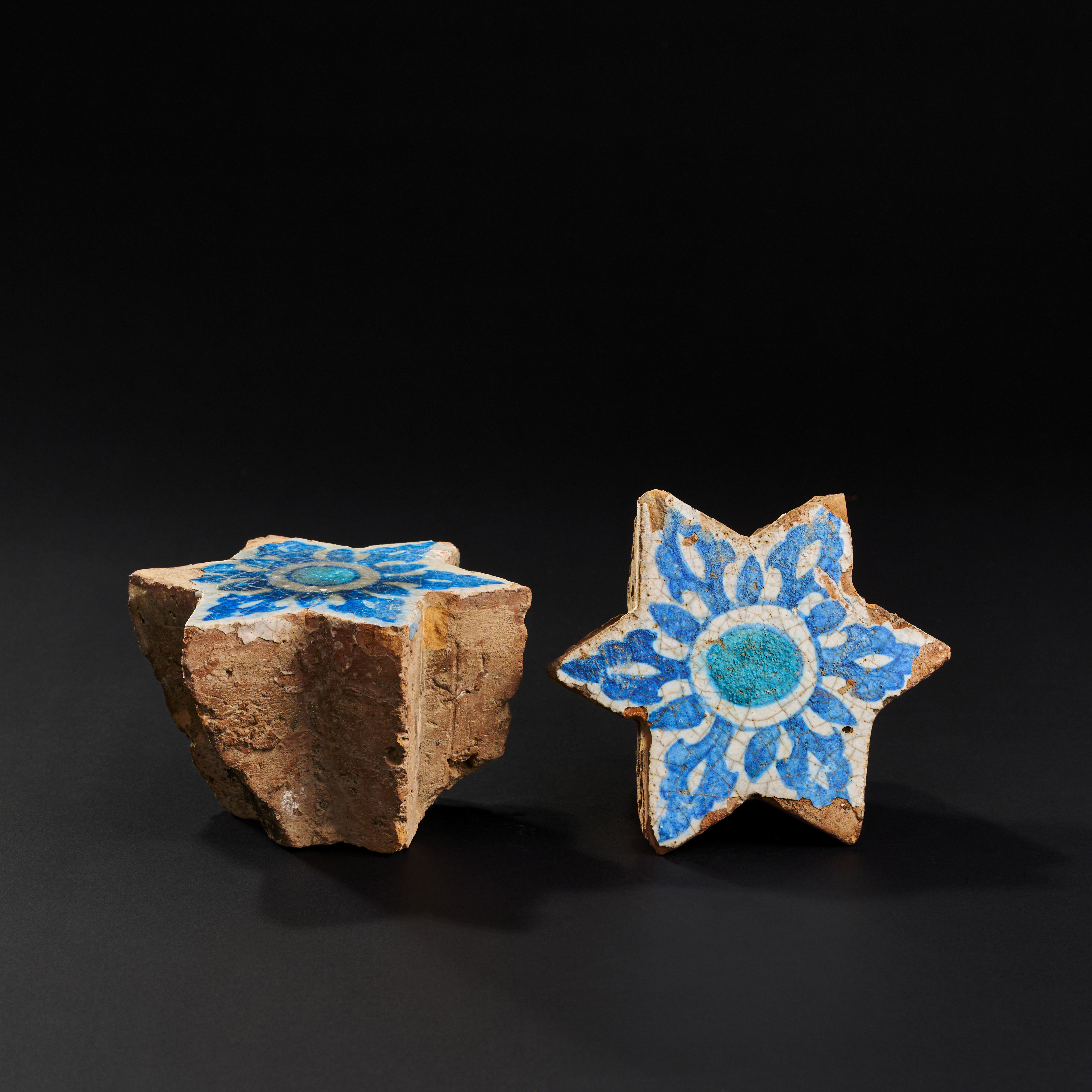 A PAIR OF SULTANATE INDIAN STAR GLAZED POTTERY TILES, 15TH – 16TH CENTURY