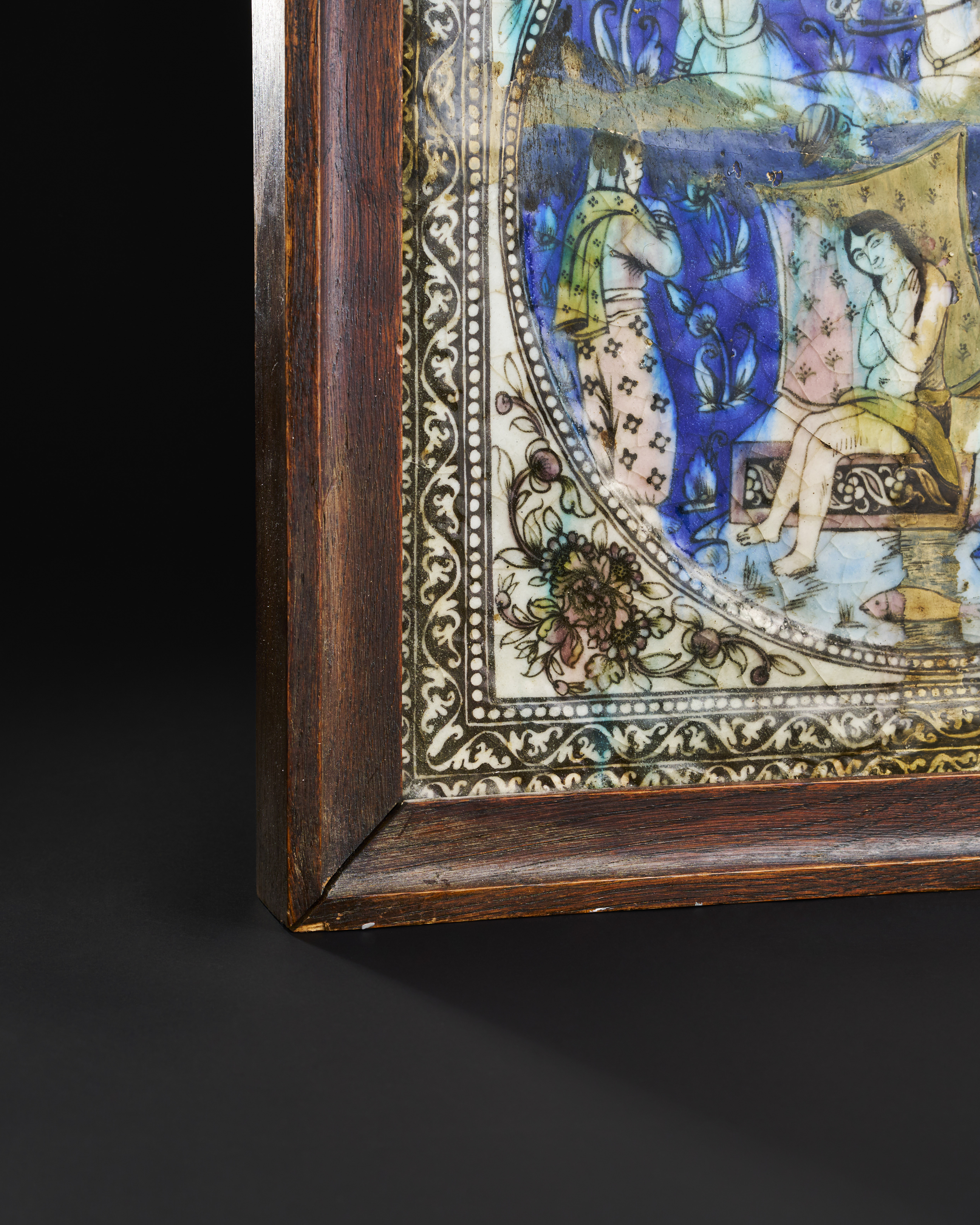 A LARGE QAJAR MOULDED POTTERY TILE, PERSIA, 19TH CENTURY