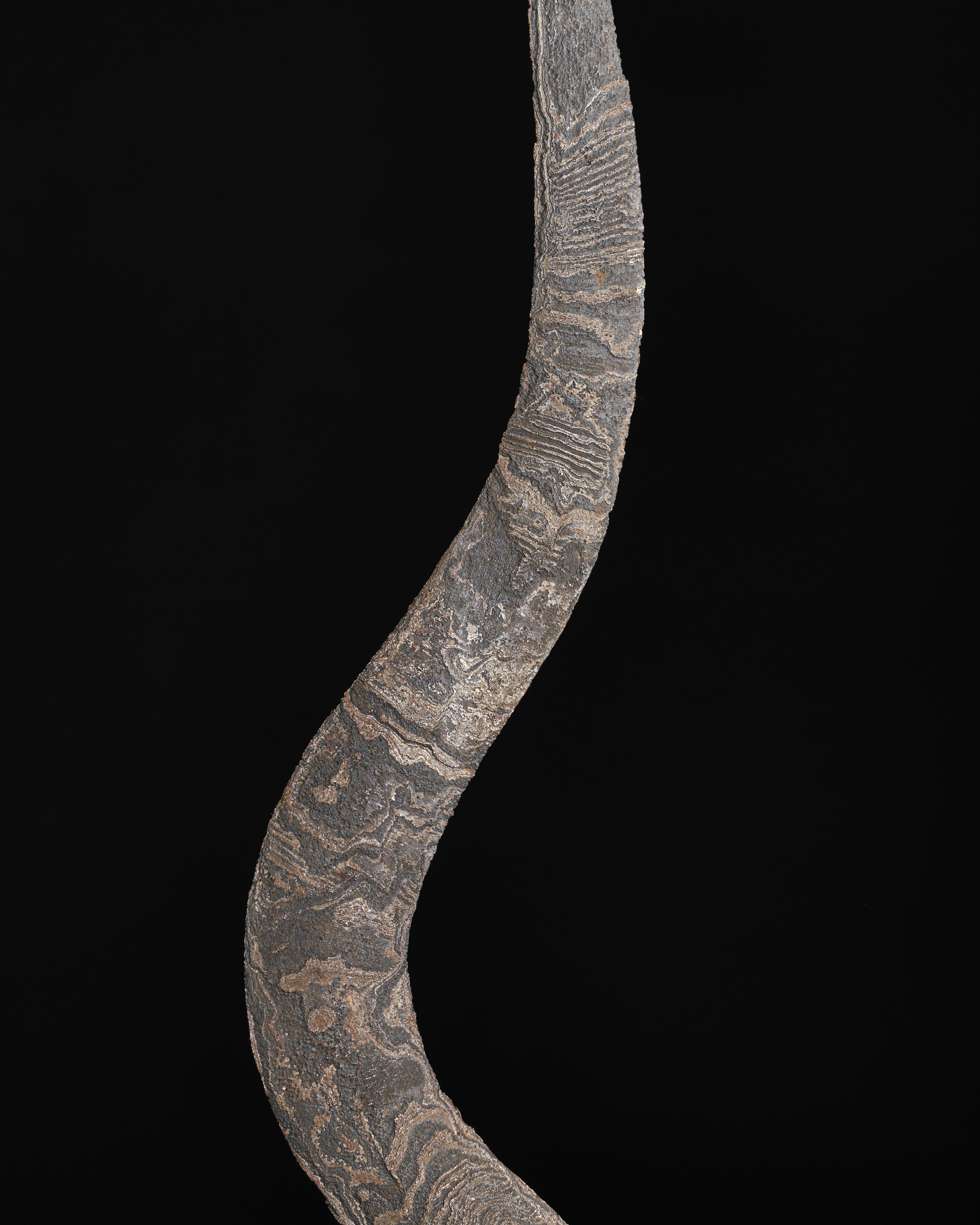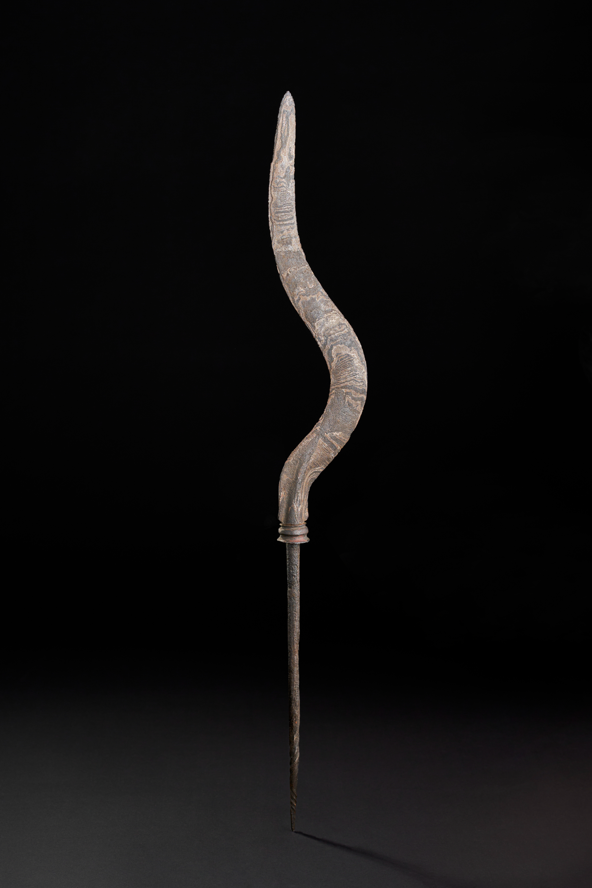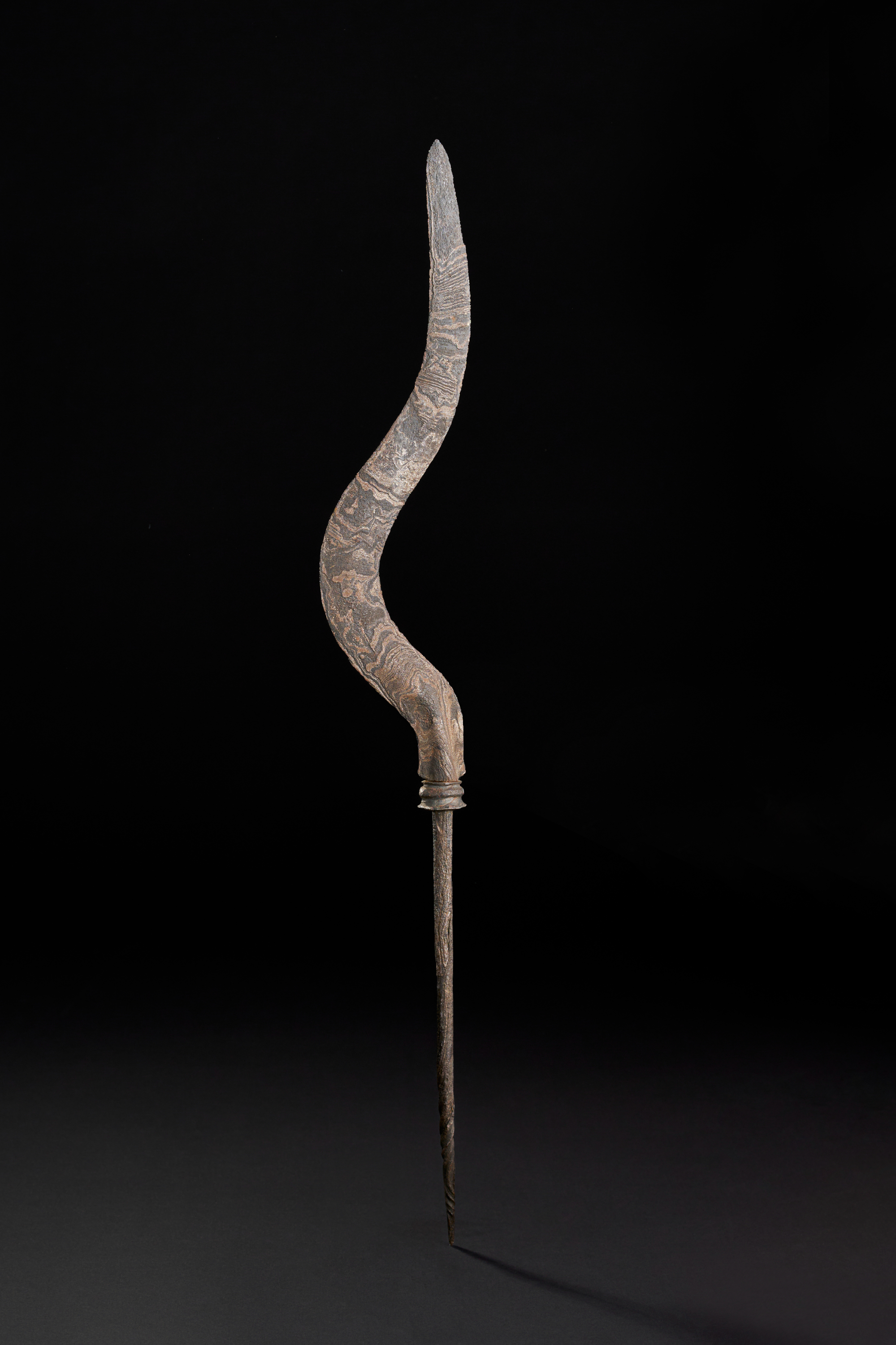A RARE TIBETAN OR INDONESIAN WATERED STEEL SPEAR HEAD, 17TH – 18TH CENTURY