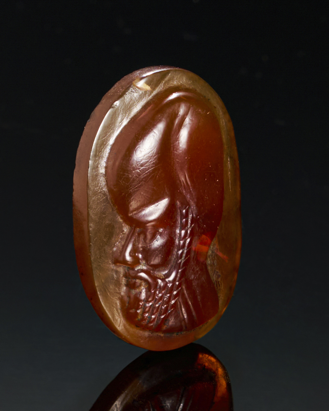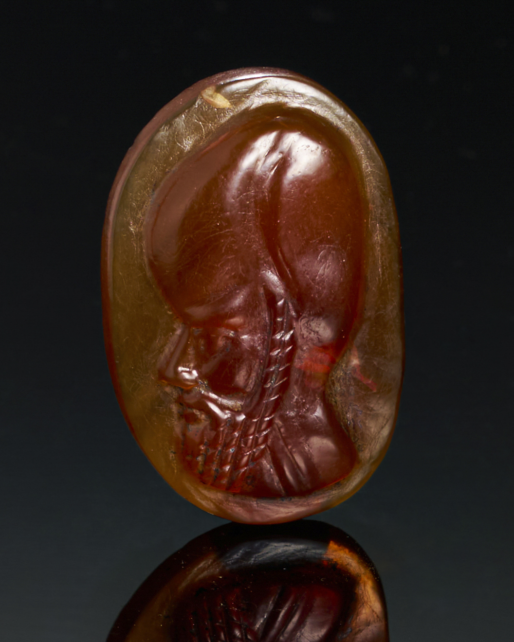 A finely carved agate cameo from the Late Ptolemaic Period (circa 2nd–1st century B.C.), featuring the profile of a man with a noble and distinctive expression.