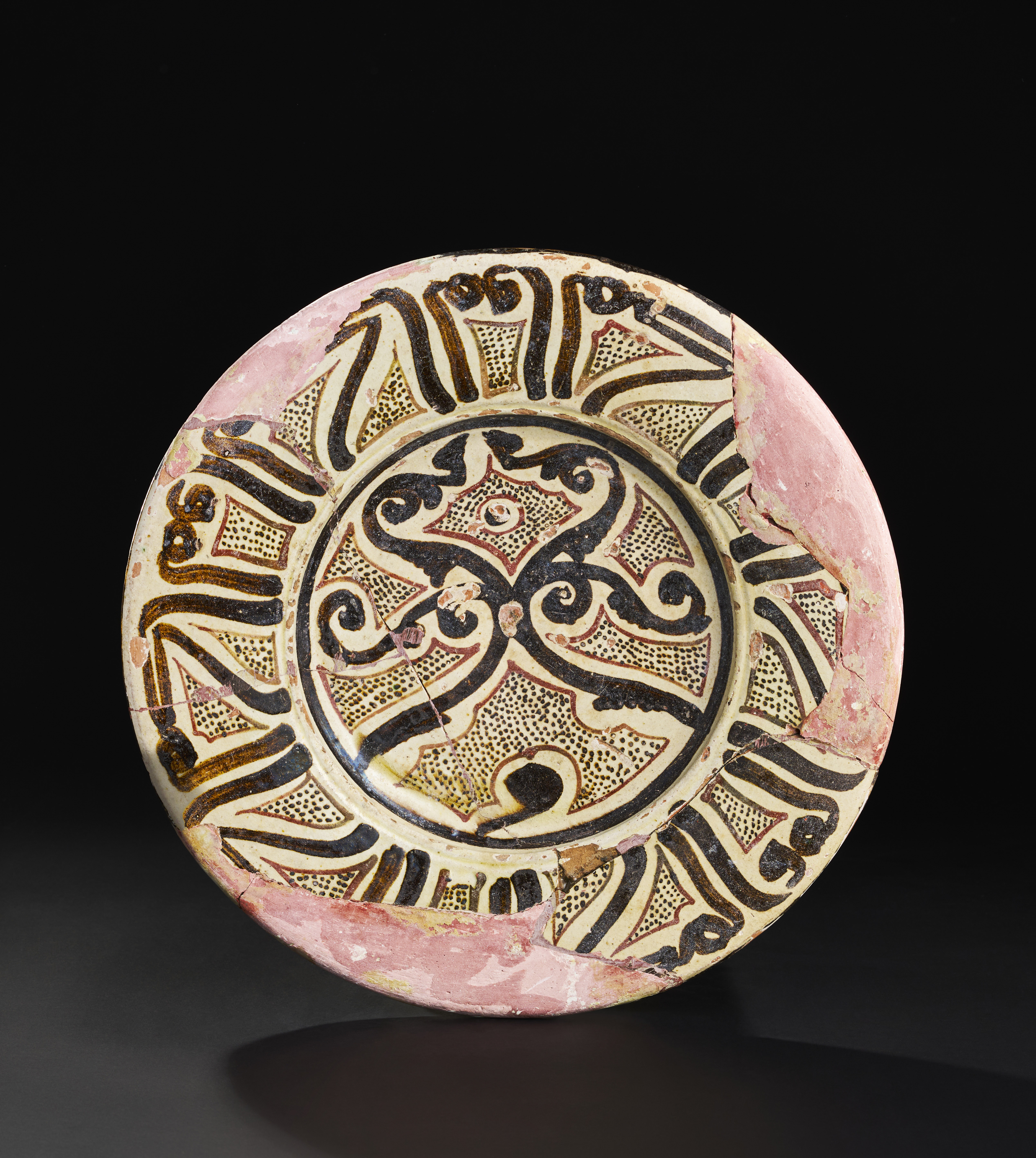 A KUFIC INSCRIBED NISHAPURE POTTERY DISH, 9TH-11TH CENTURY