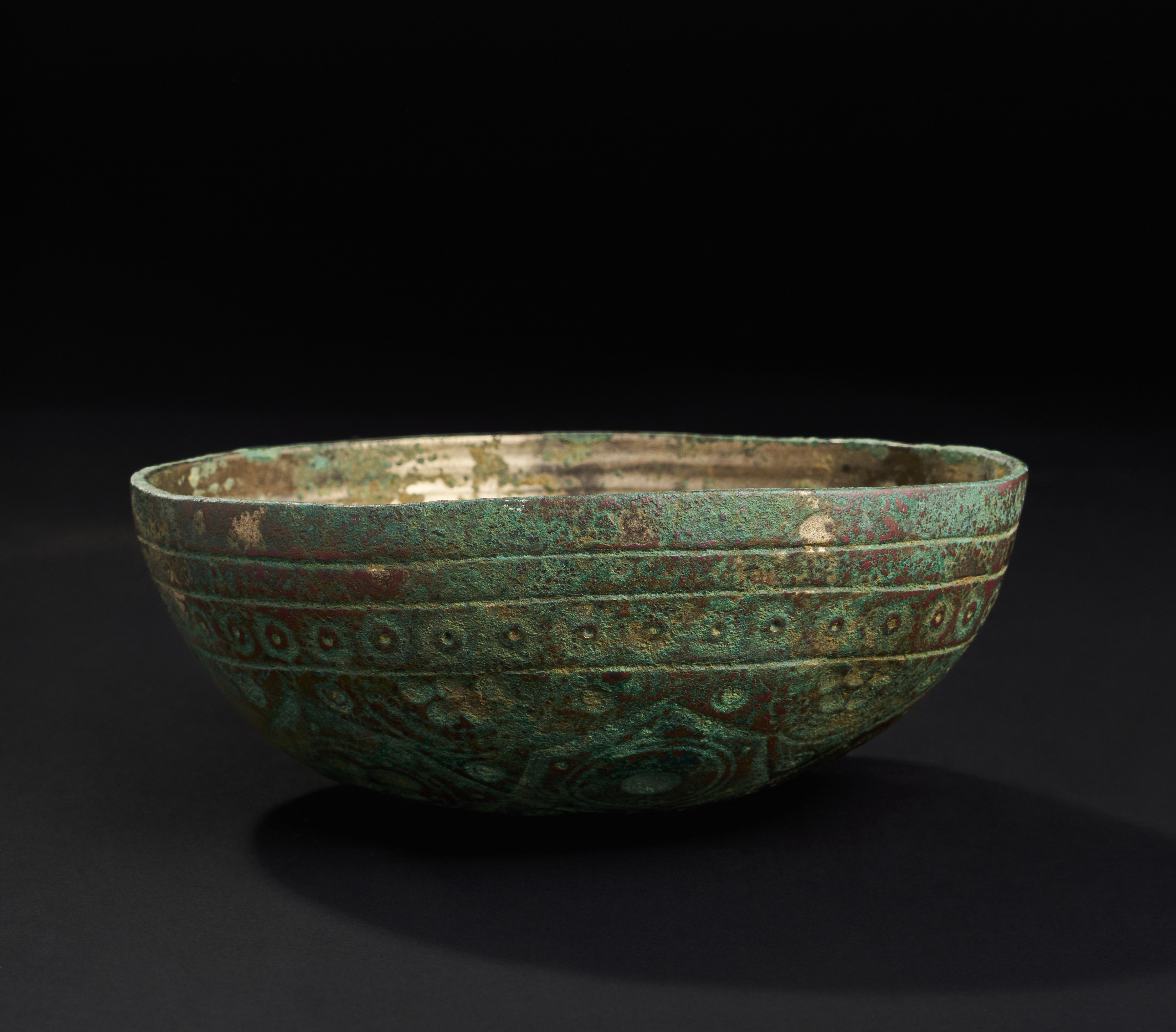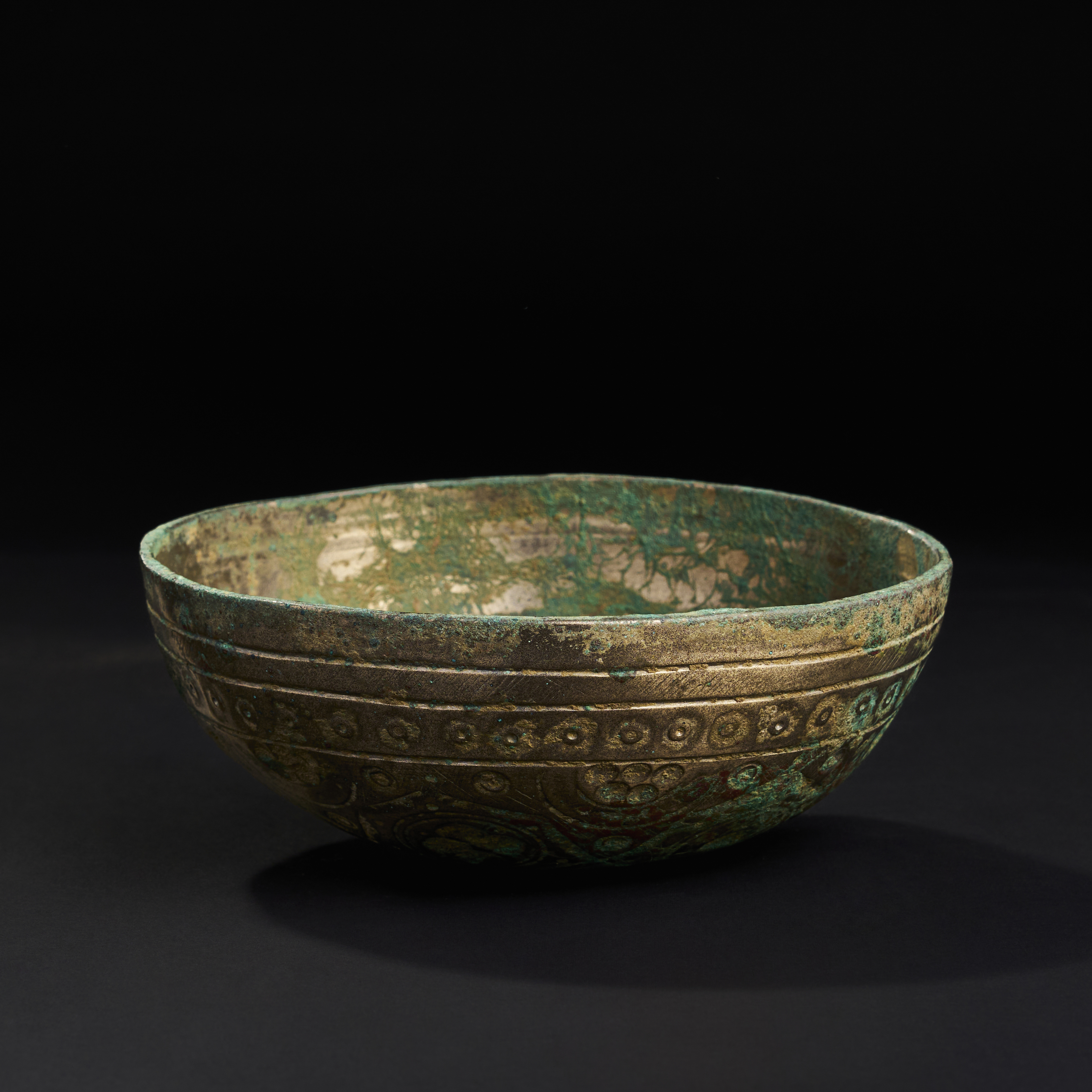 A GHAZNAVID HIGH TIN BRONZE BOWL WITH GEOMETRICAL DESGIN, PERSIA, 10TH CENTURY