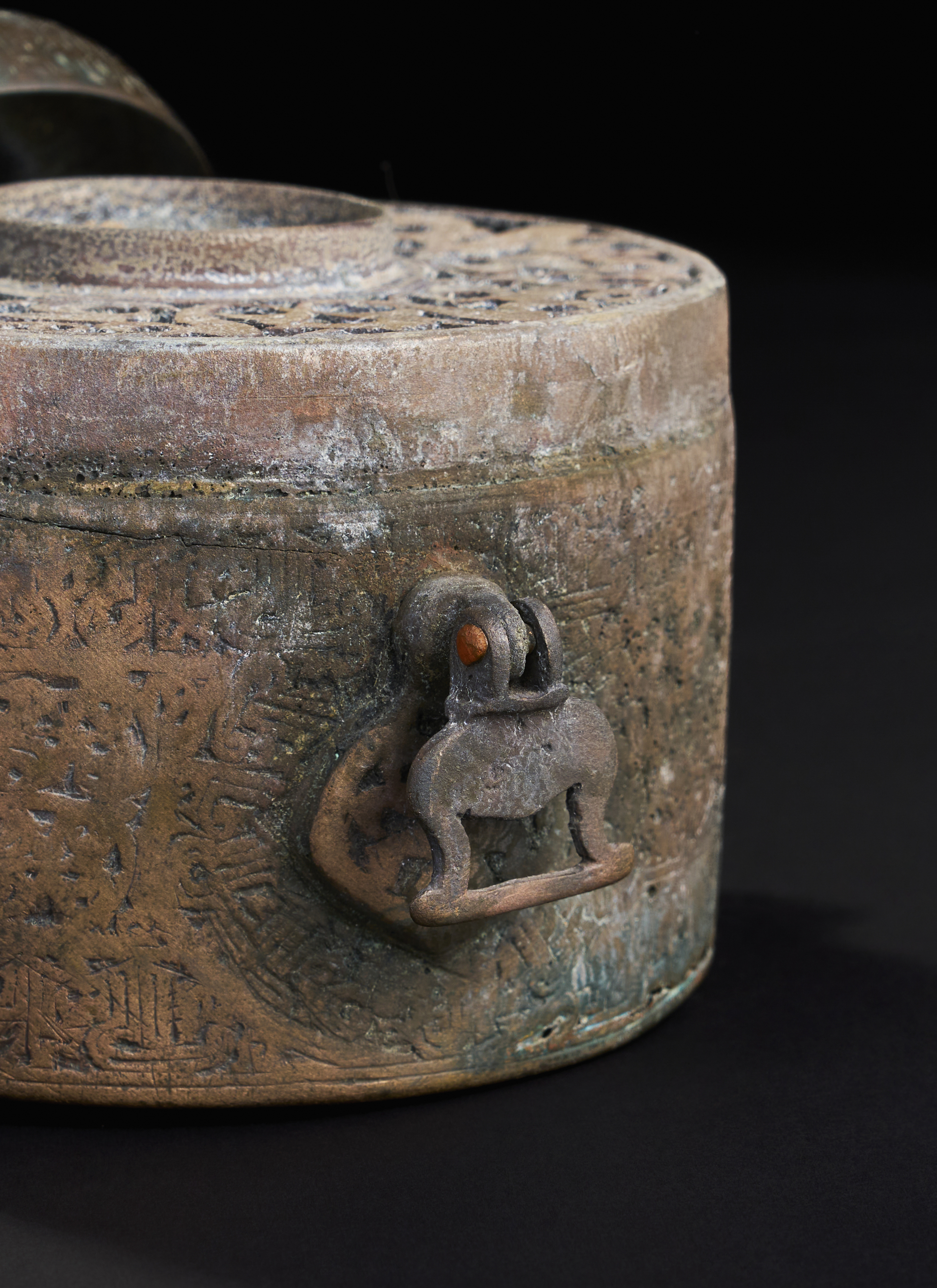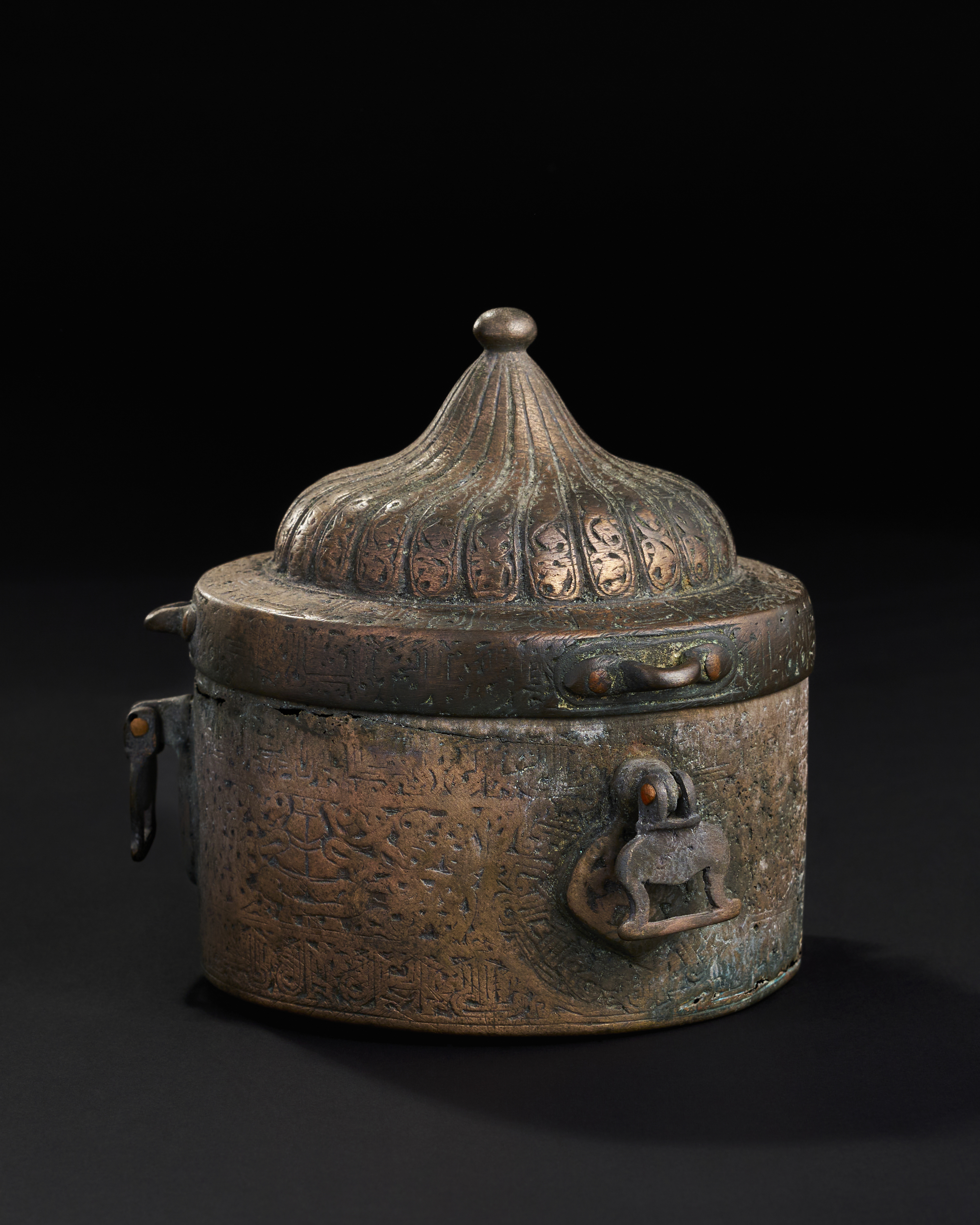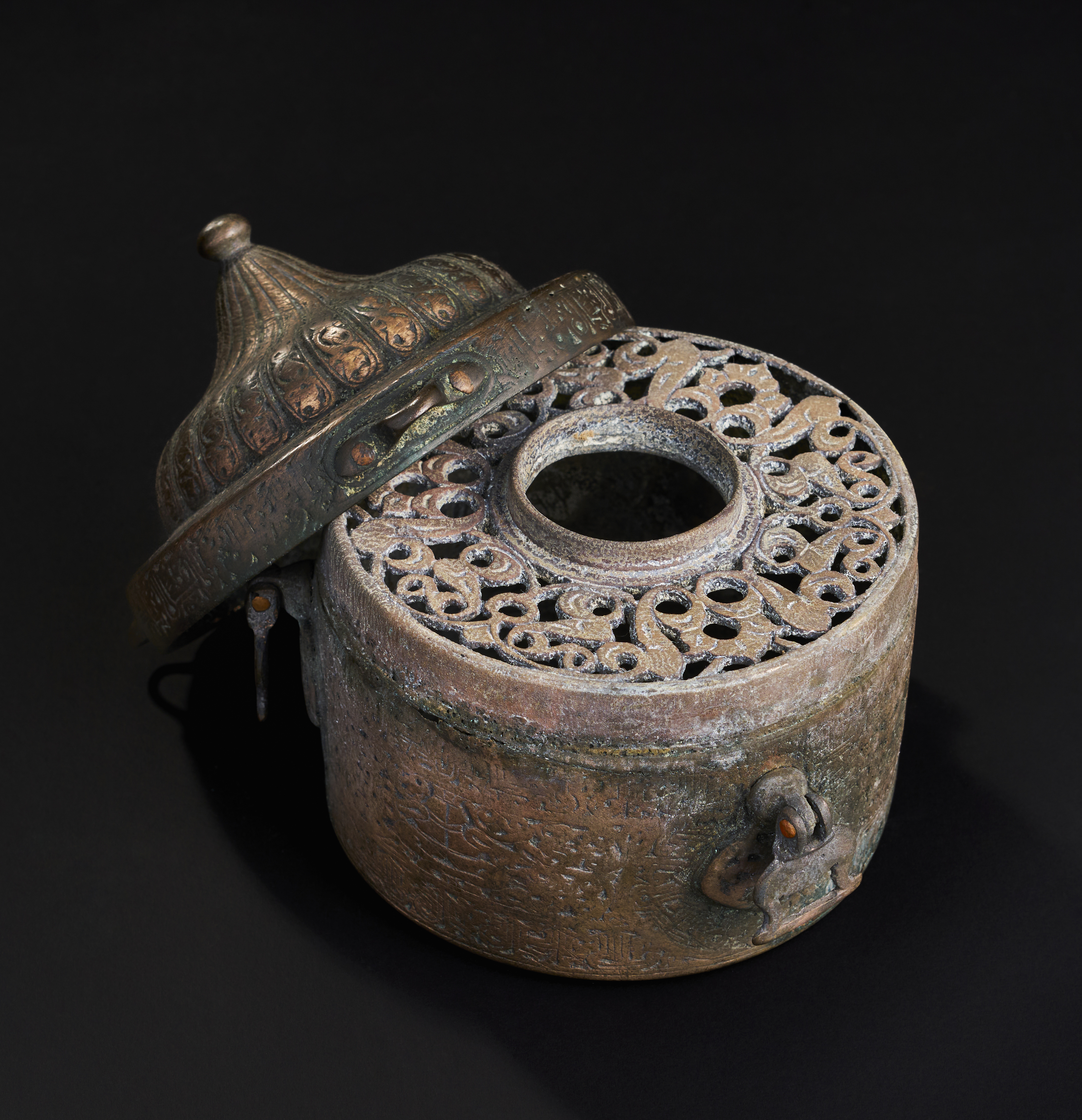 A LARGE SELJUK BRONZE INKWELL WITH OPEN WORKED INTERIOR, KHURASSAN, 13TH CENTURY
