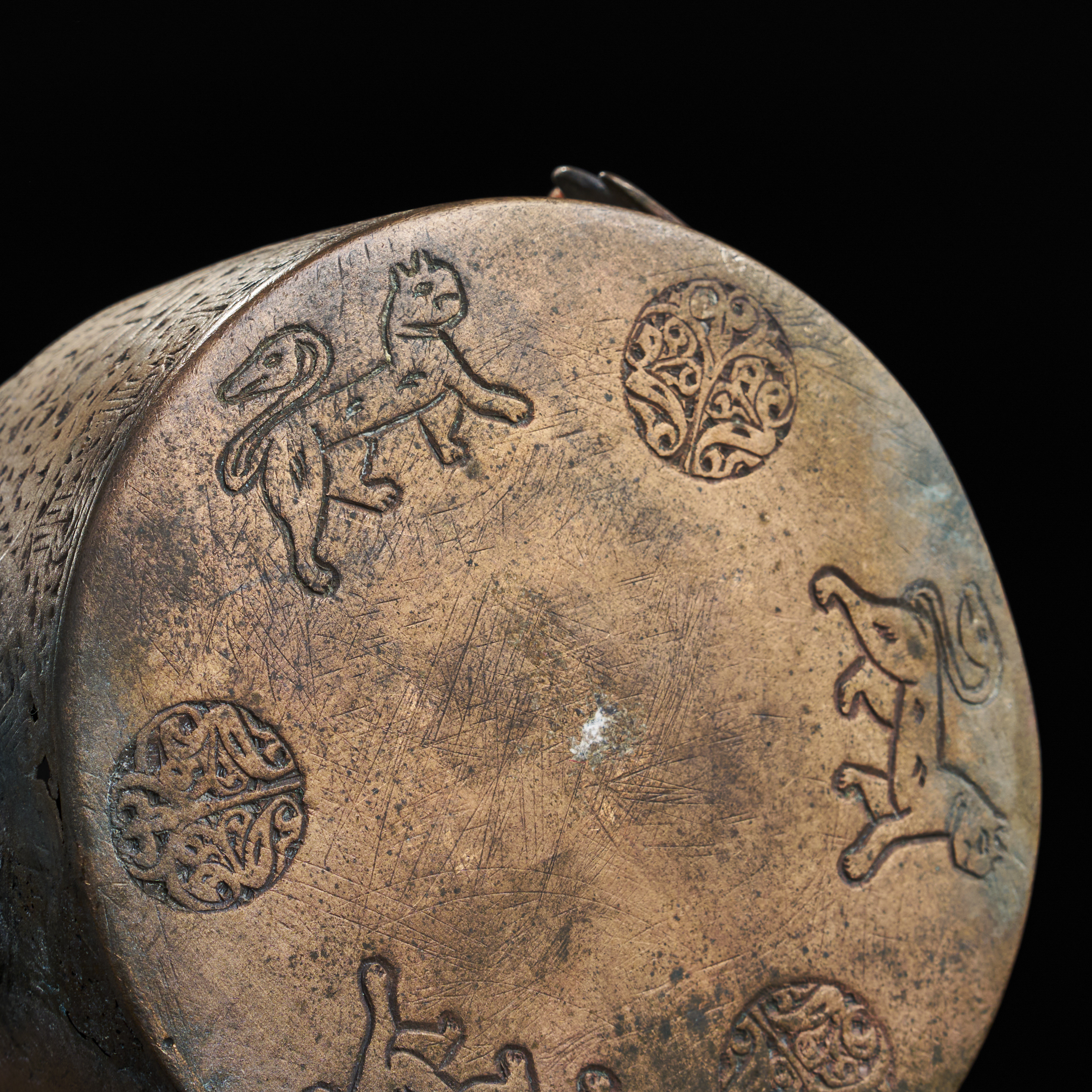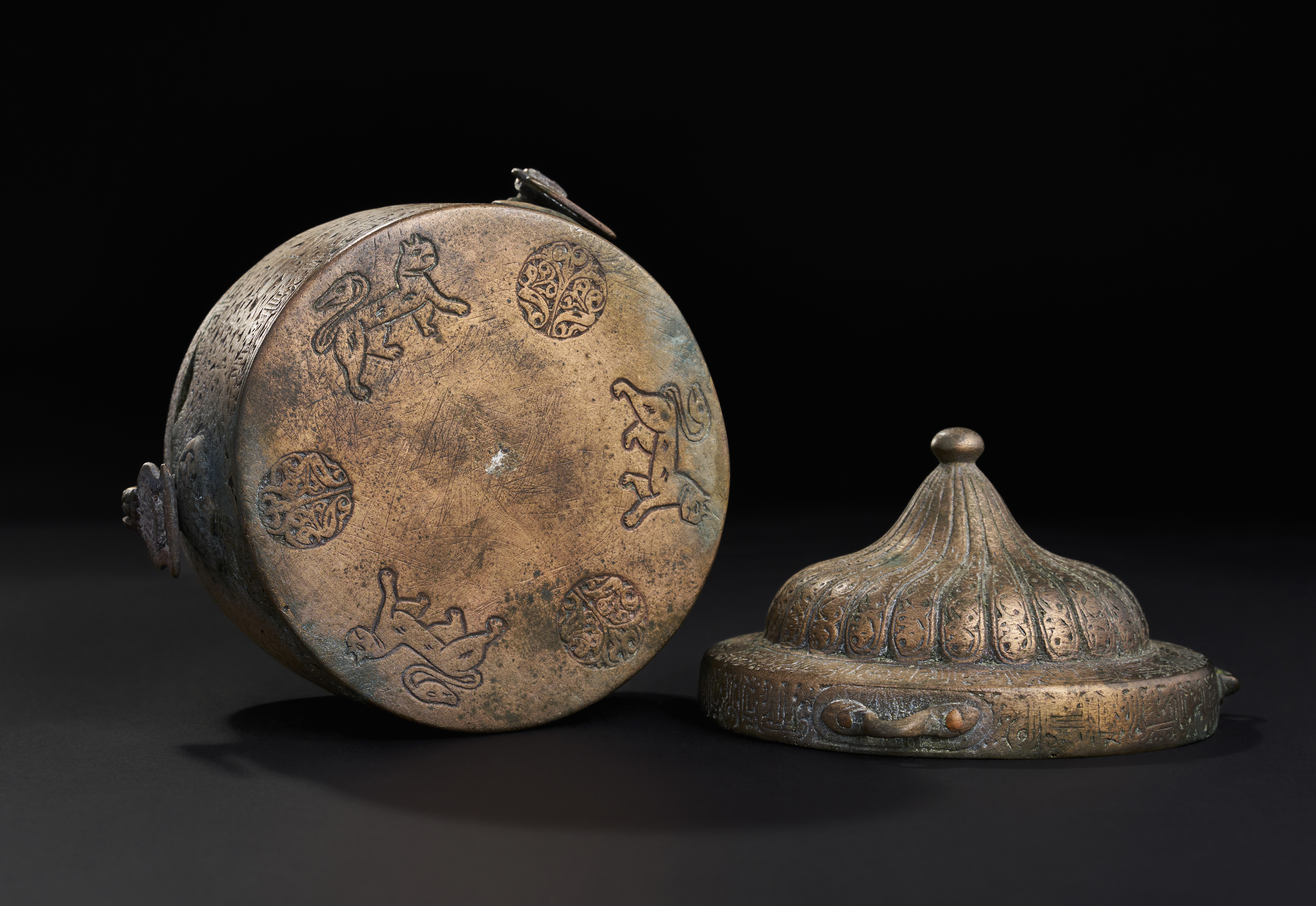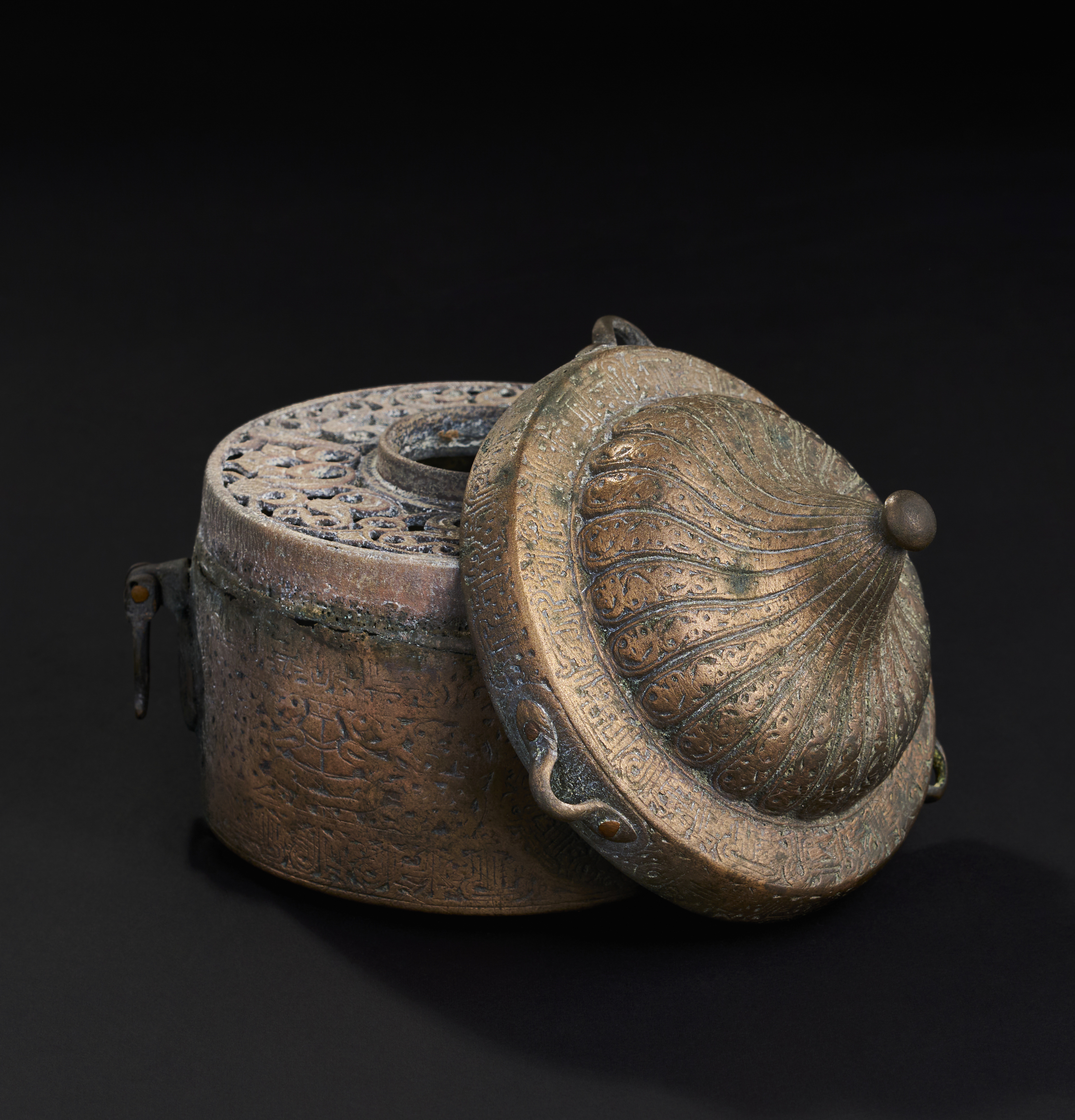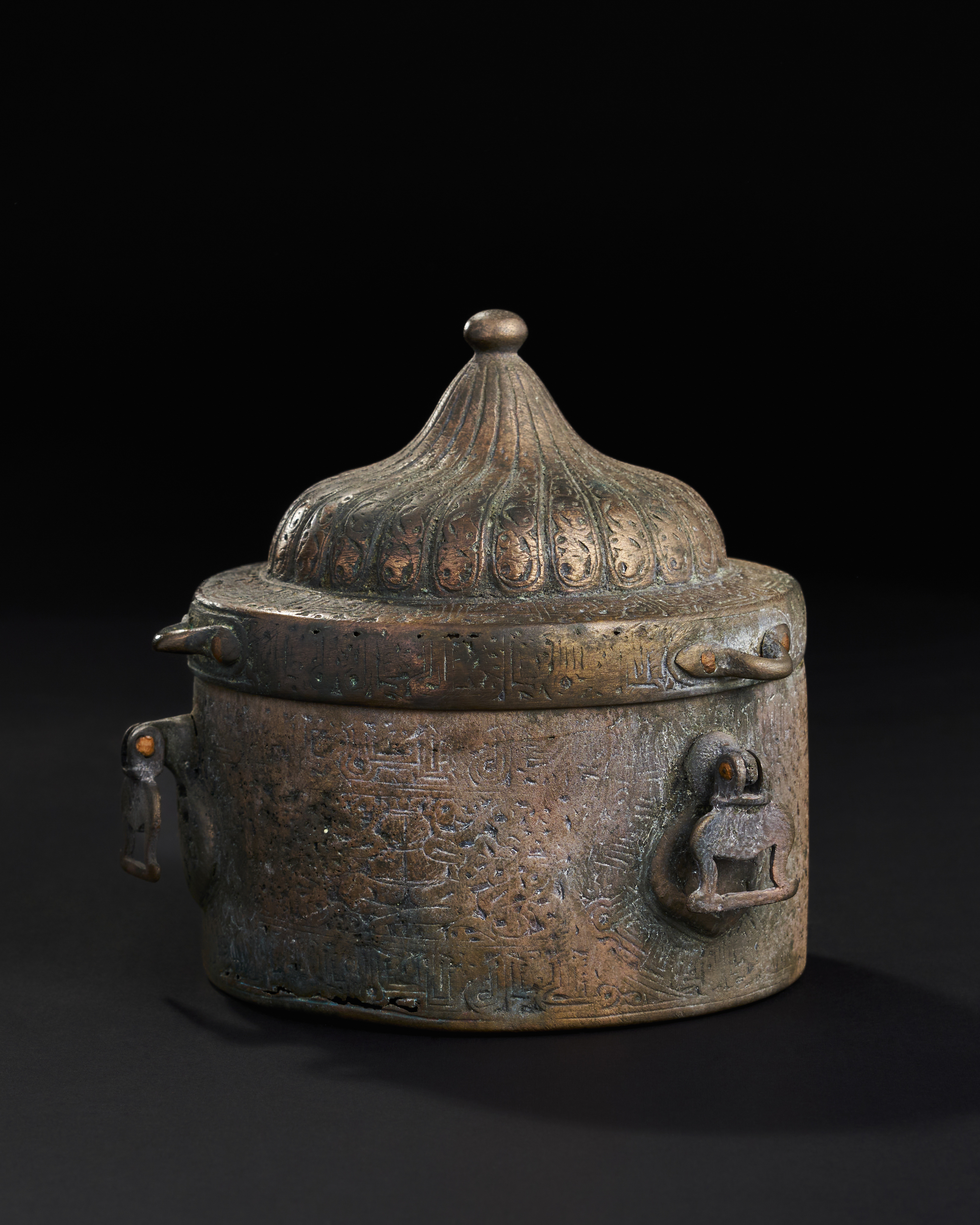 A LARGE SELJUK BRONZE INKWELL WITH OPEN WORKED INTERIOR, KHURASSAN, 13TH CENTURY