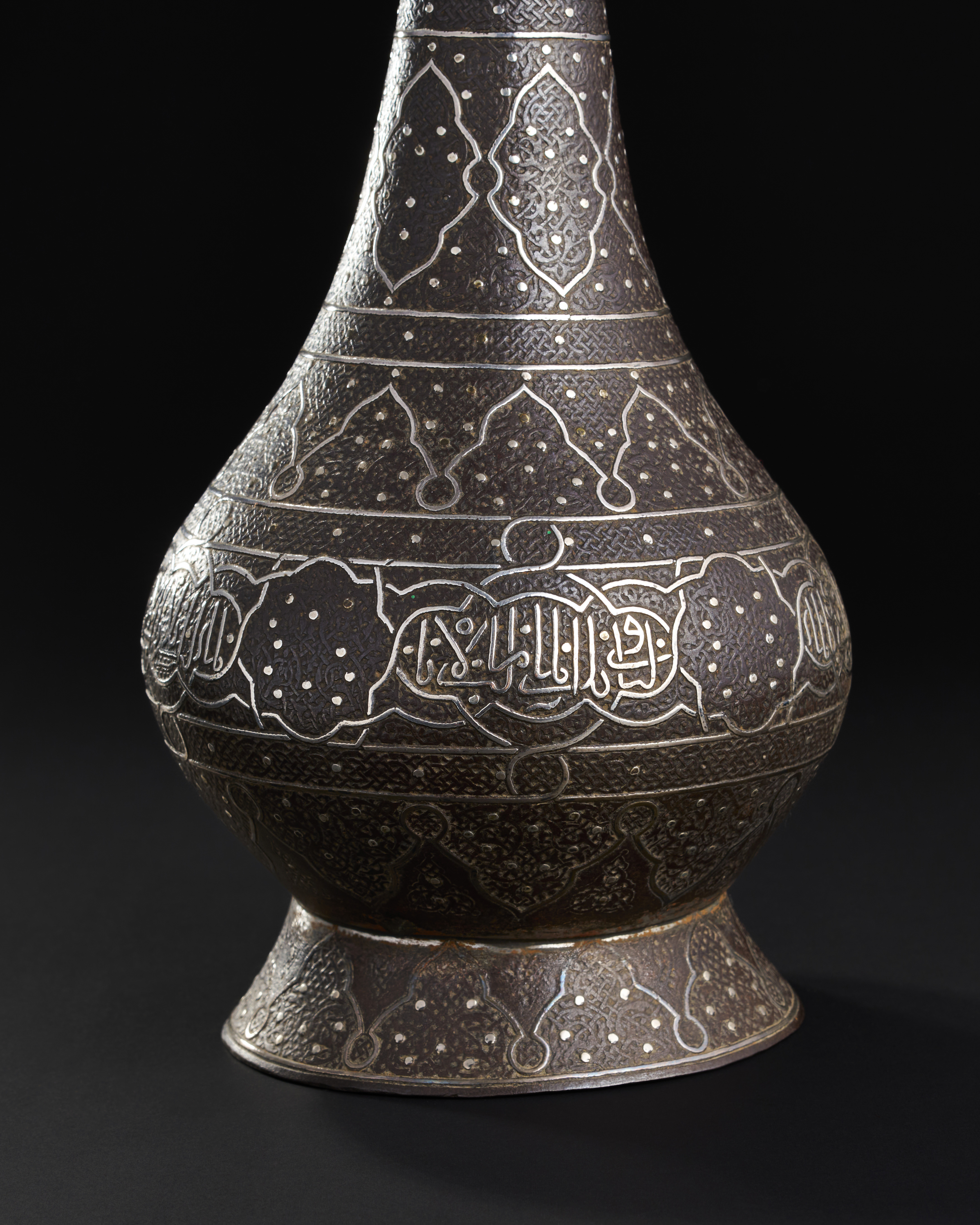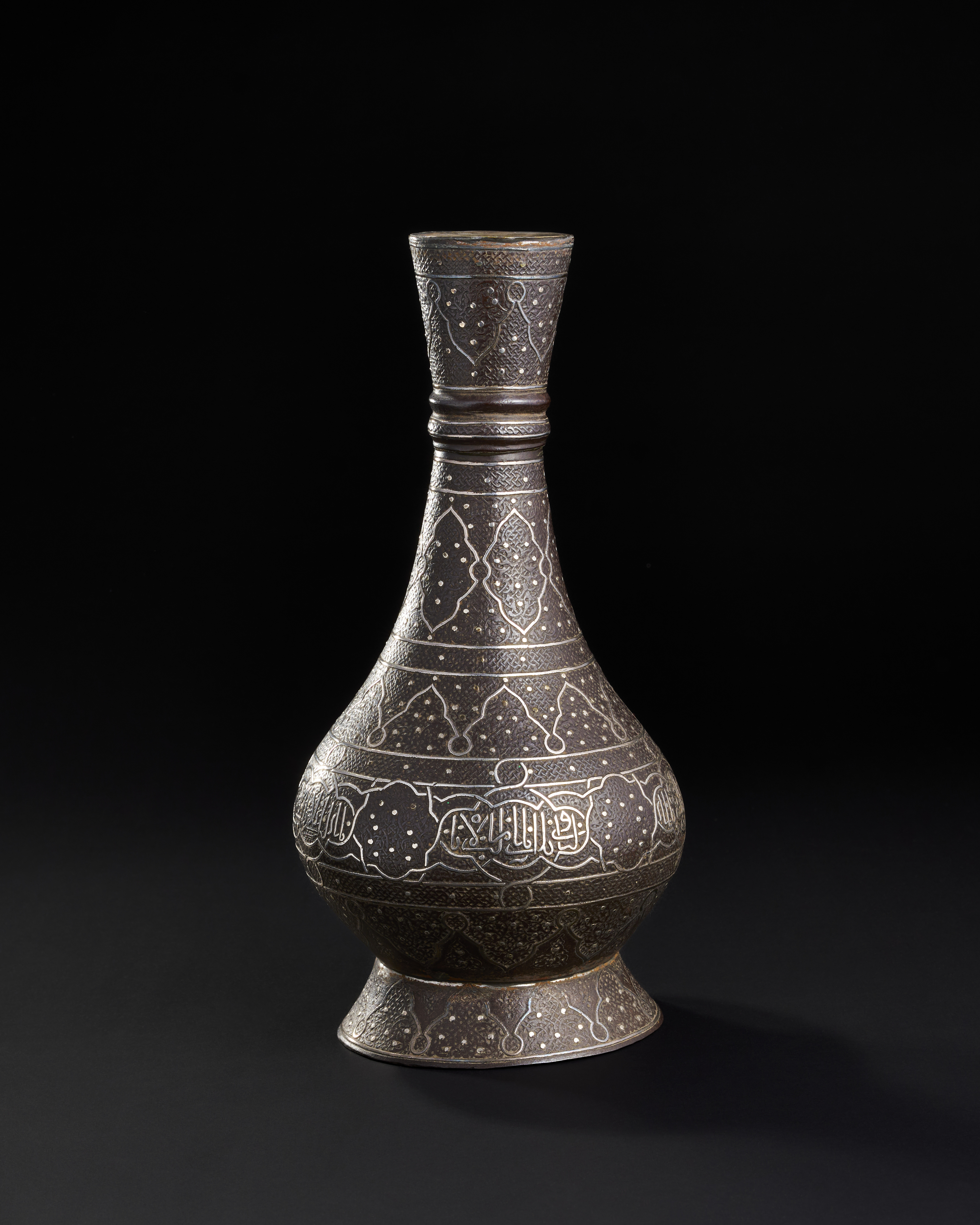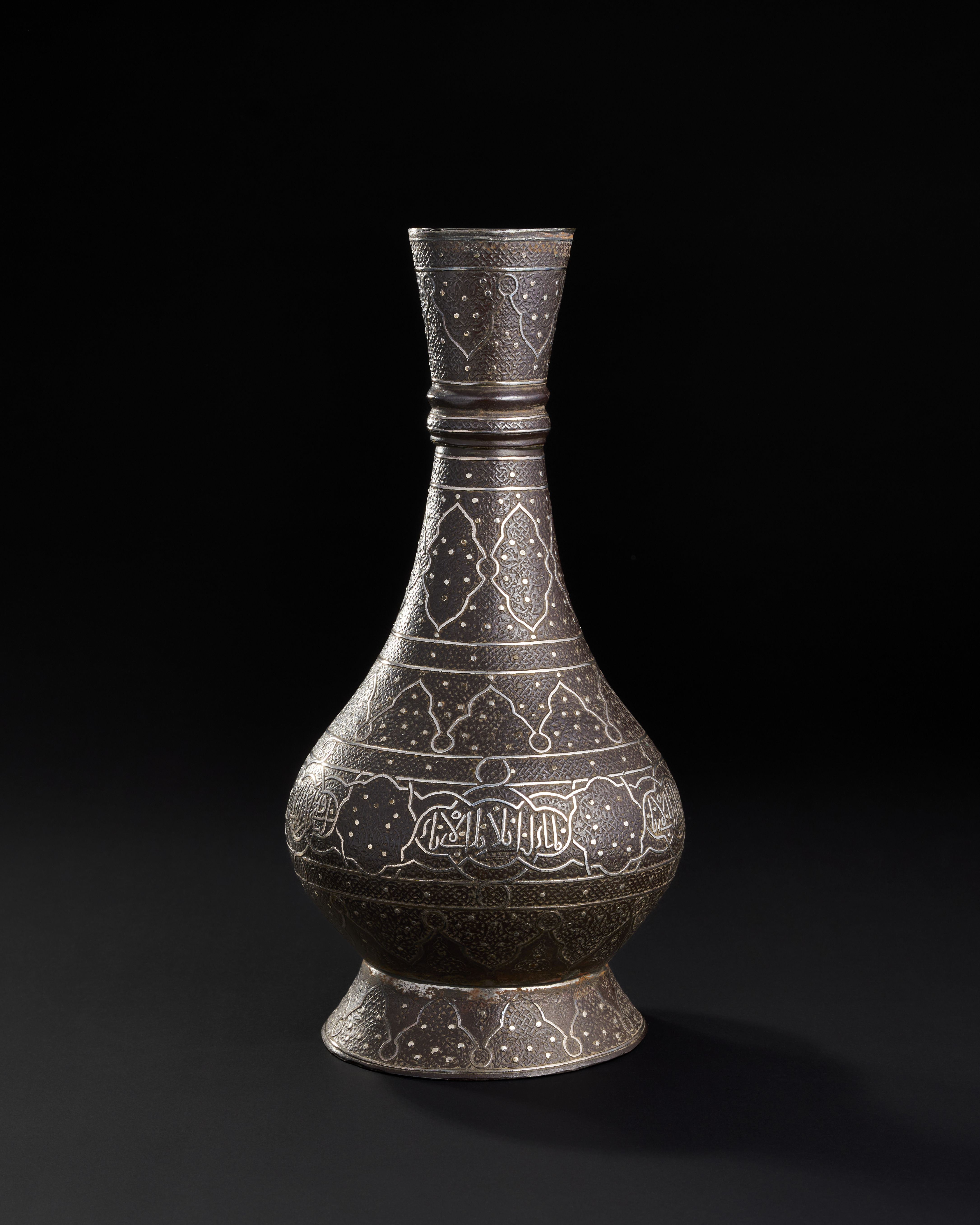 A FINE SILVER INALID BOTTLE VASE, POSSIBLY VENETO SARACENIC, MAHMOUD ALKURDI STYLE