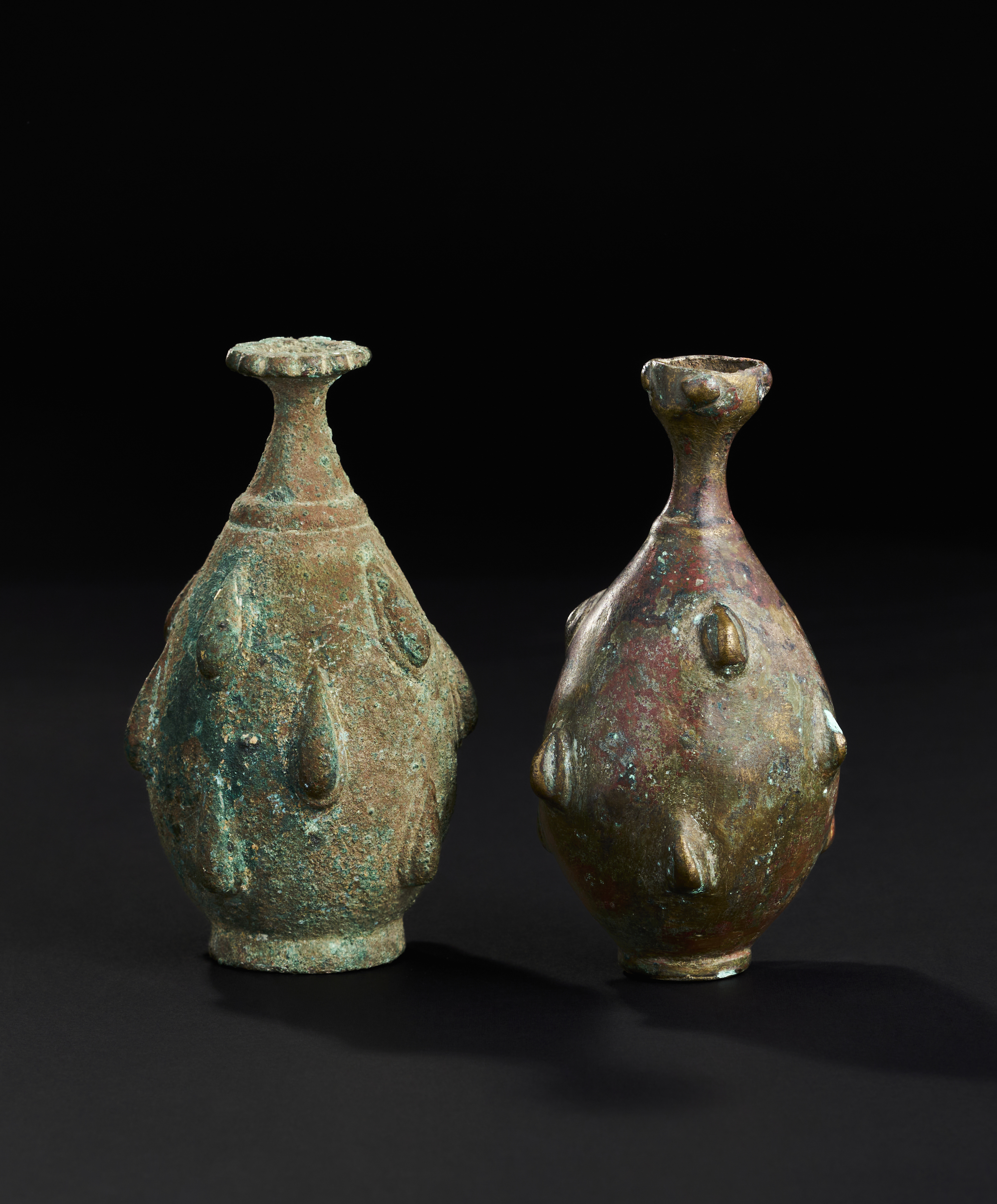 TWO SELJUK BRONZE ROSEWATER SPRINKLERS, PERSIA, 12TH -13TH CENTURY