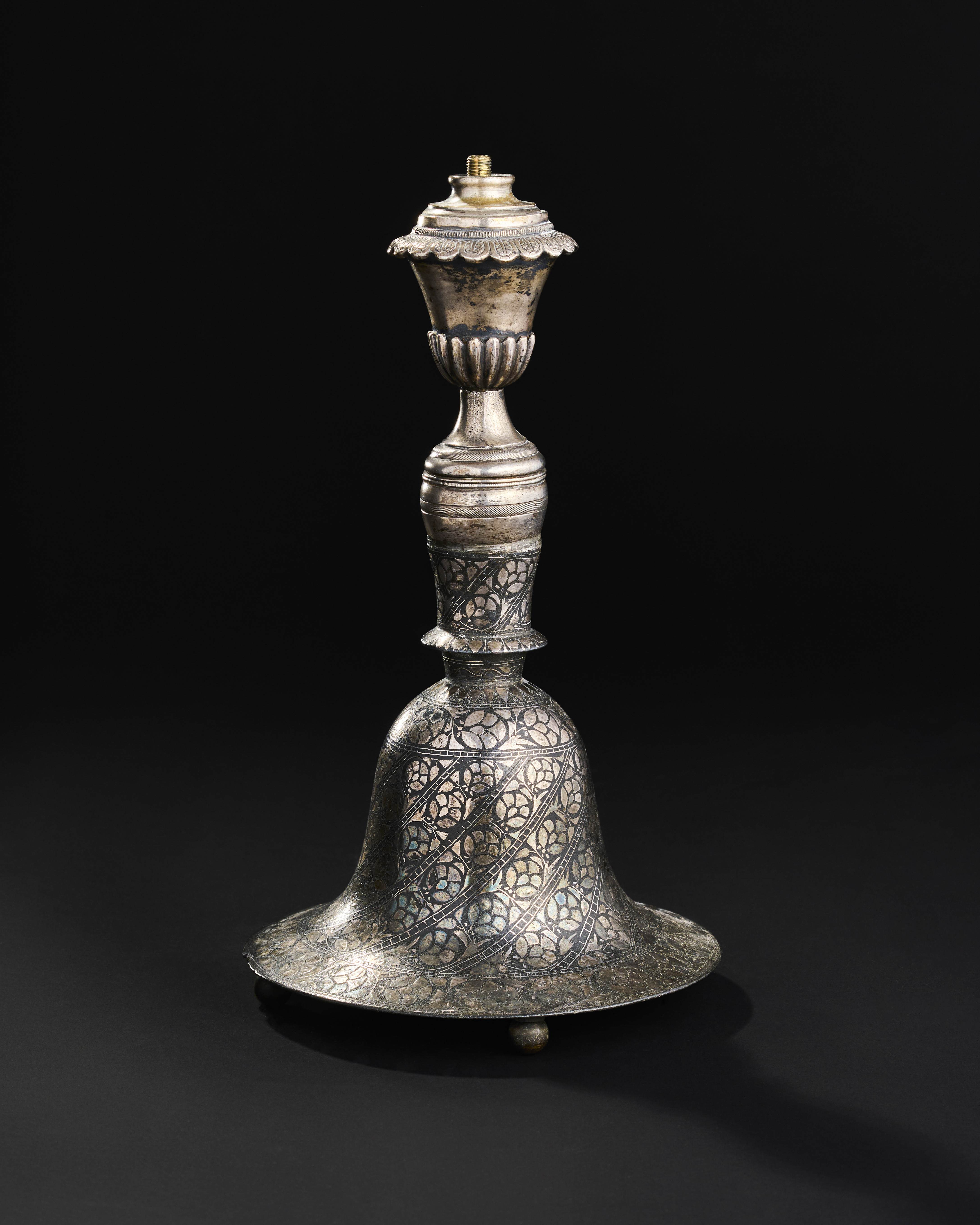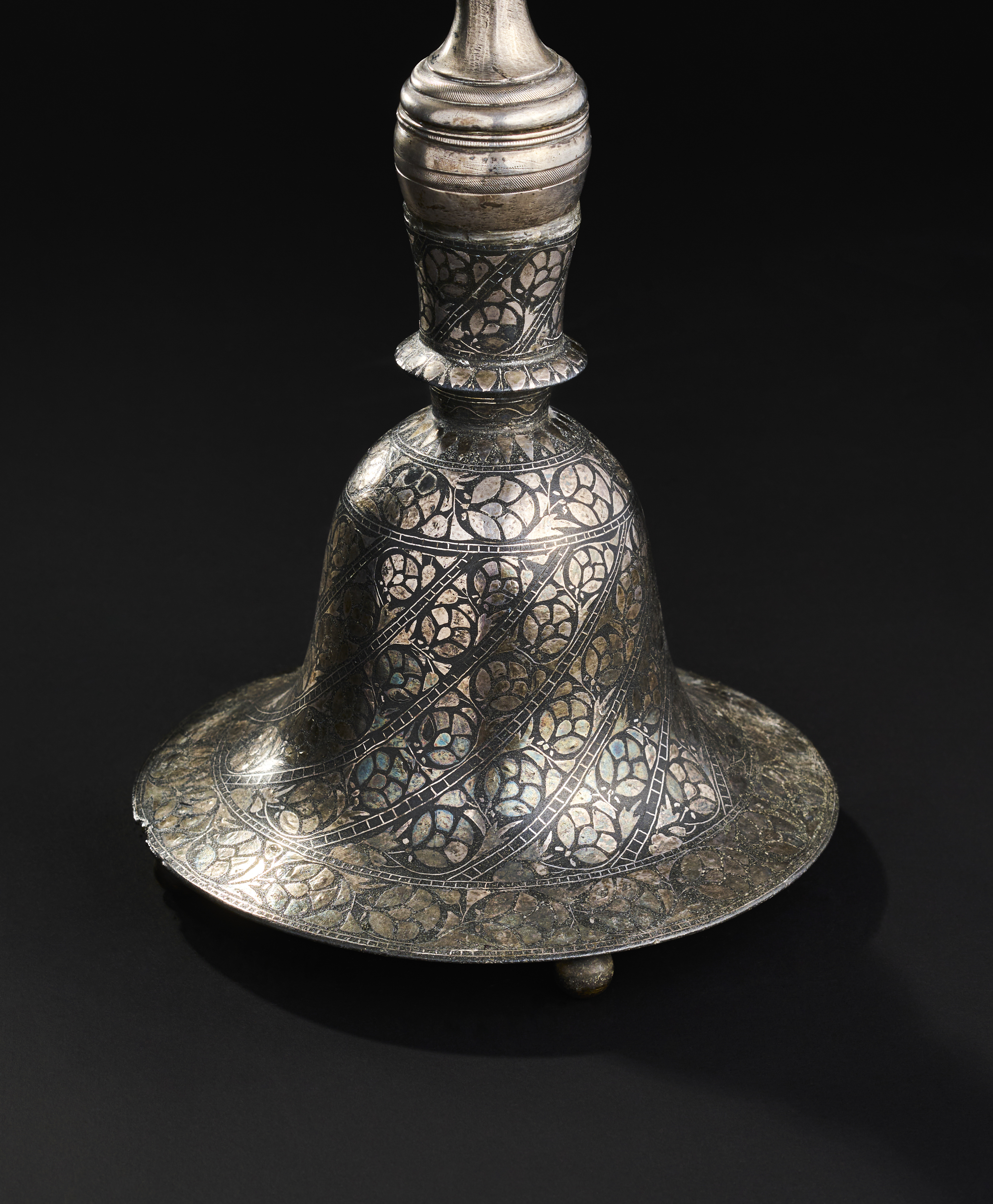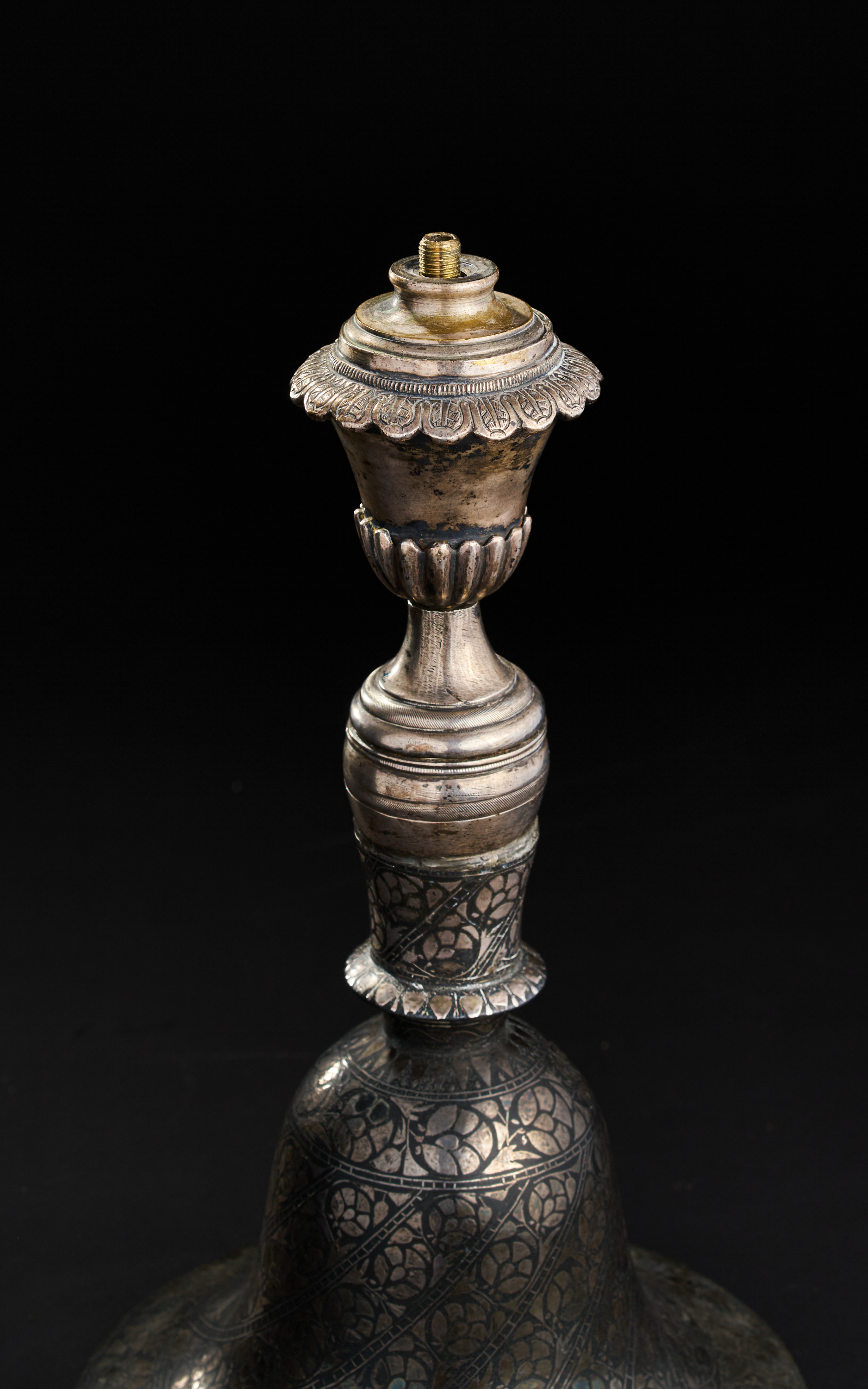 A SILVER OTTOMAN TOP WITH SILVER BIDRI HUQQA BASE, 19TH CENTURY