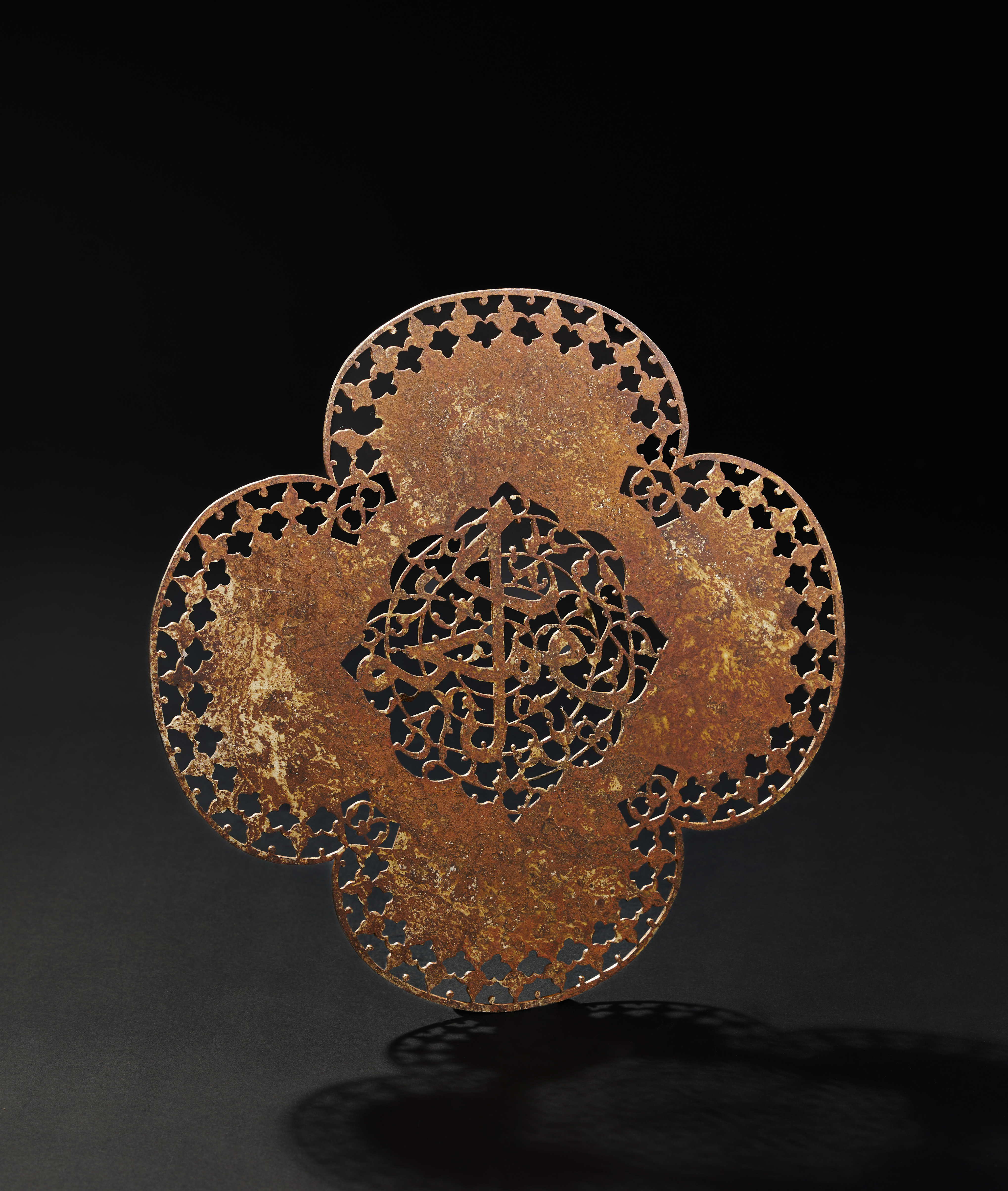 A SAFAVID PIERCED STEEL QUATREFOIL PANEL, PERSIA, LATE 17TH CENTURY