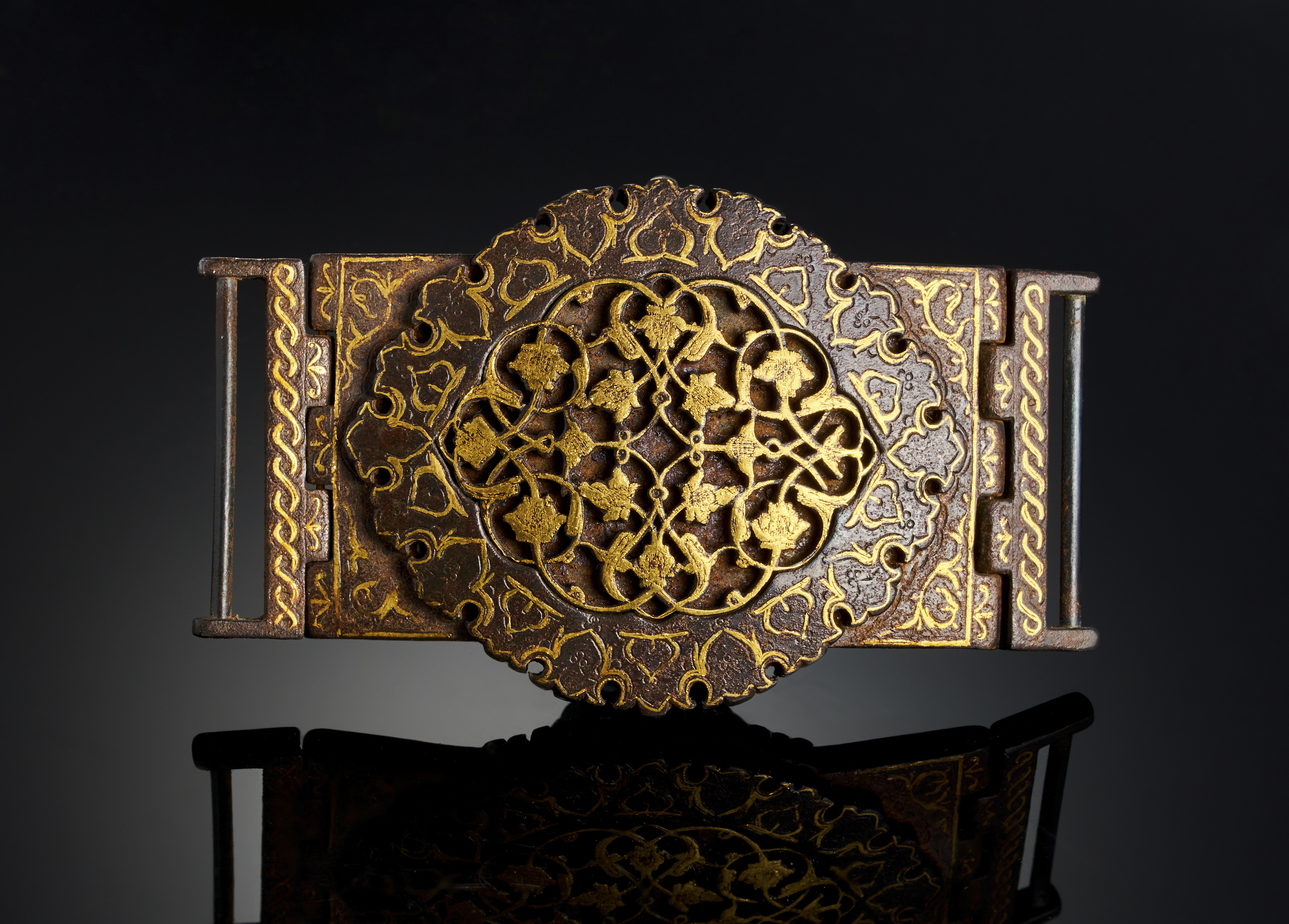 GOLD OVERLAID OPEN WORK IRON BUCKLE, QAJAR, LATE 19TH CENTURY