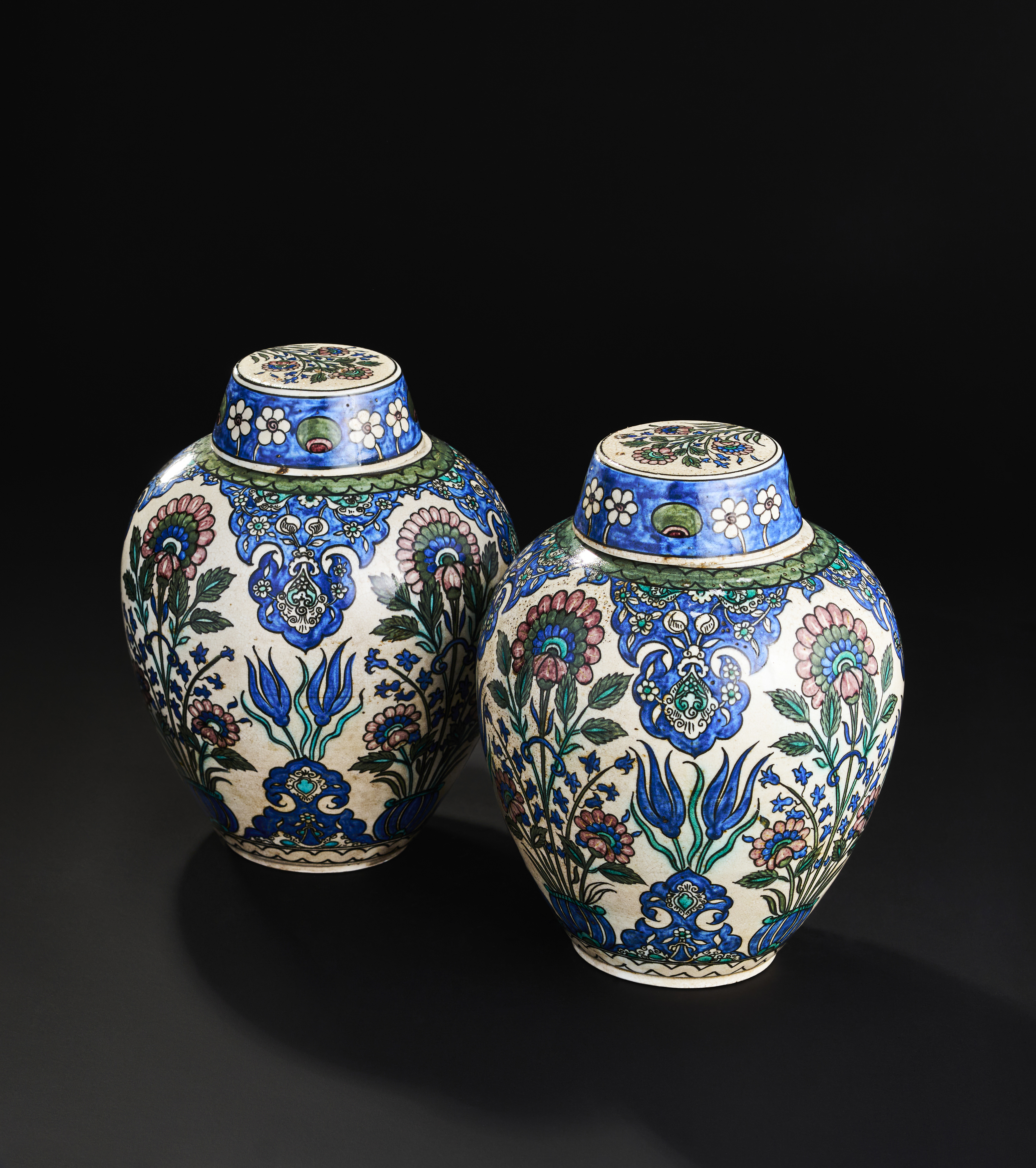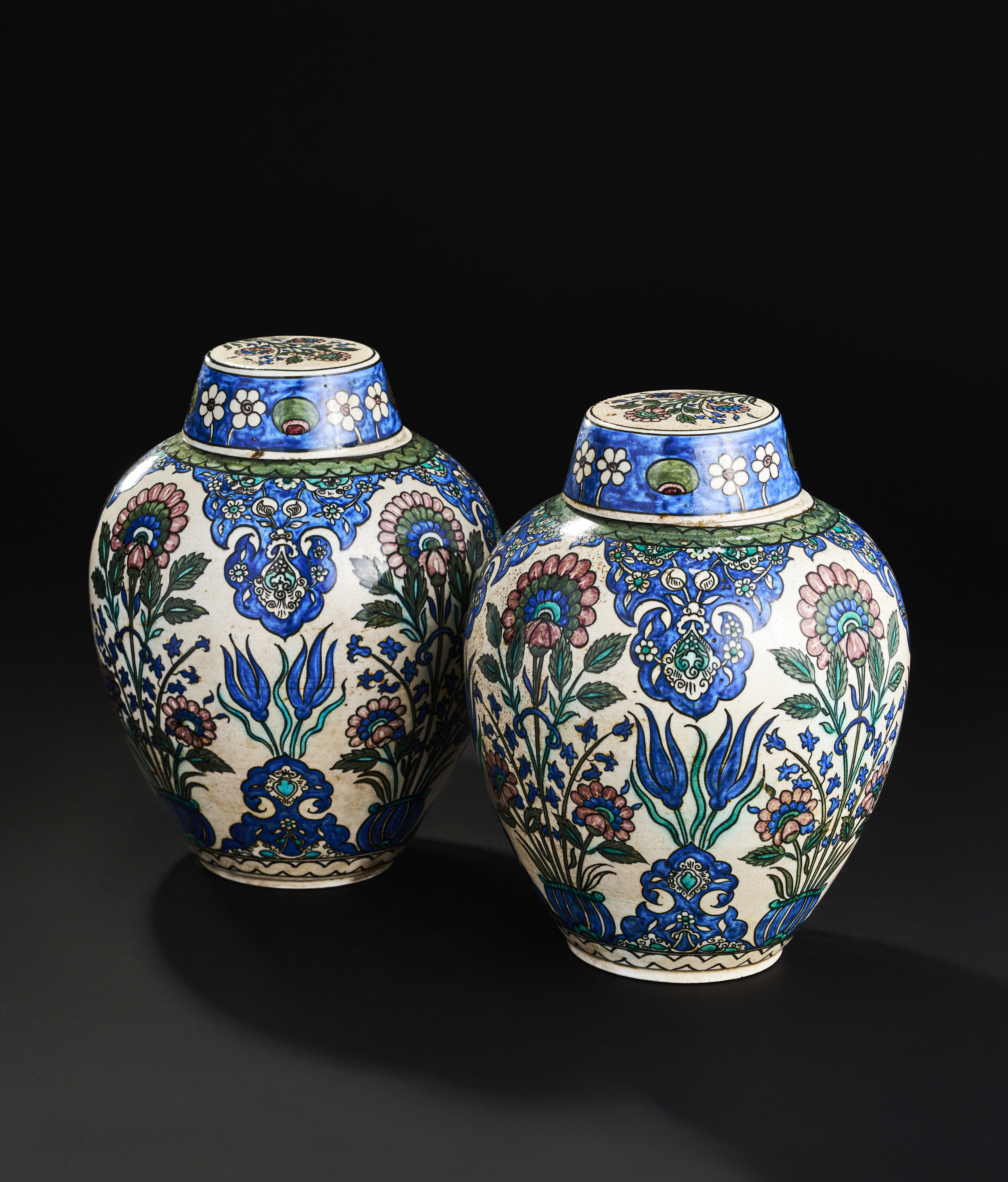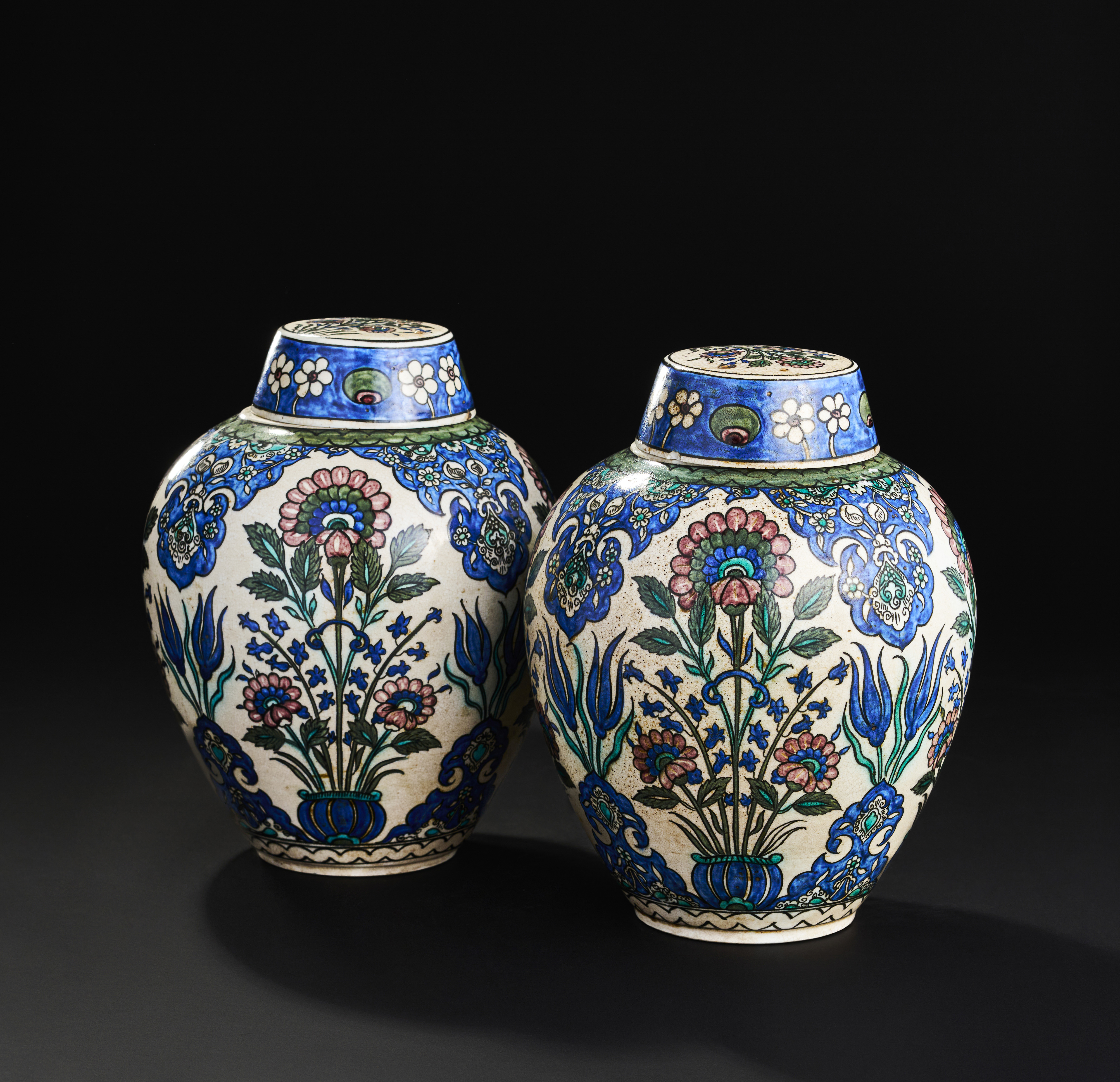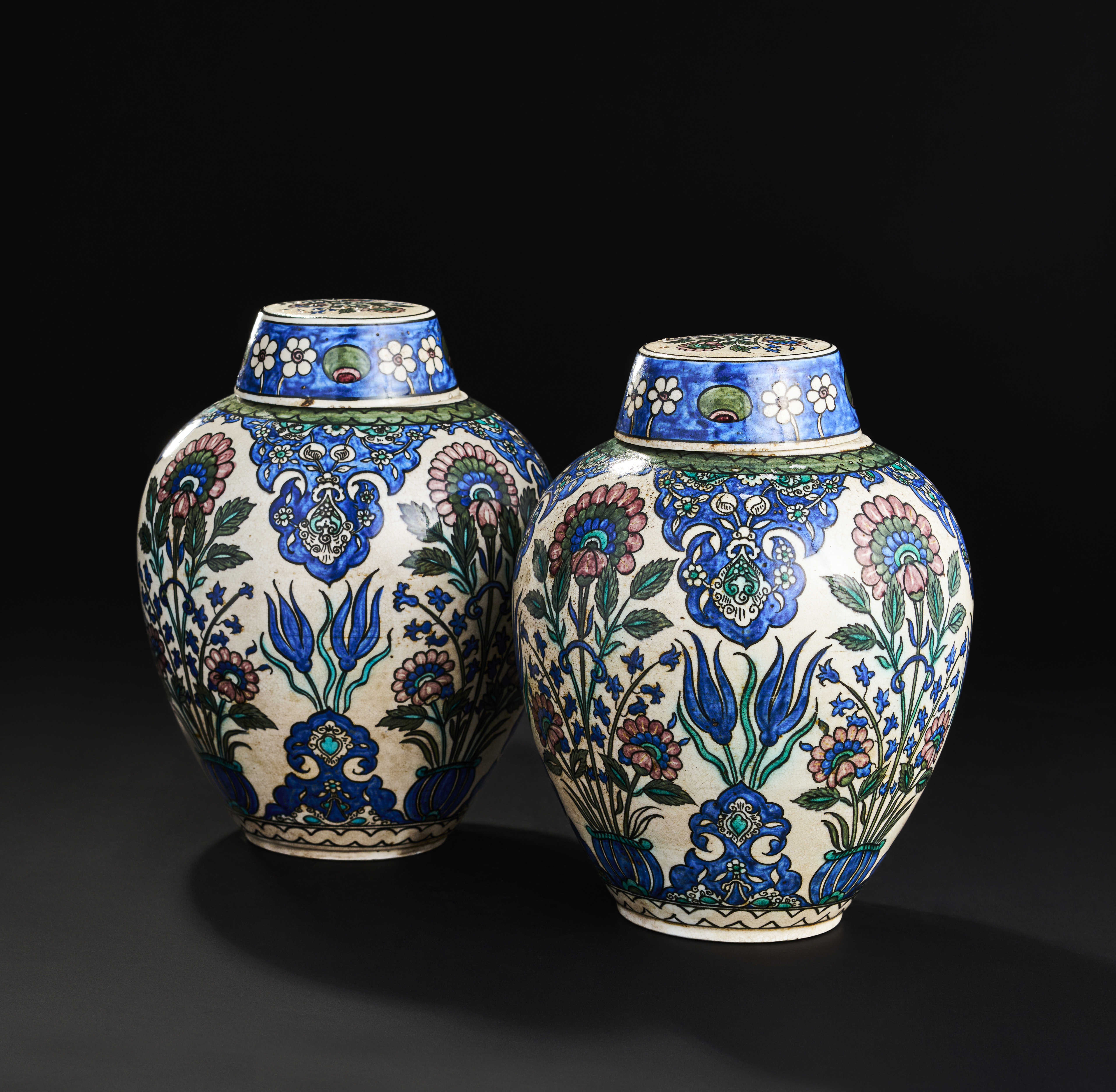 A PAIR OF ORIENTALIST FRENCH SAMSON DAMASCUS STYLE LIDDED VASES, 19TH CENTURY