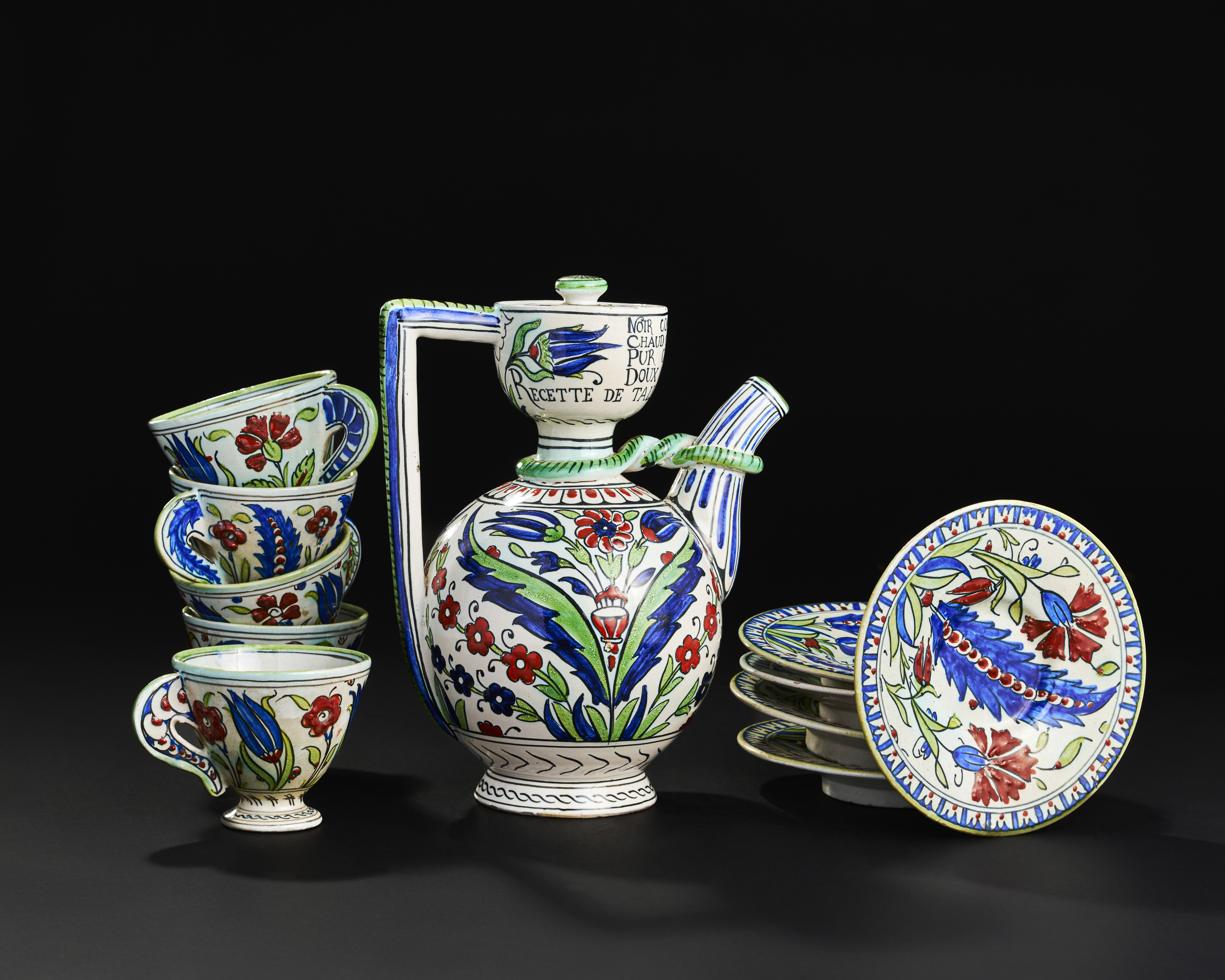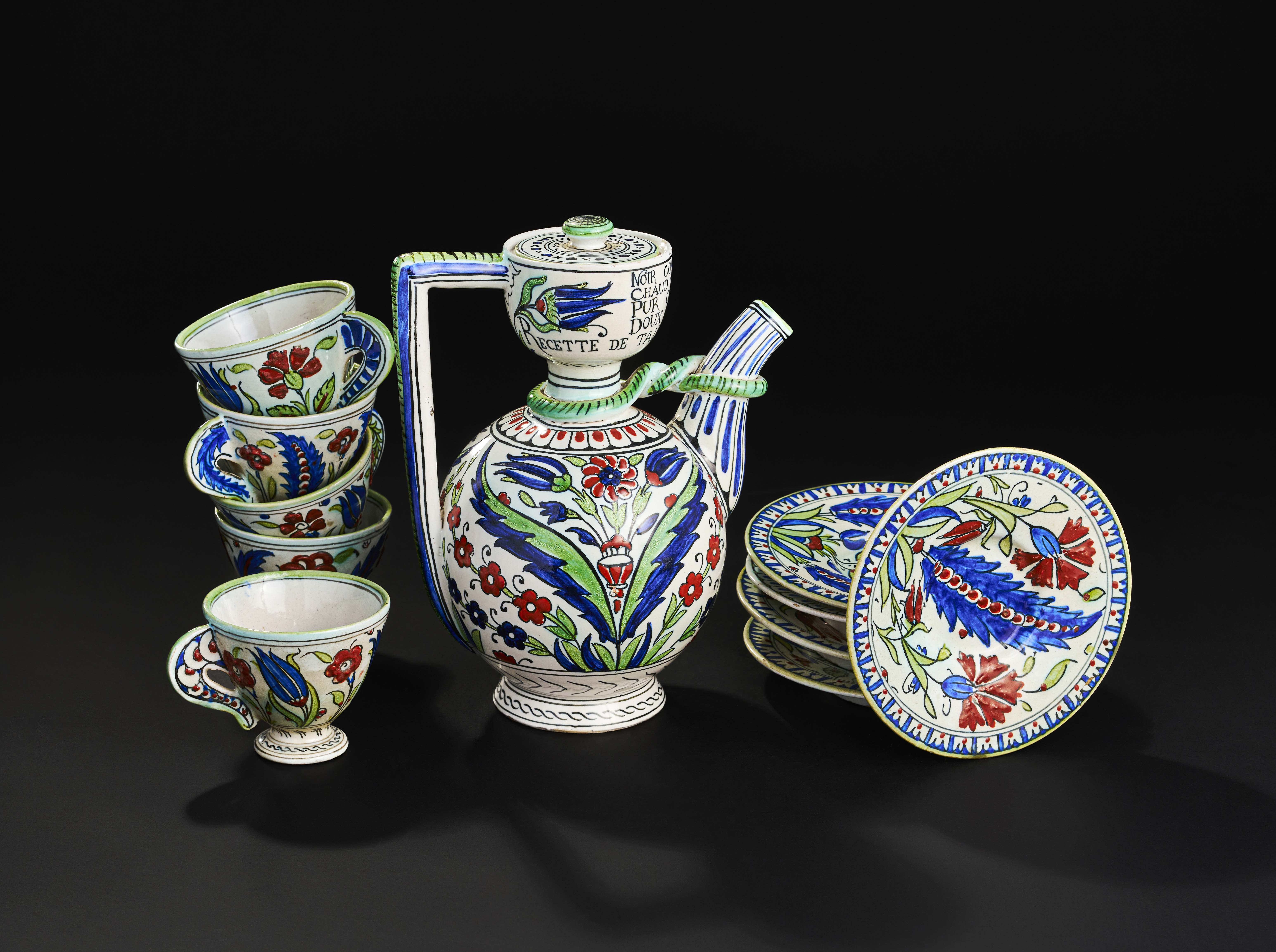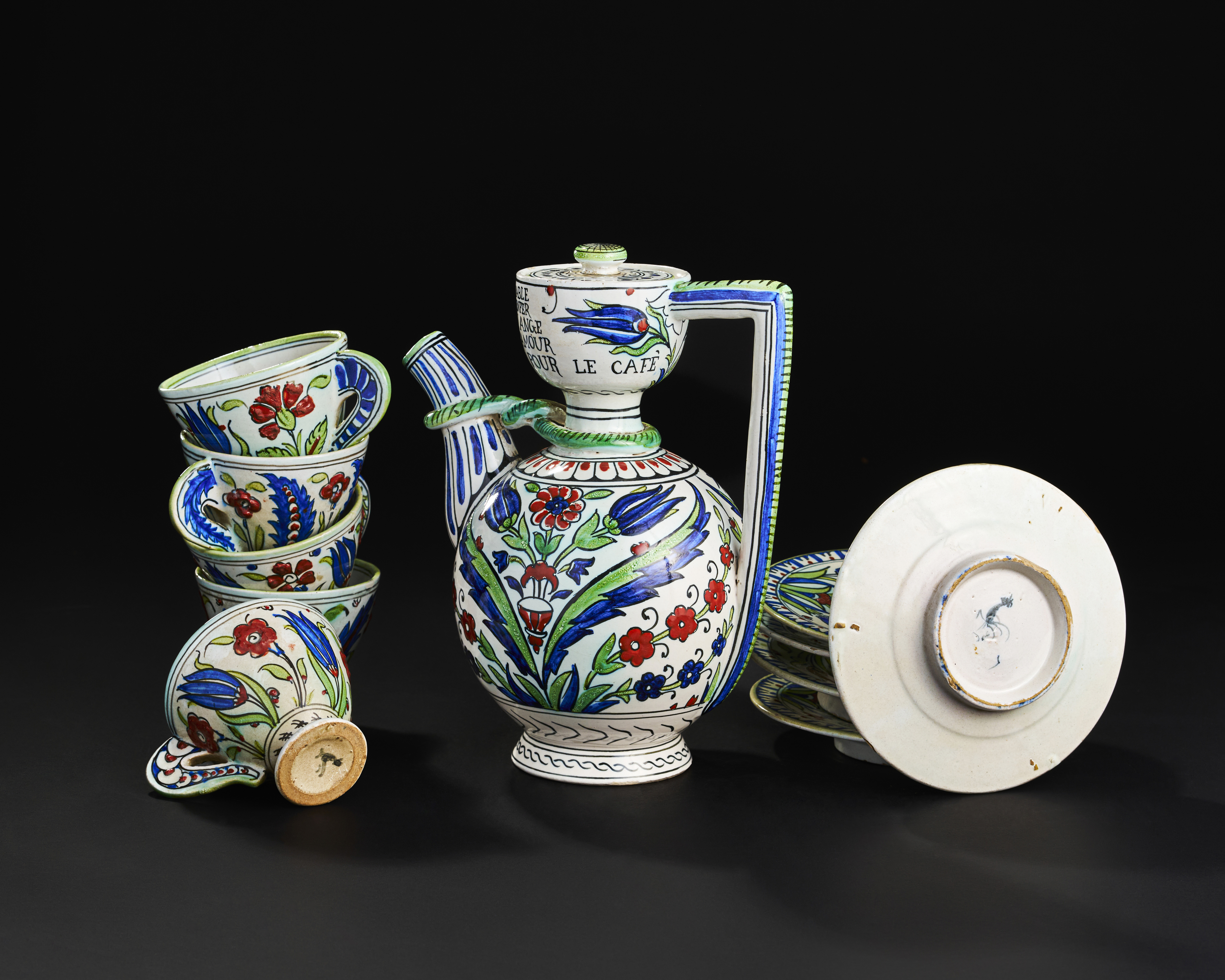 AN ORIENTALIST ITLIAN CANTAGALLI IZNIK SYLT COFFE SET, 19TH CENTURY
