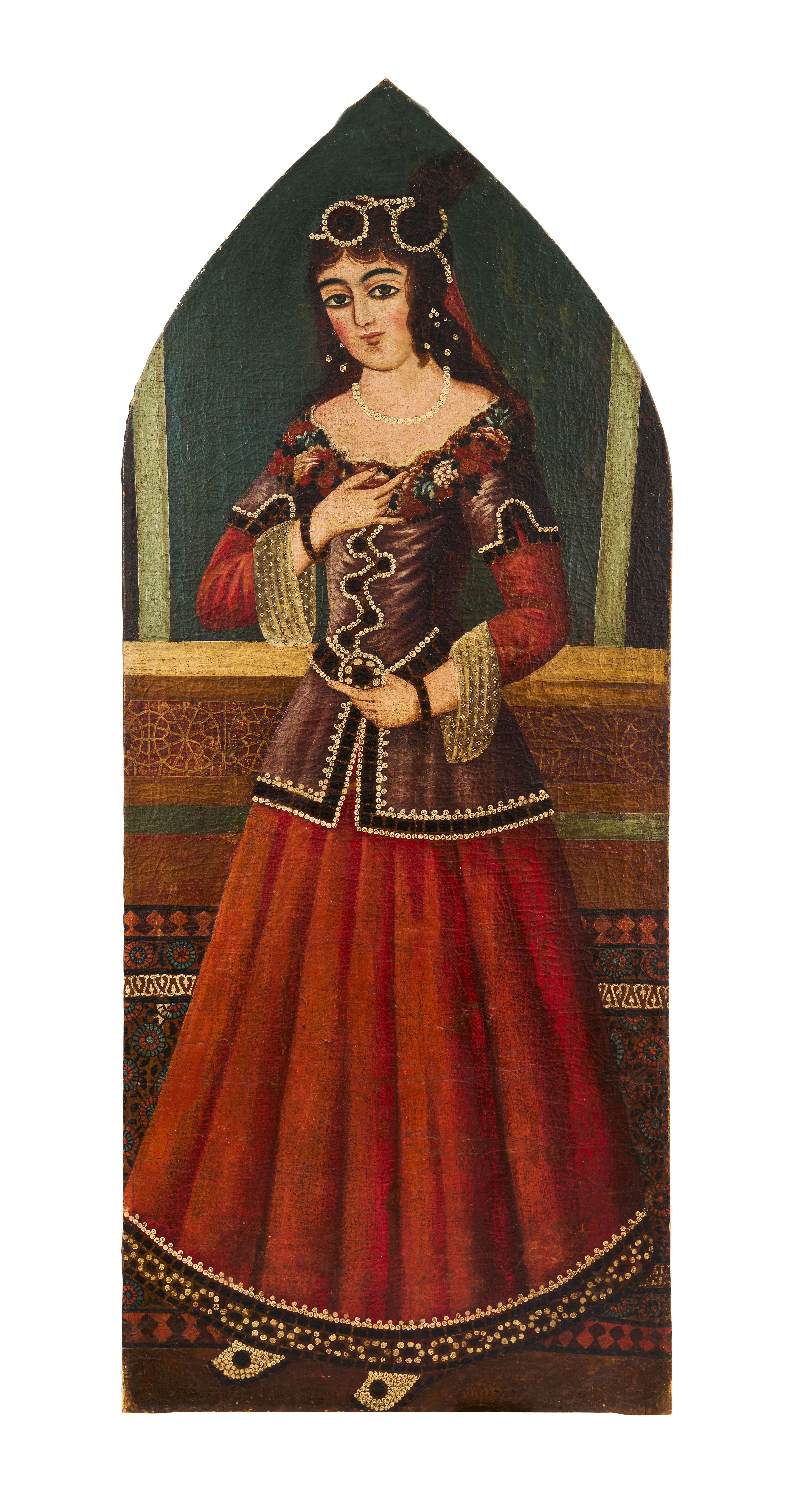 A LARGE OIL ON CANAVS DEPICTING A MAIDEN, QAJAR, 19TH CENTURY
