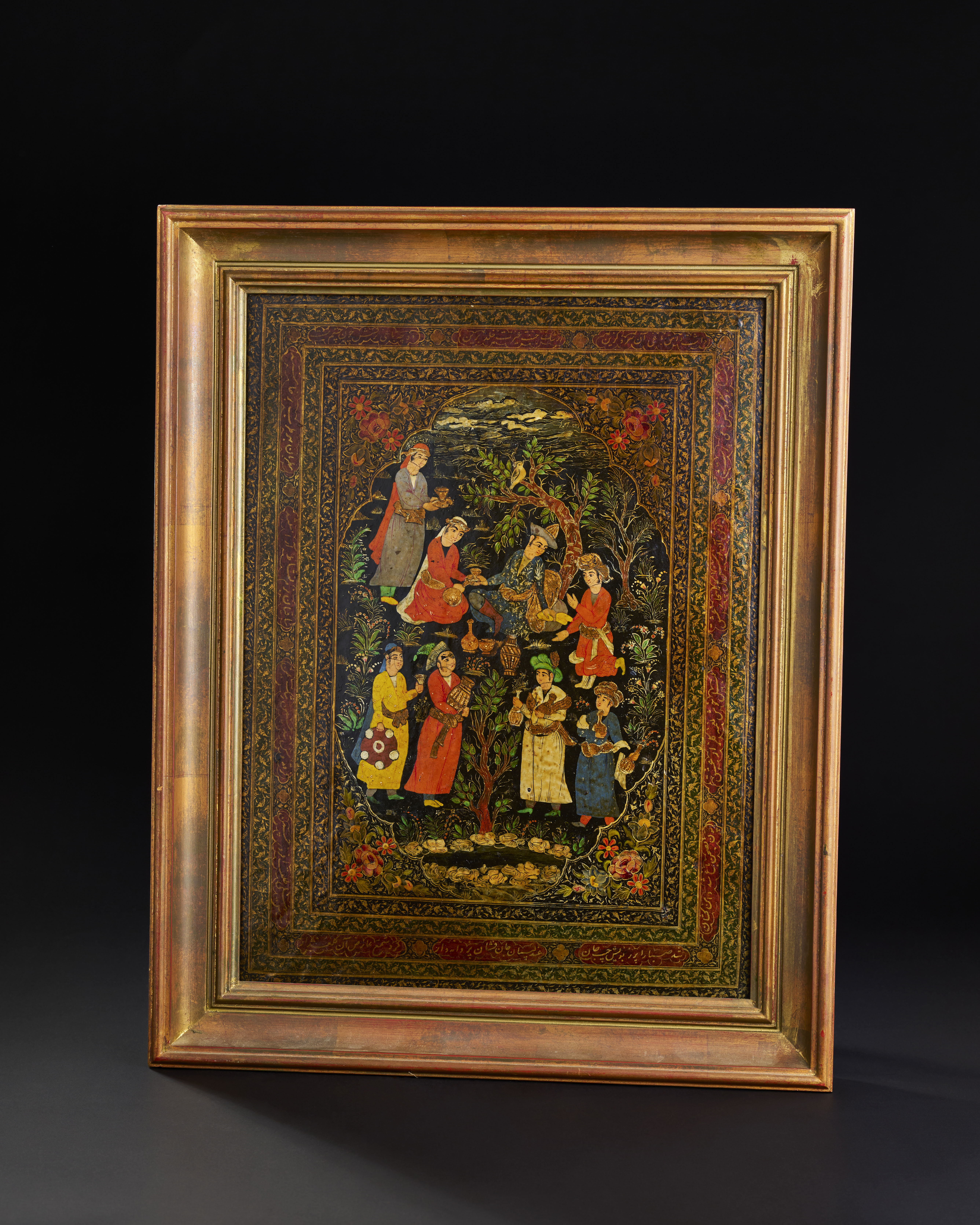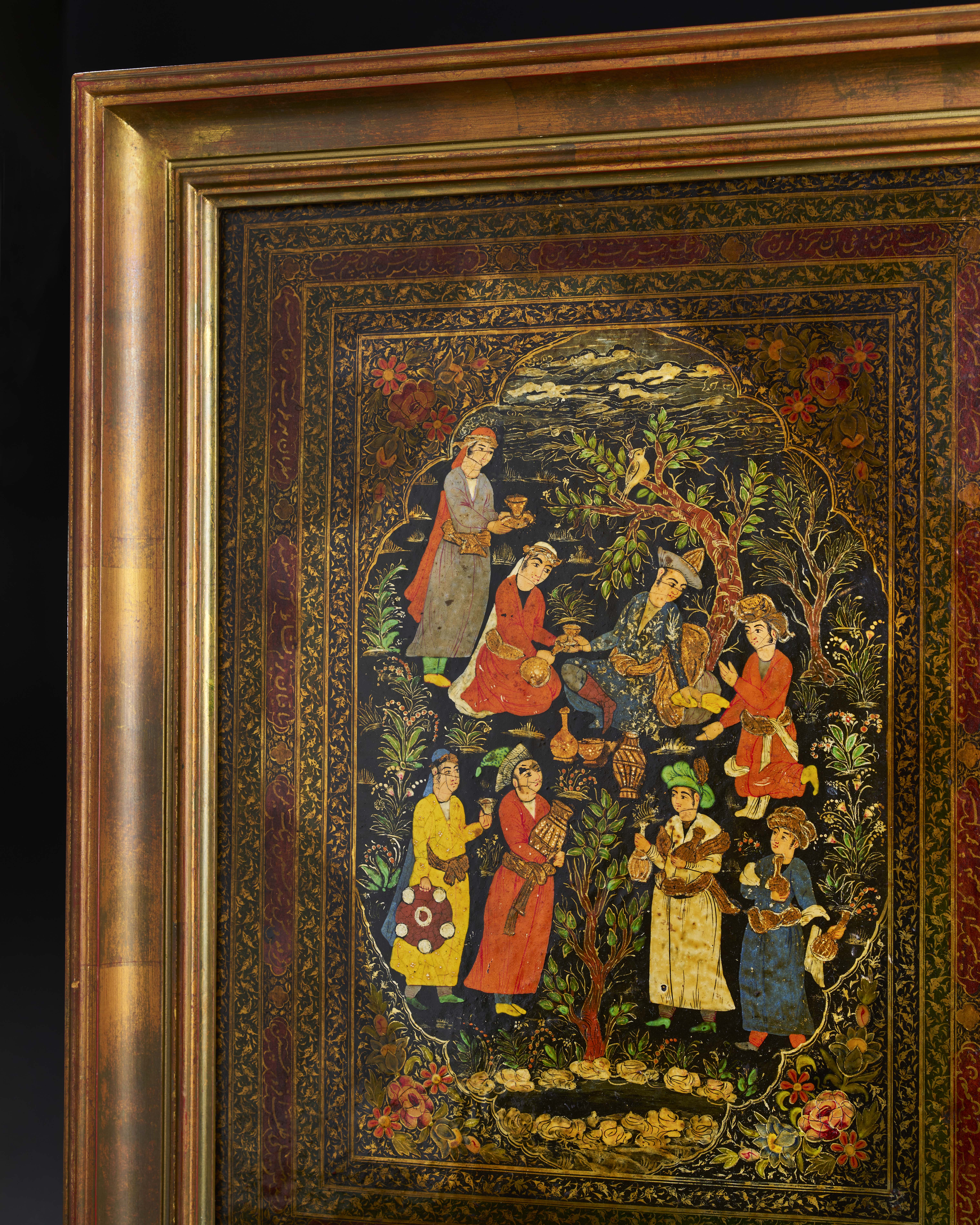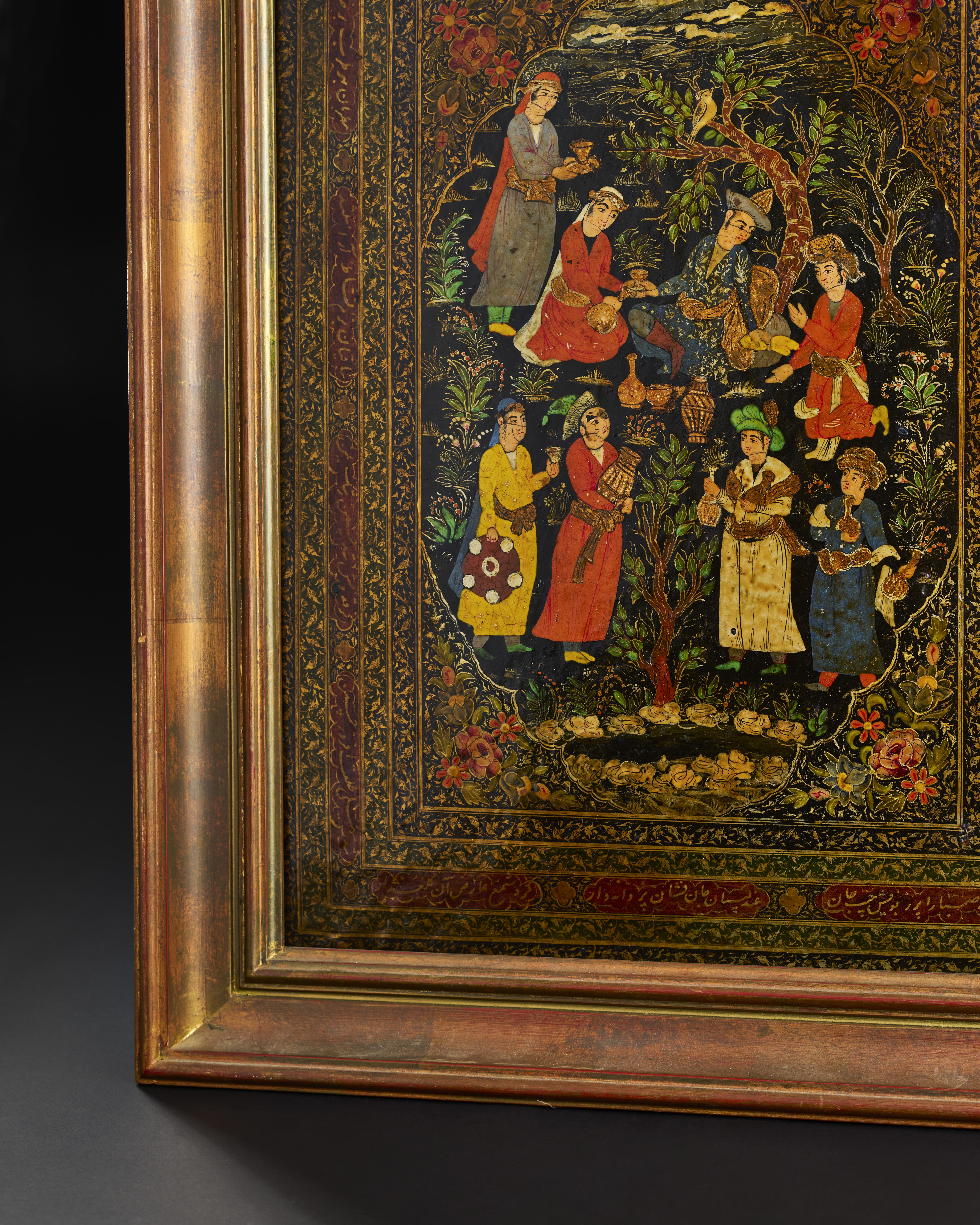 A QAJAR LACQUERED PAPIER-MACHE PANEL, 19TH CENTURY