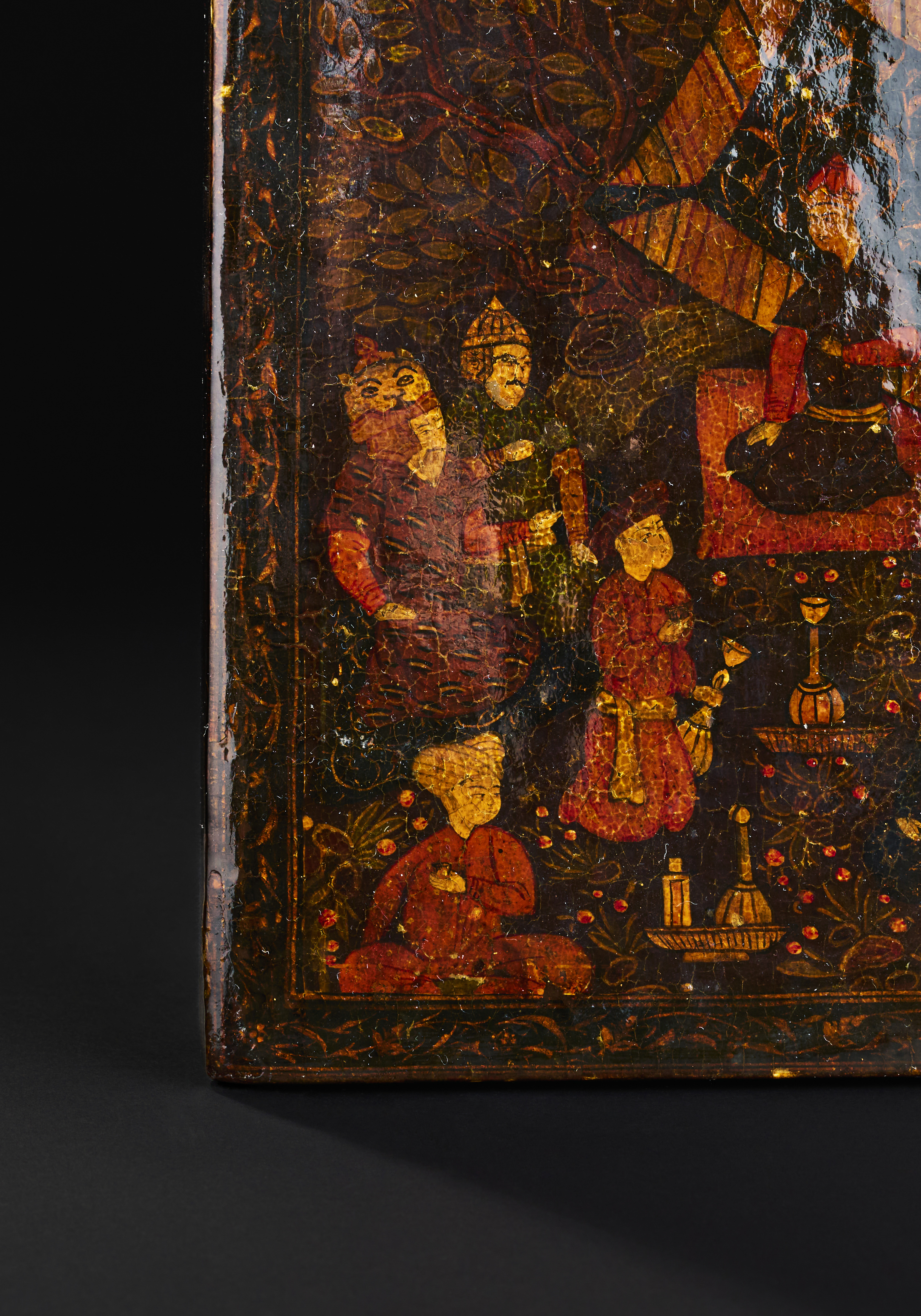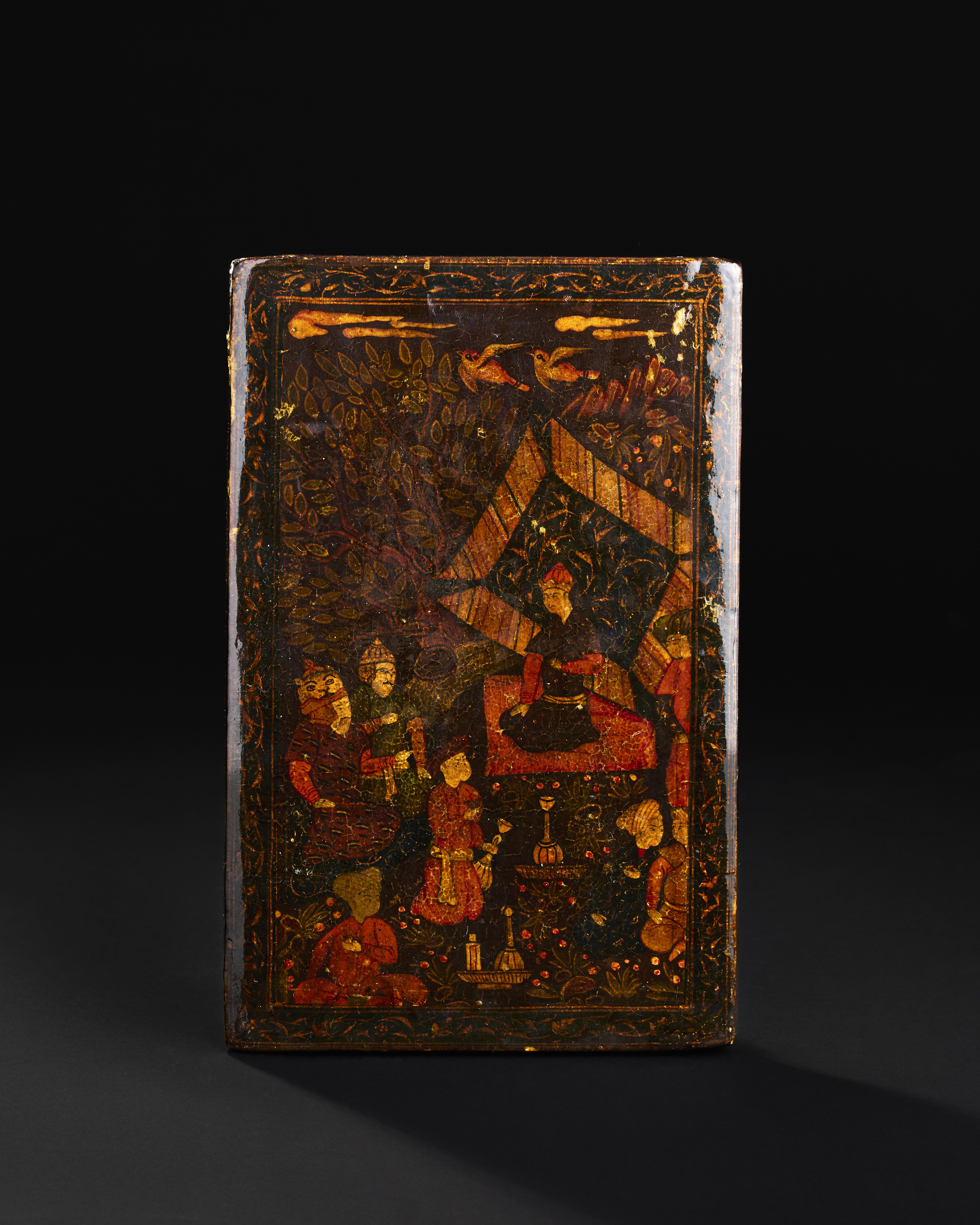 A QAJAR LACQUERED PAPIER-MACHE MIRROR CASE, PERSIA, 19TH CENTURY