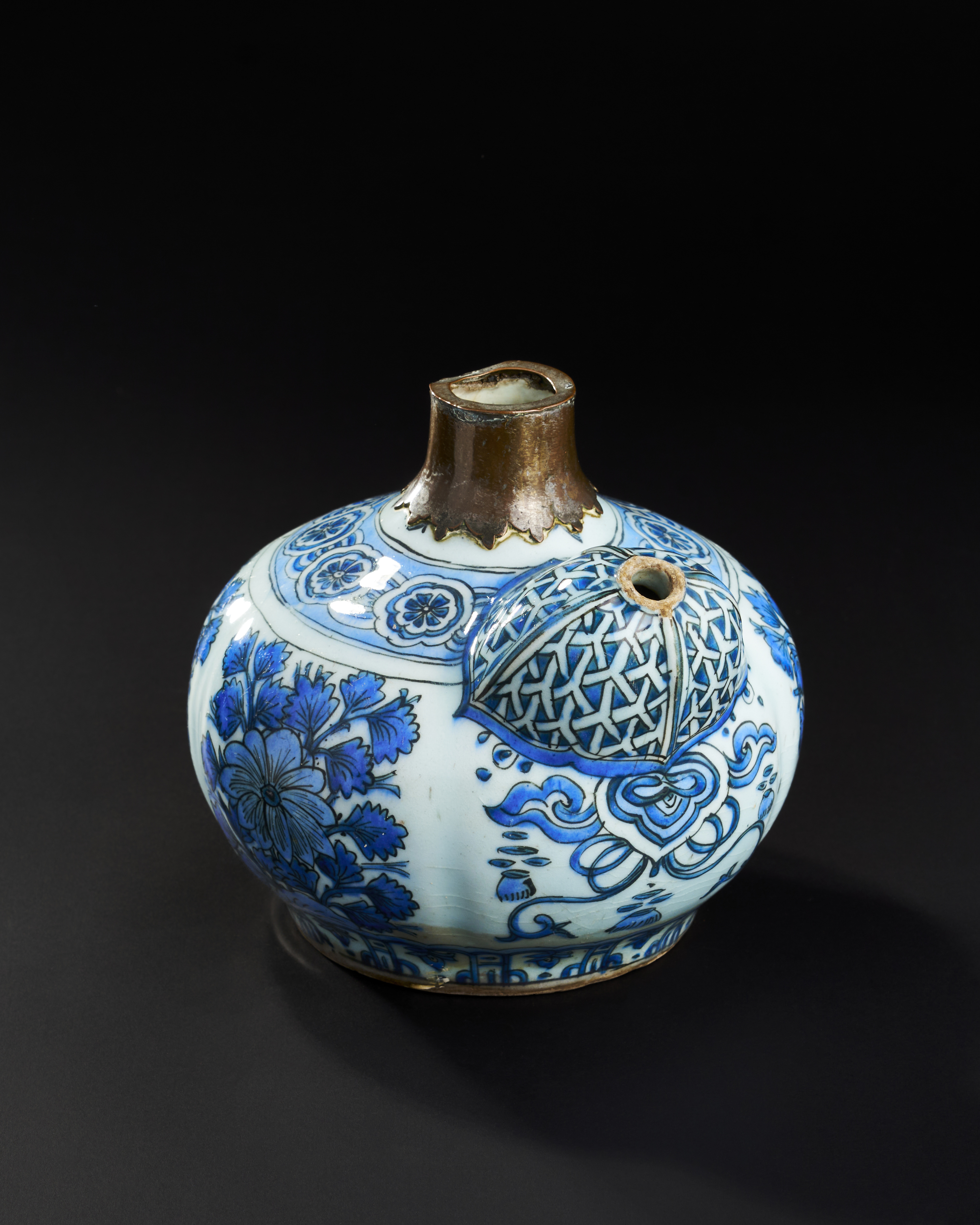 A 17TH CENTURY SAFAVID PERSIAN GALZED POTTERY KENDI