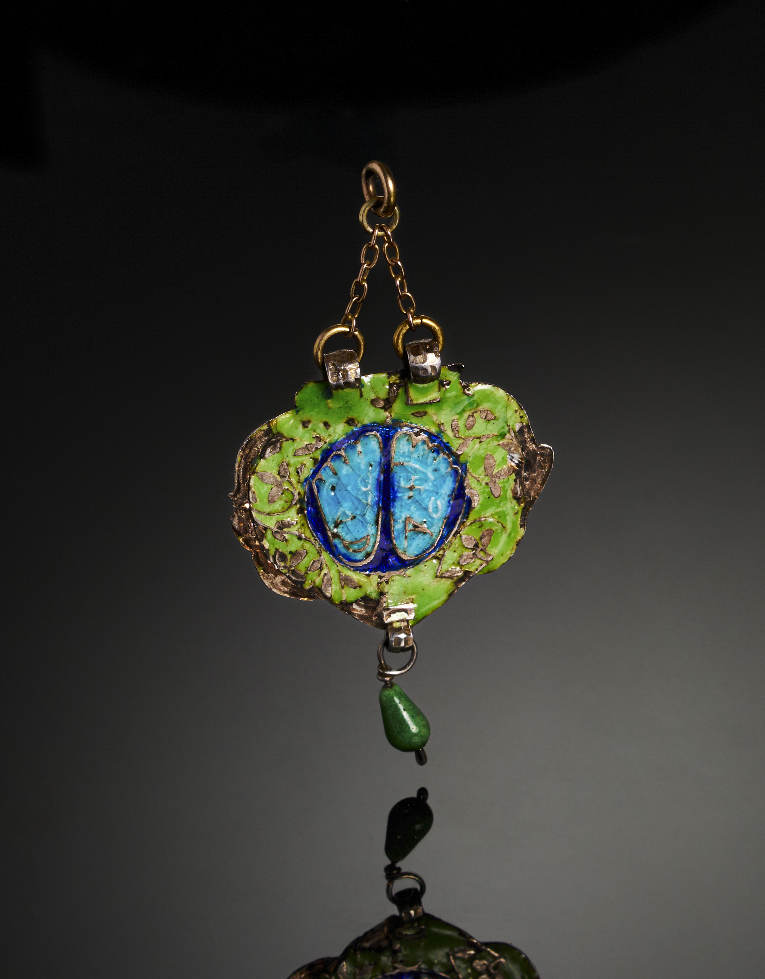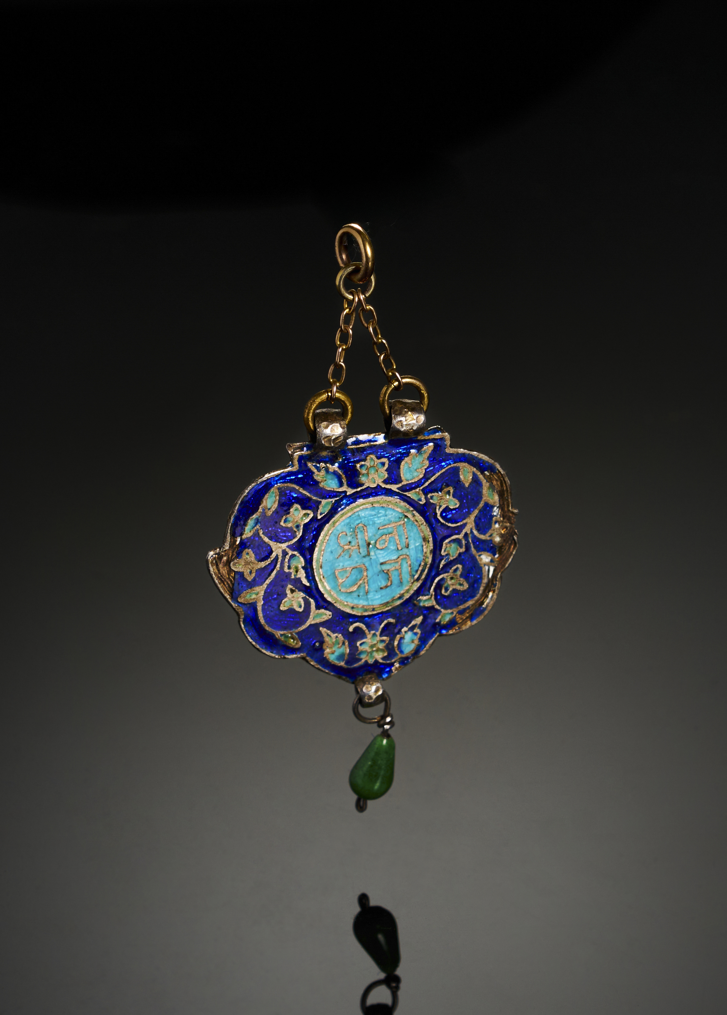 AN INSCRIBED INDIAN ENAMELLED SILVER PENDENT, 19TH CENTURY