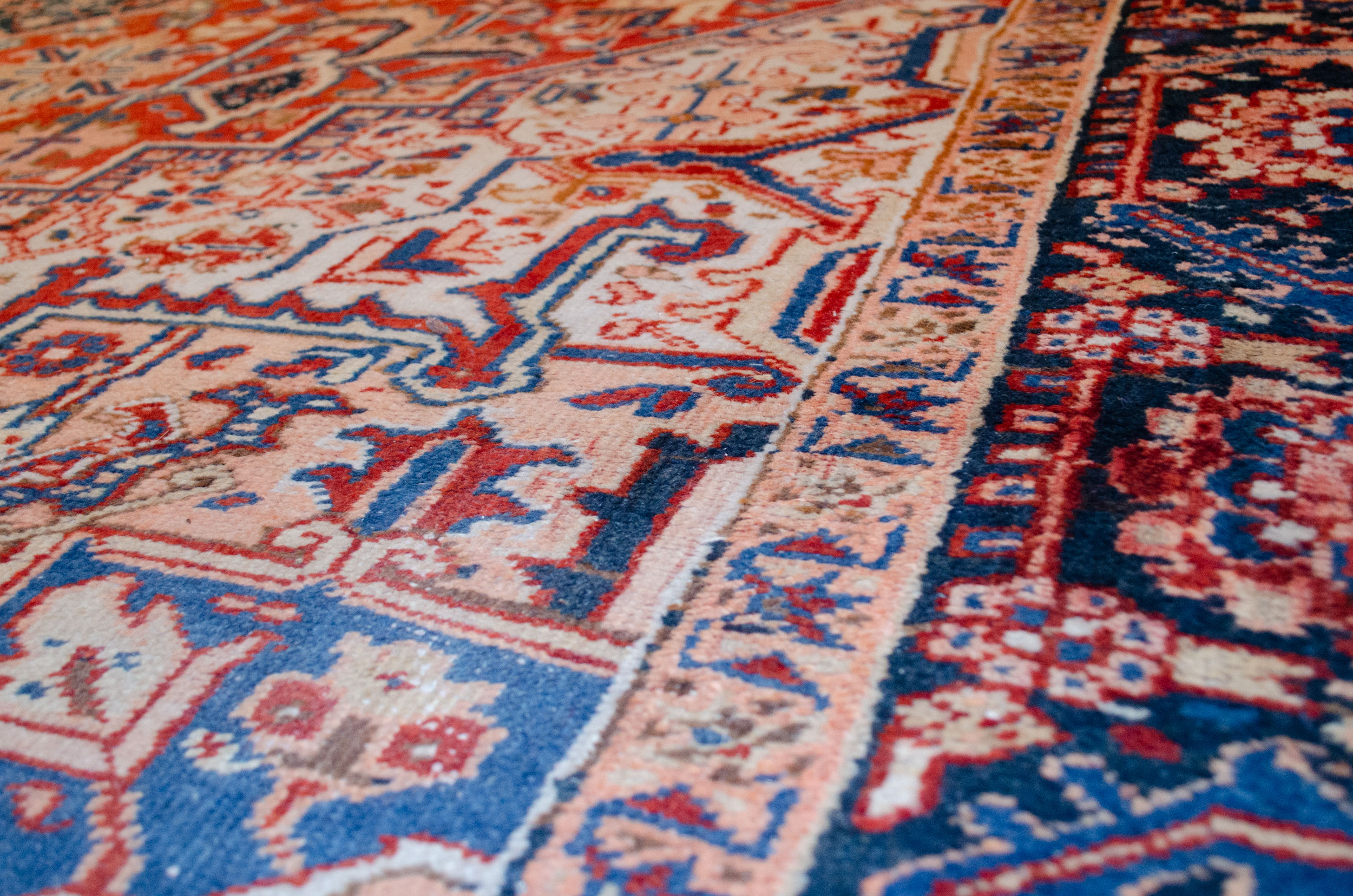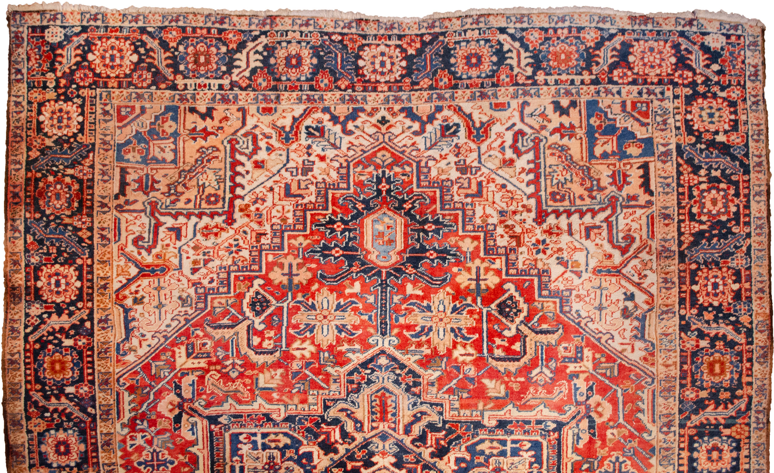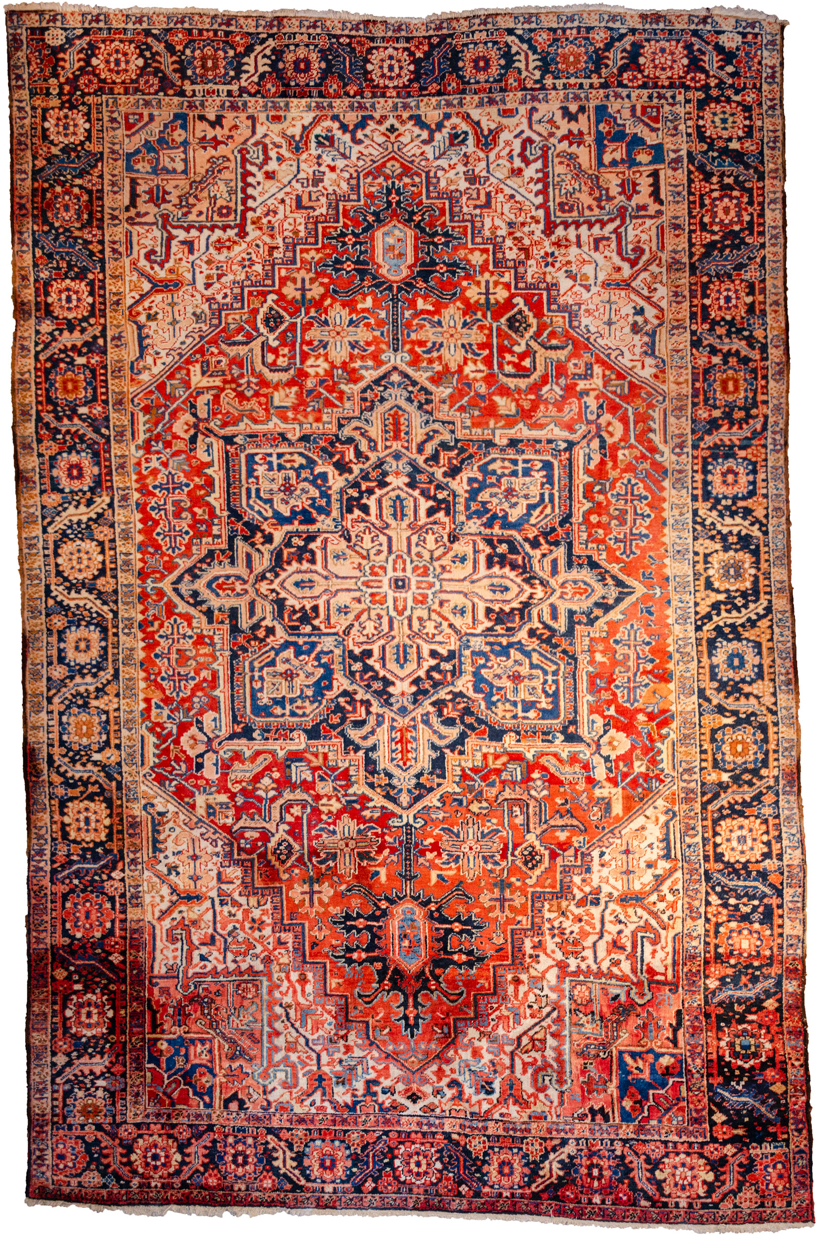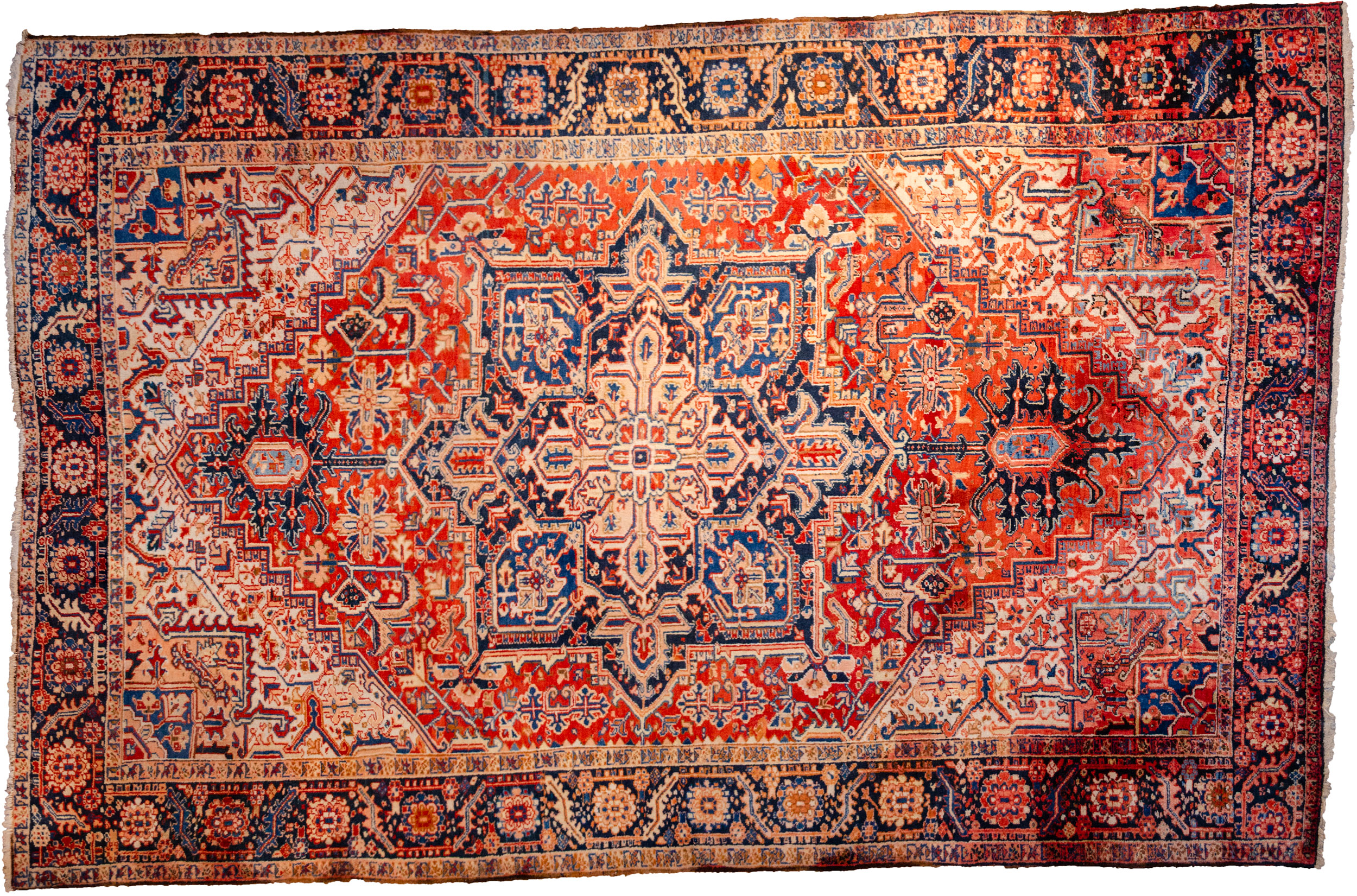 A large Heriz carpets with a bold medallion and geometric design.