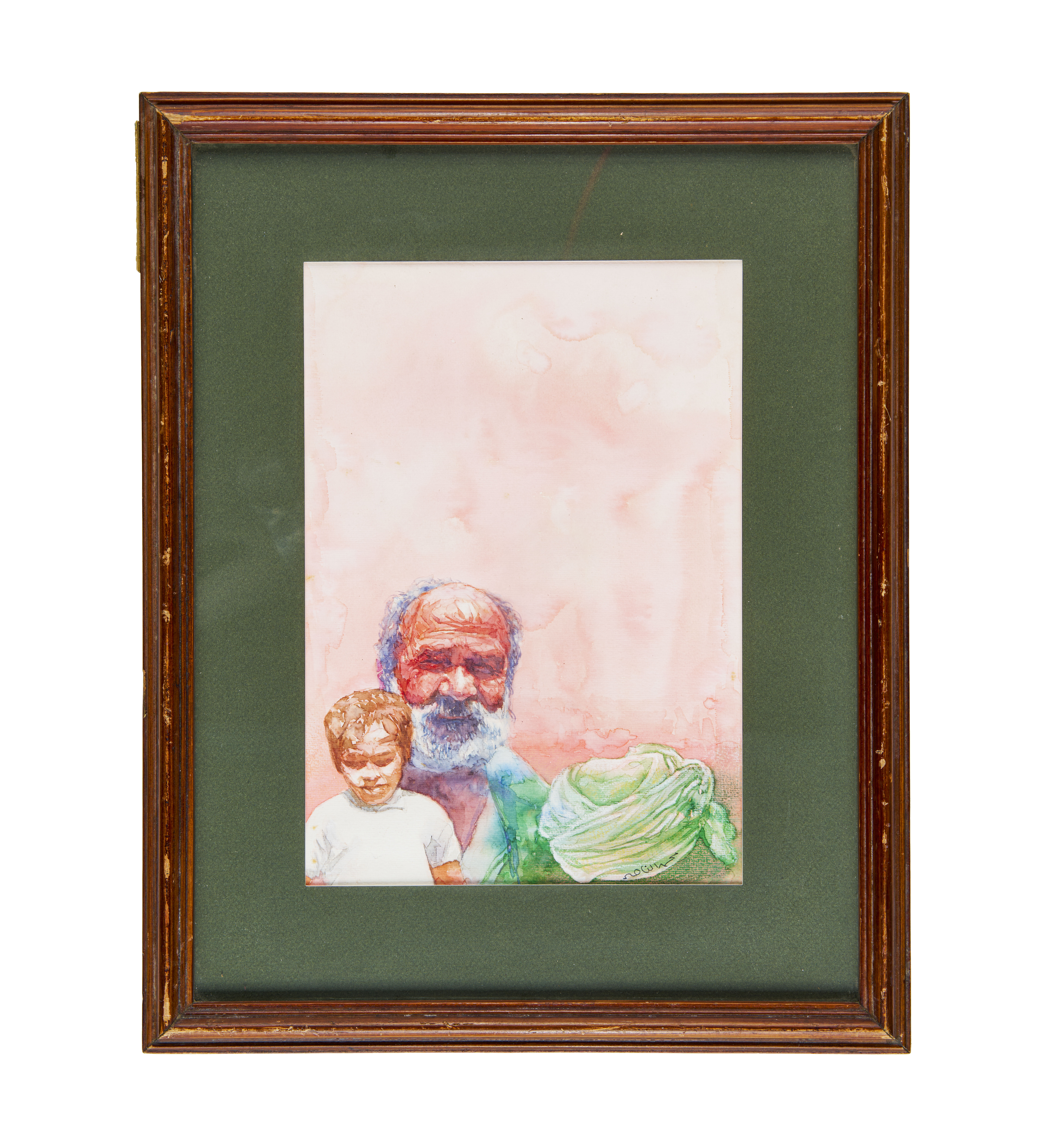 MAN WITH A CHILED A WATERCOLOUR PAINTING BY MOHAMMED NASSER (EGYPTIAN)