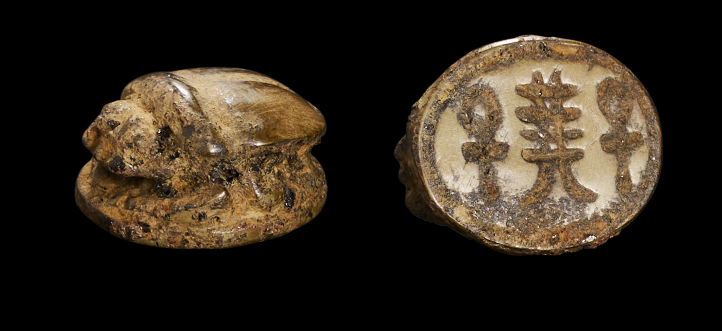 AN EGYPTIAN SCARAB WITH HIEROGLYPHS OF ANKH (SIGN OF LIFE), MIDDLE KINGDOM