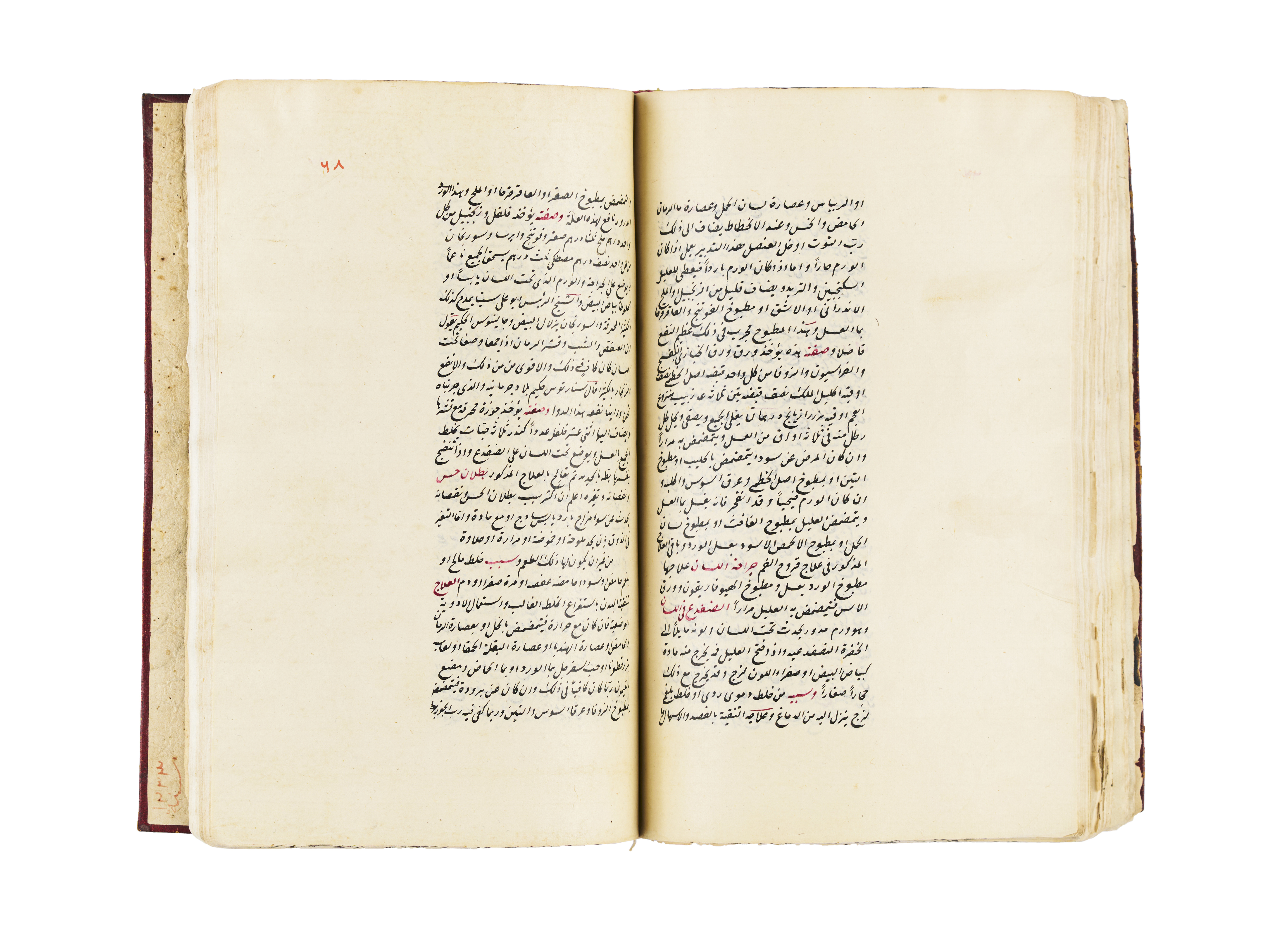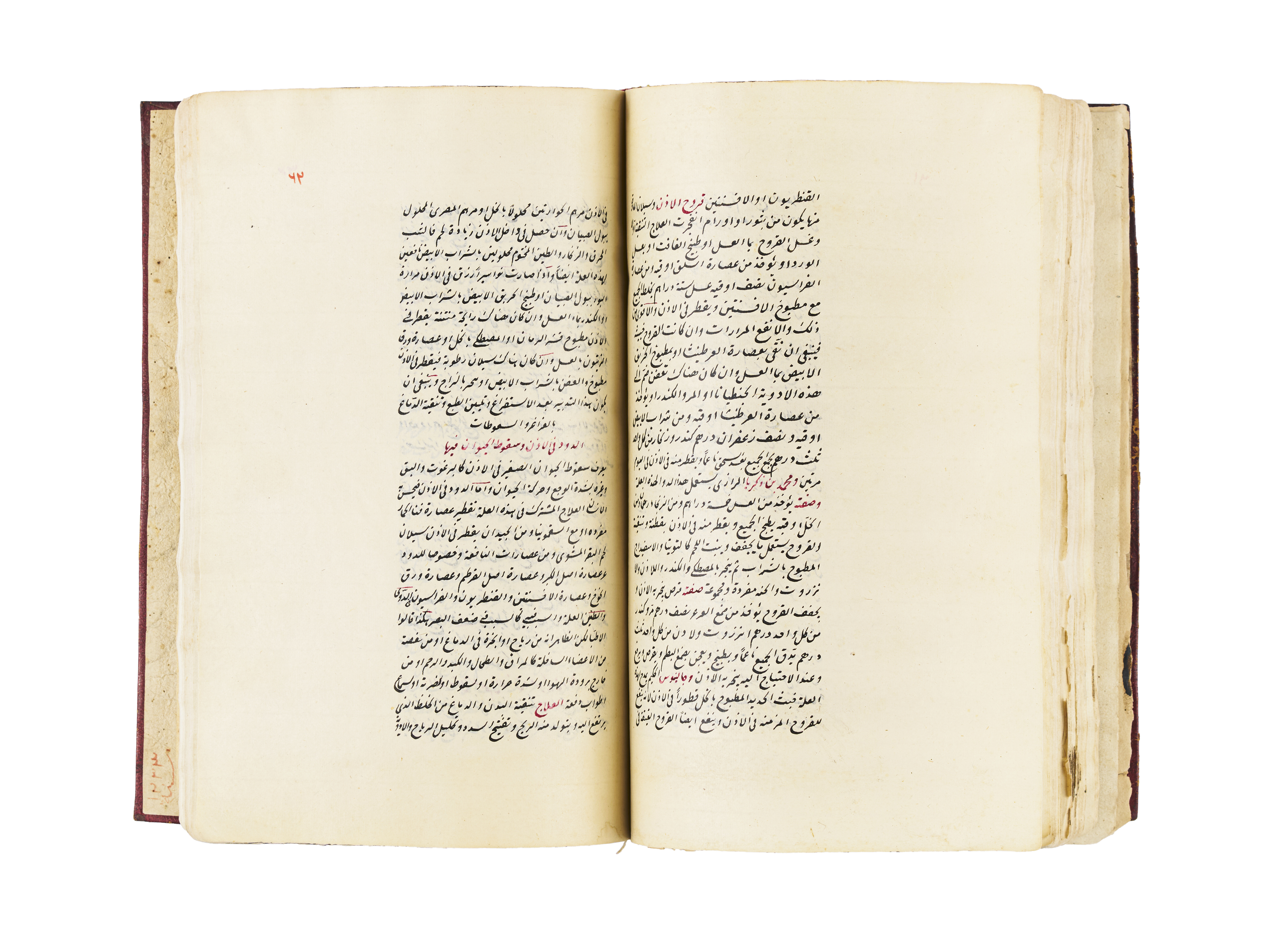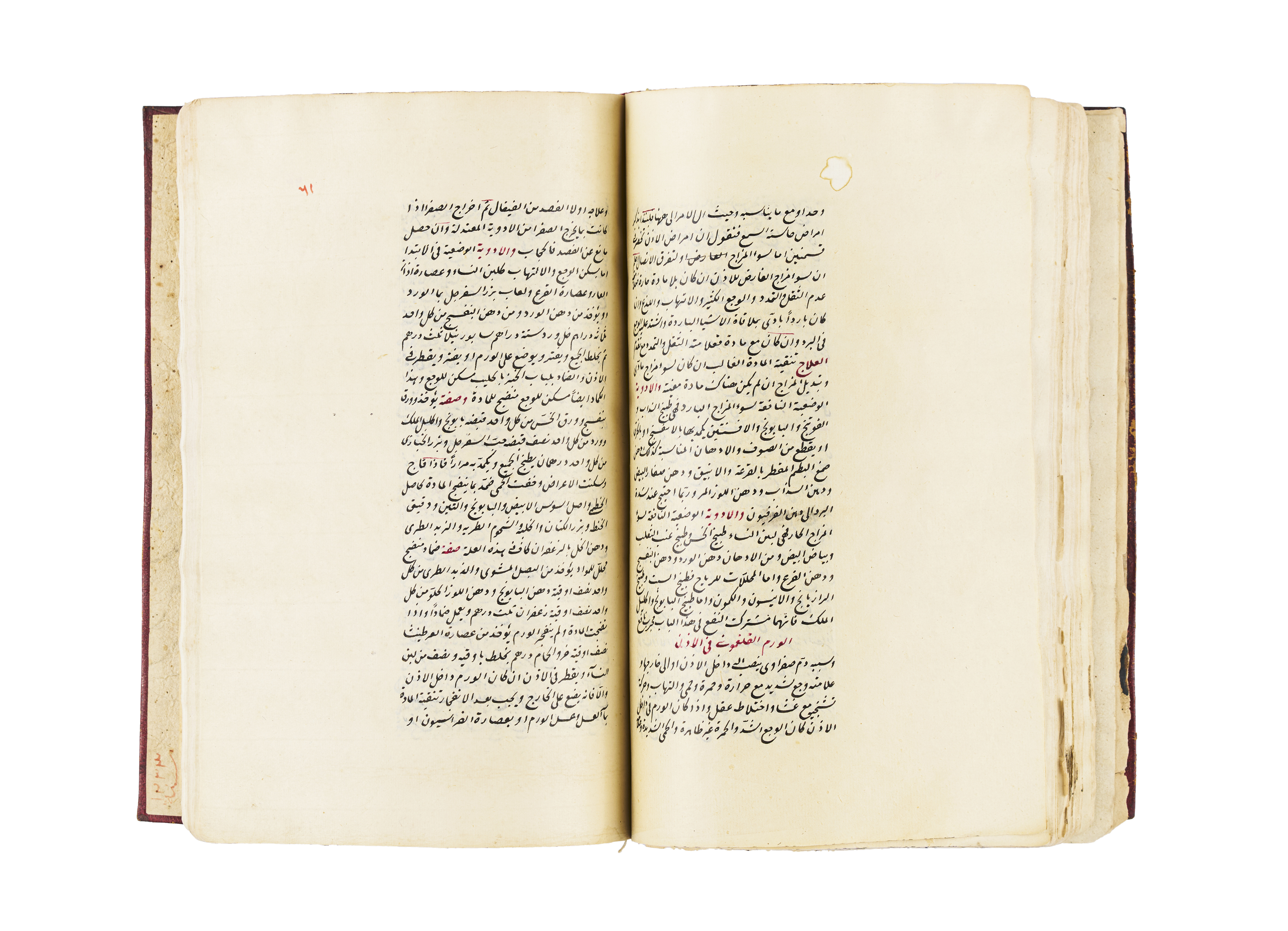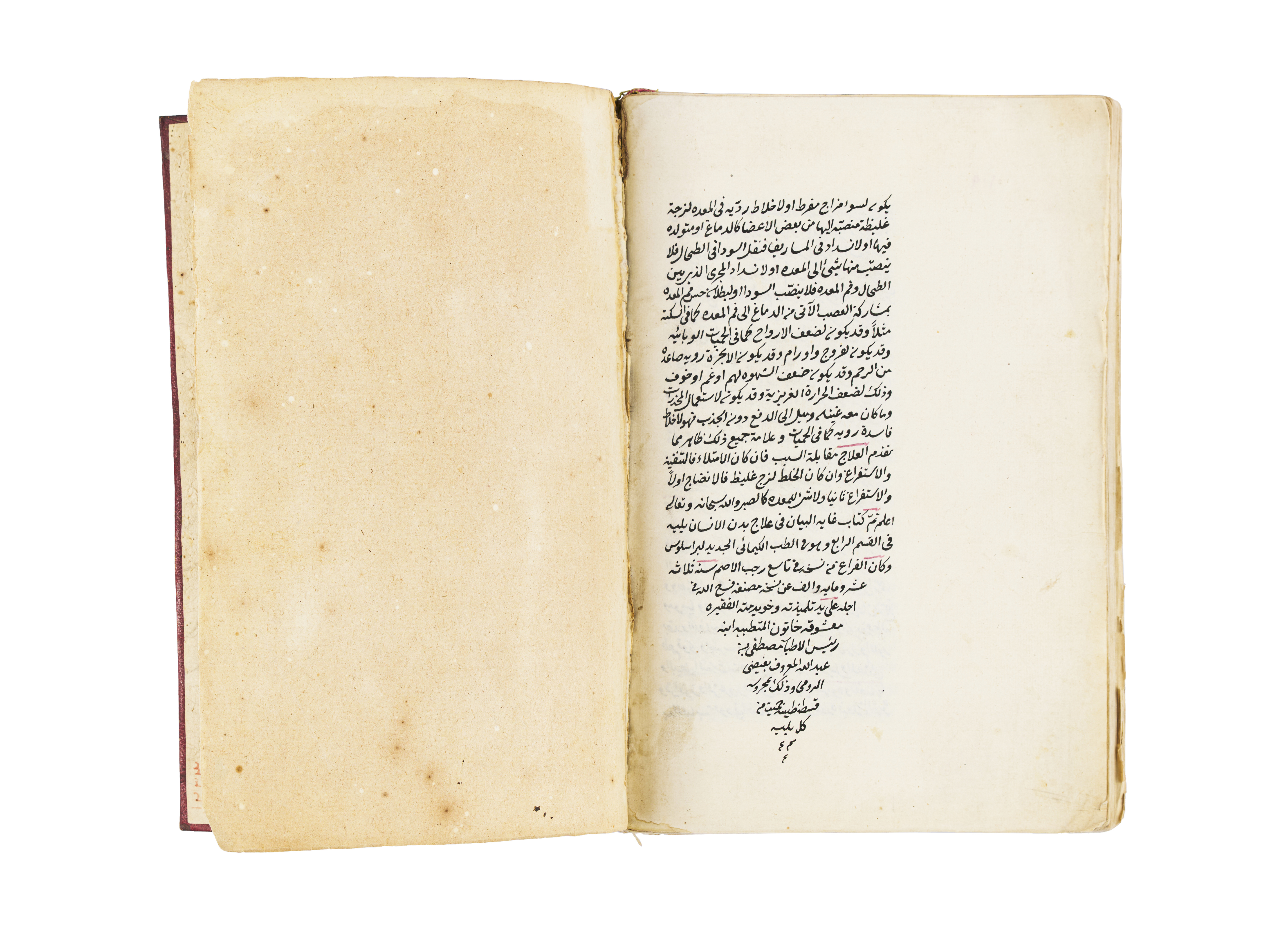 A rare 18th-century manuscript, Kitab Ghaiat Albaian Fe Elag Albadan, is a comprehensive medical text on curing and healing the human body. Authored by the son of the renowned medical chief Saleh Bin Nasser Aldin Alhalabi, this exceptional copy was transcribed in 1113 AH by Maashoqa Khatoon, the daughter of Medical Chief Mustafa Abdullah.