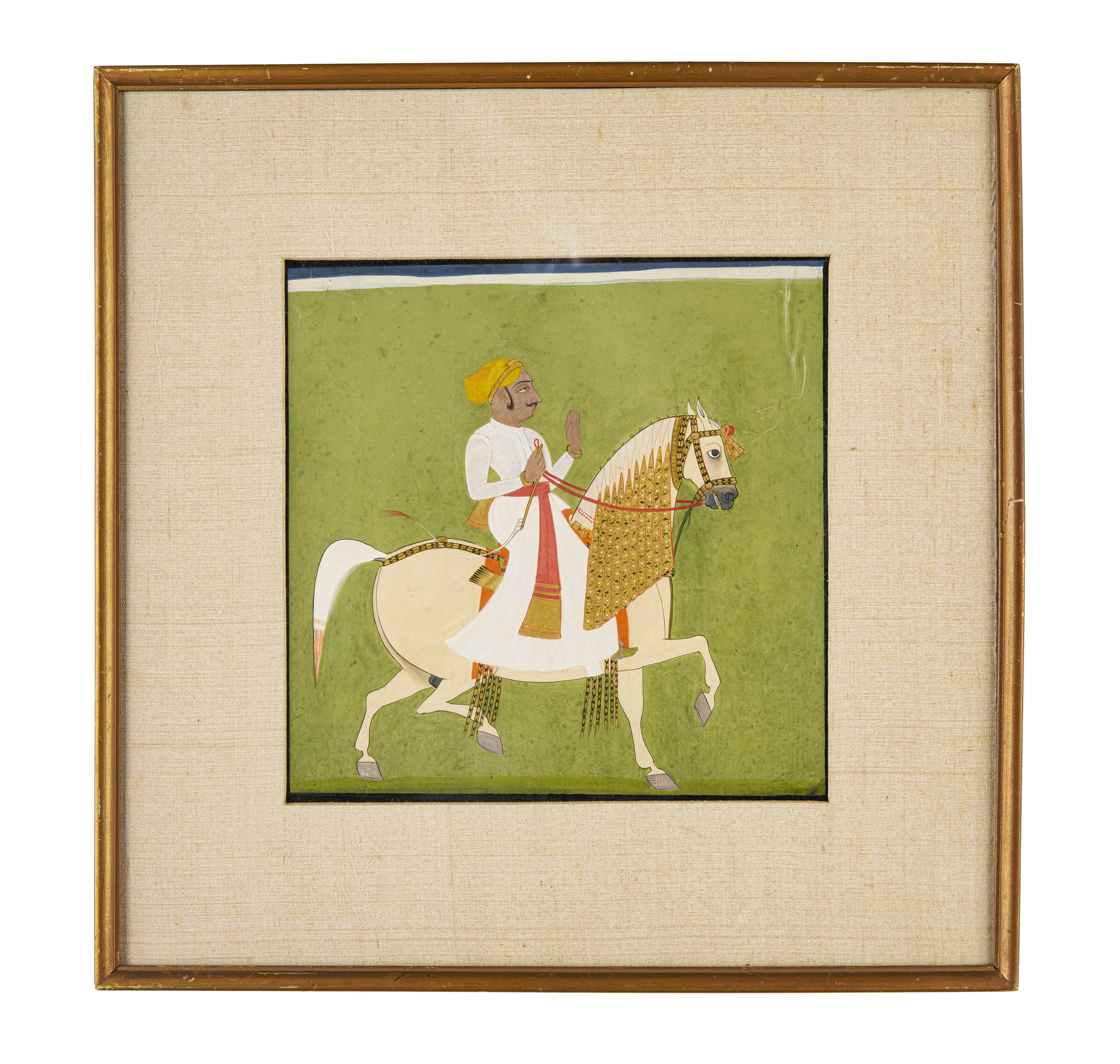 INDIAN MINIATURE PAINTING DEPICTING A MAN RIDING A HORSE , 19TH CENTURY