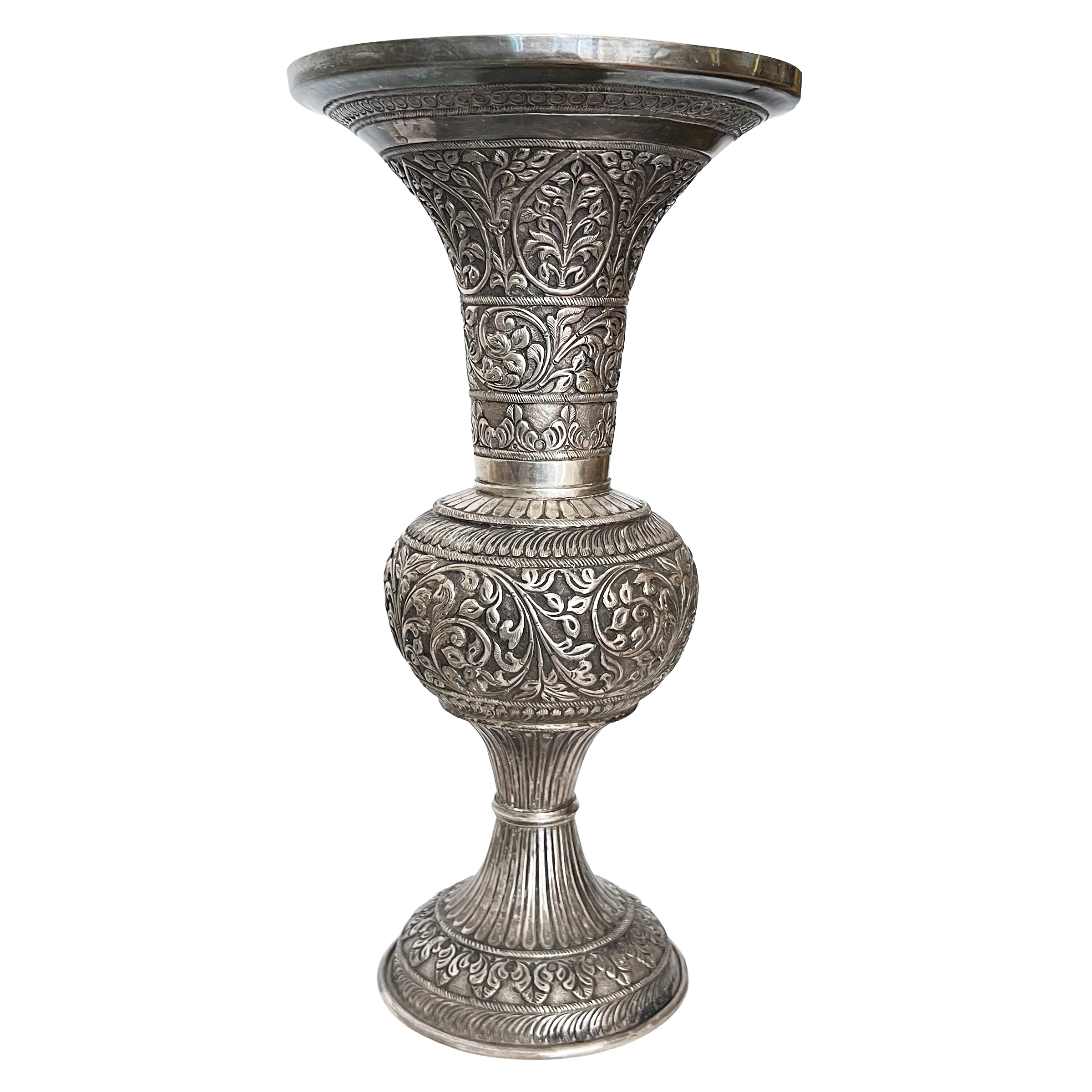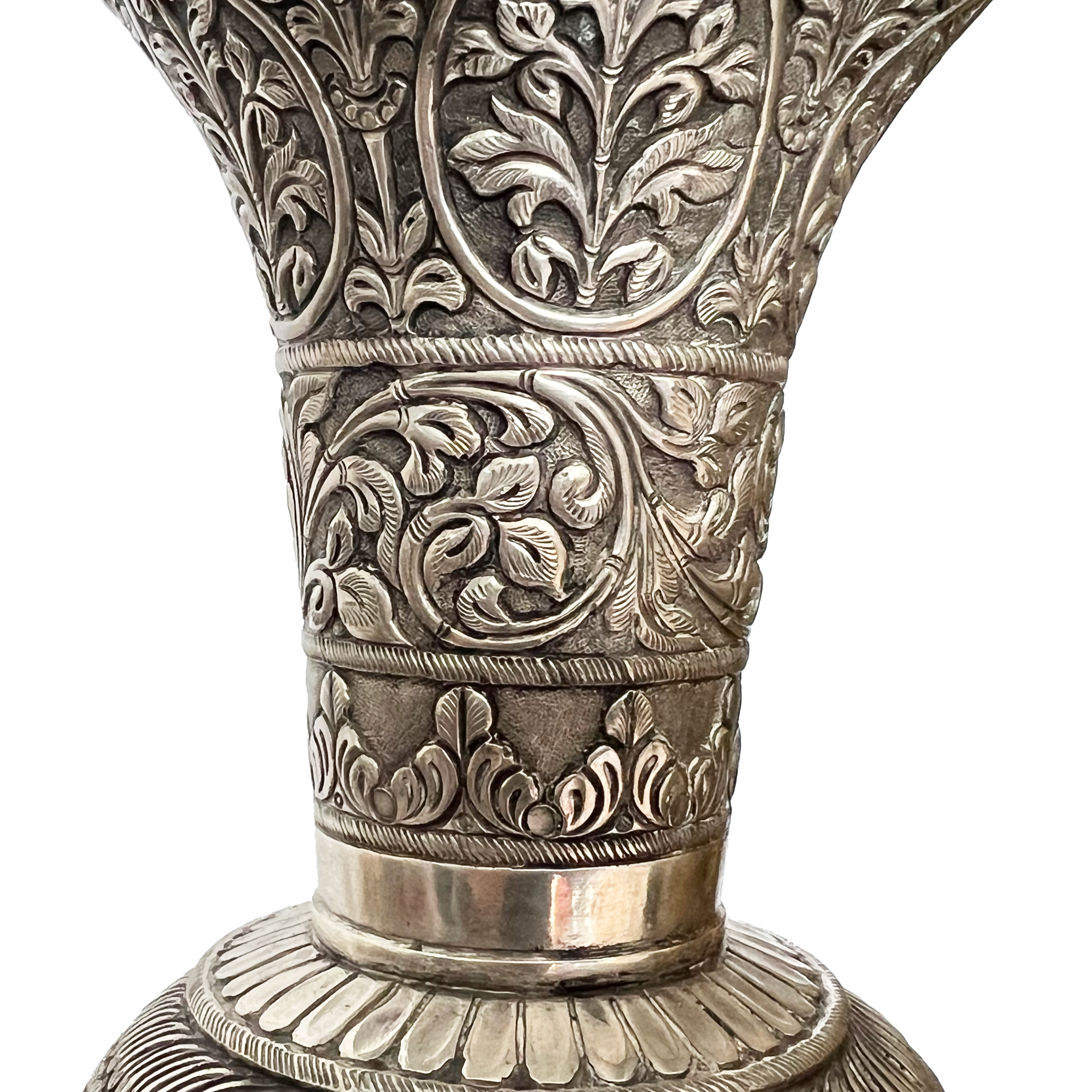A LARGE INDIAN SILVER VASE, KASHMIR, 20TH CENTURY