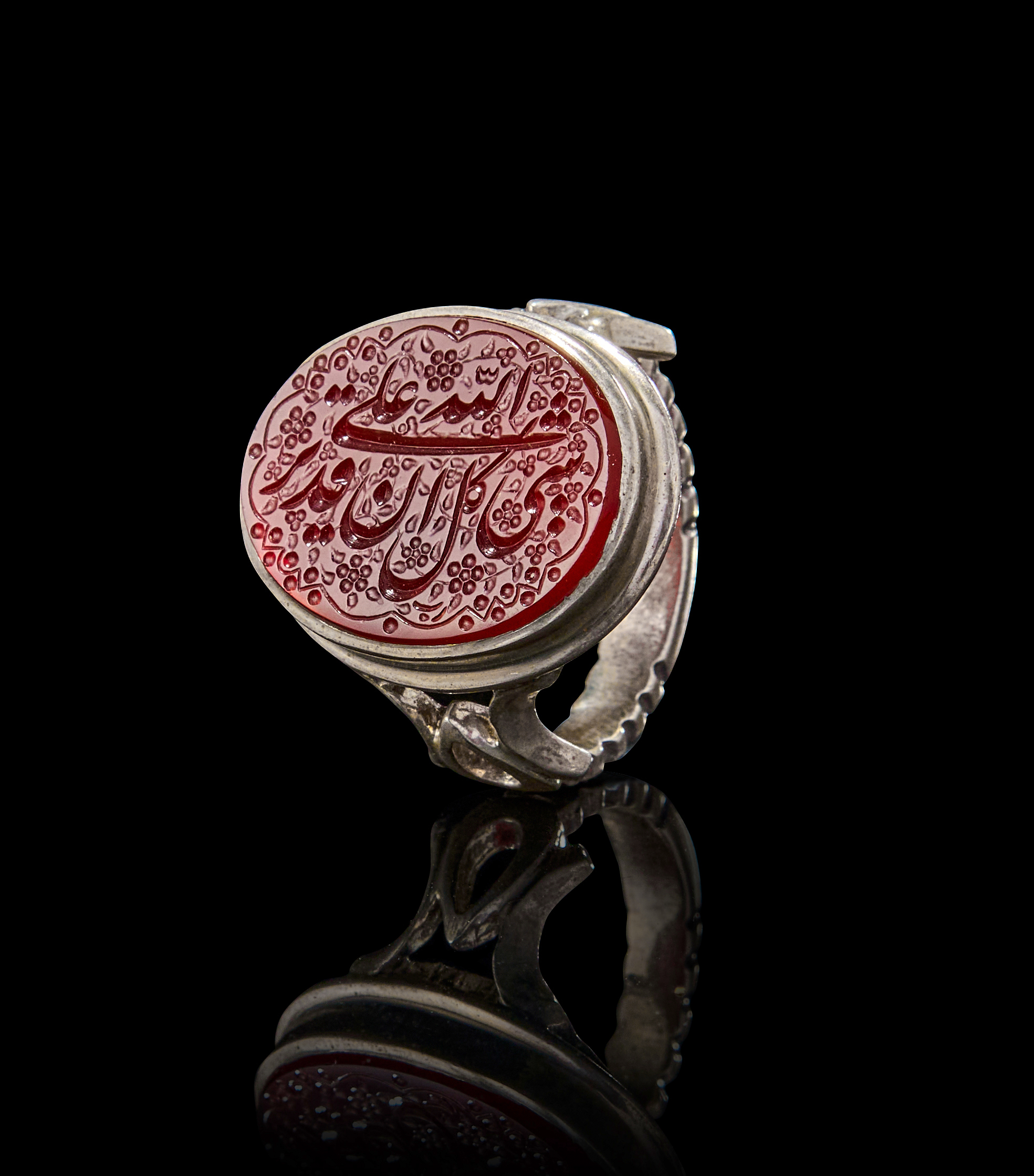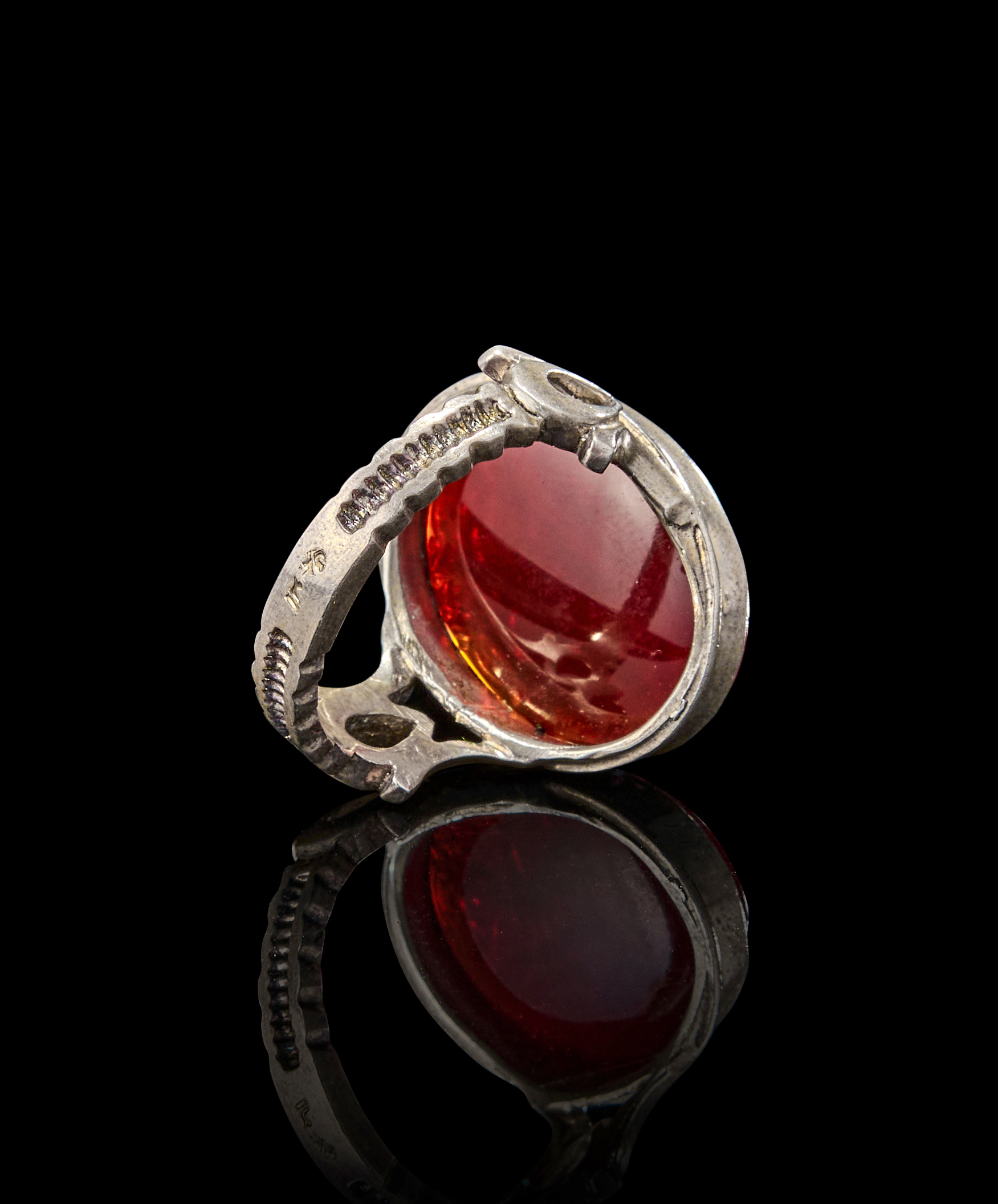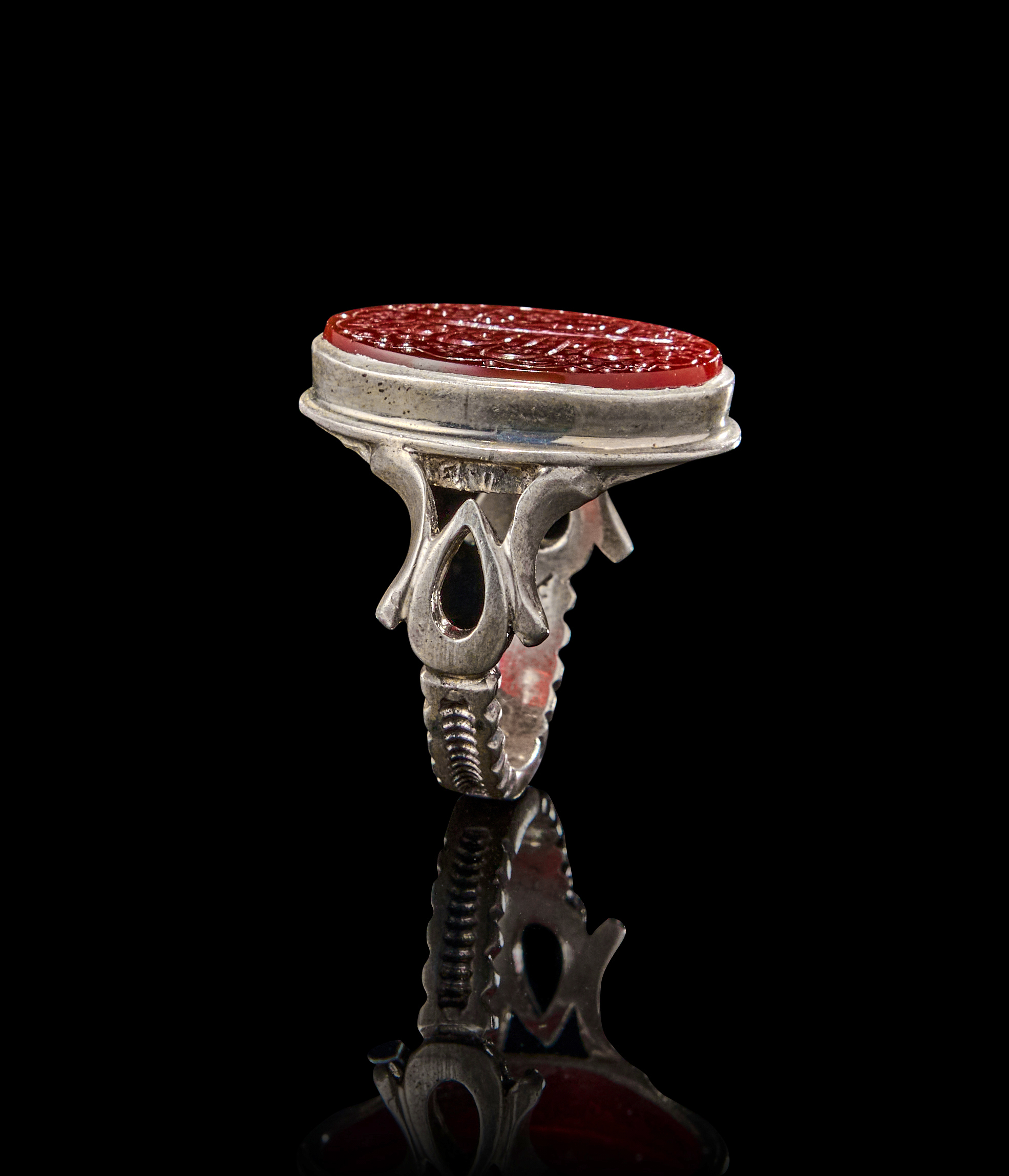 AN INSCRIBED ISLAMIC AGATE IN A SILVER RING