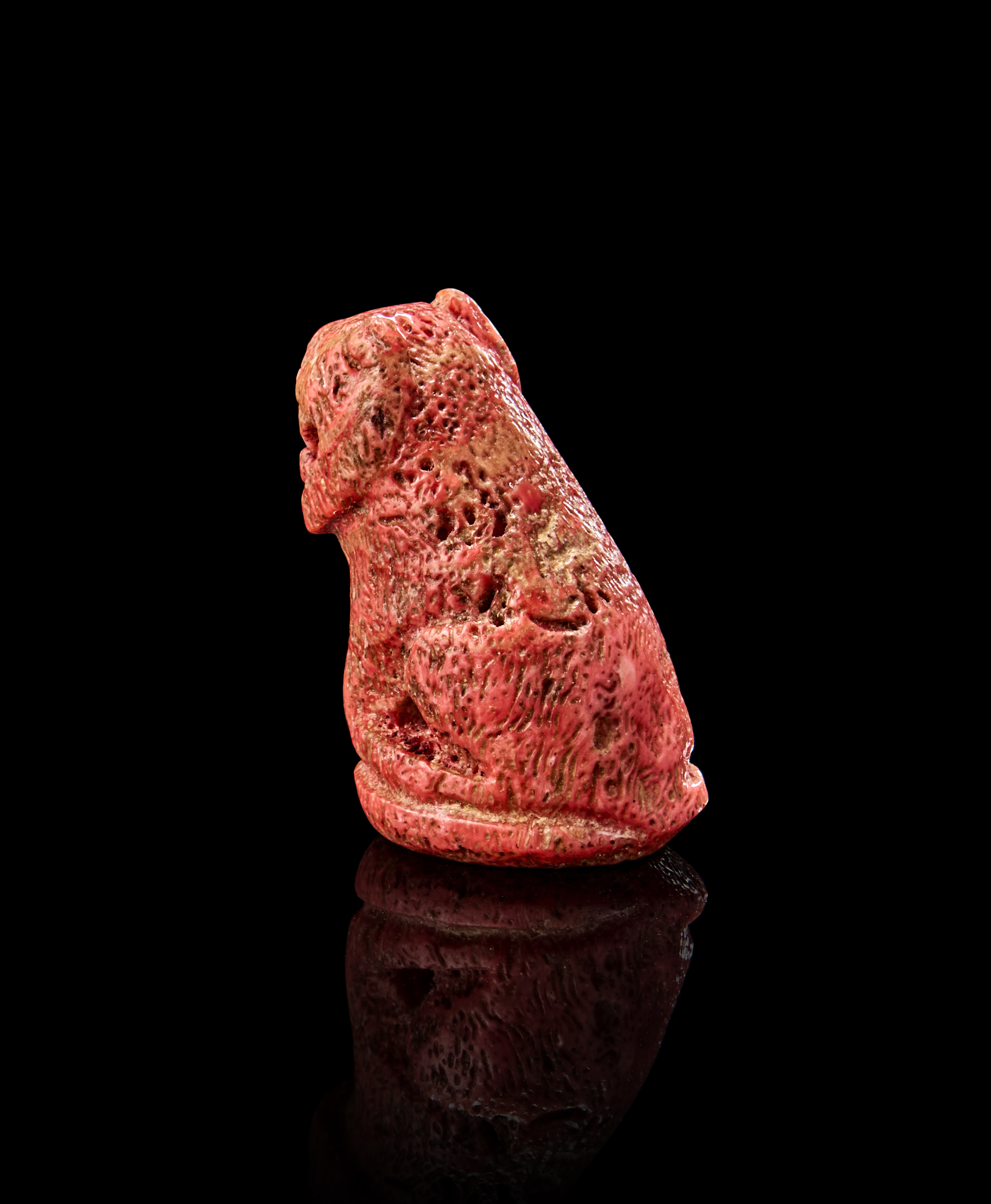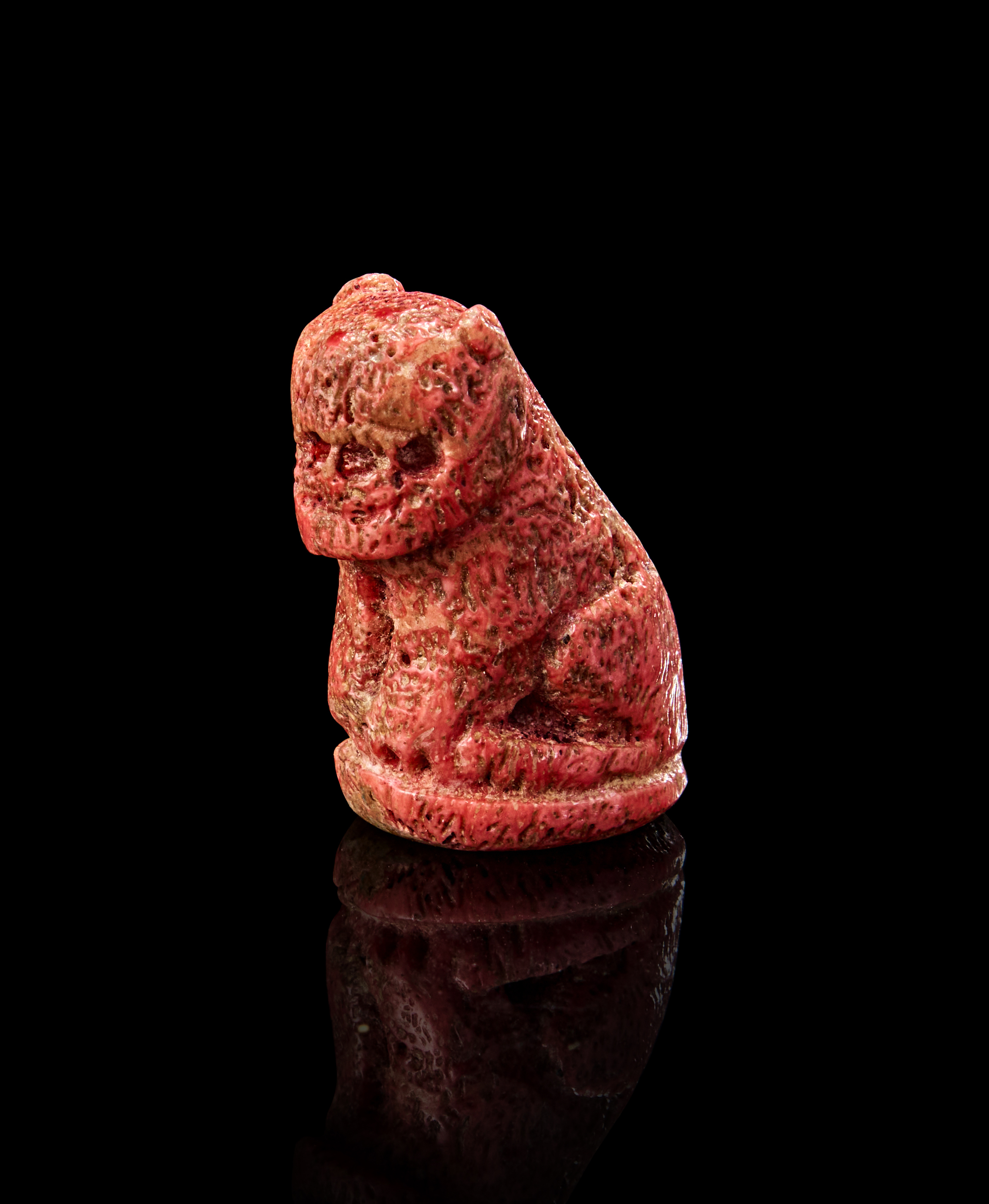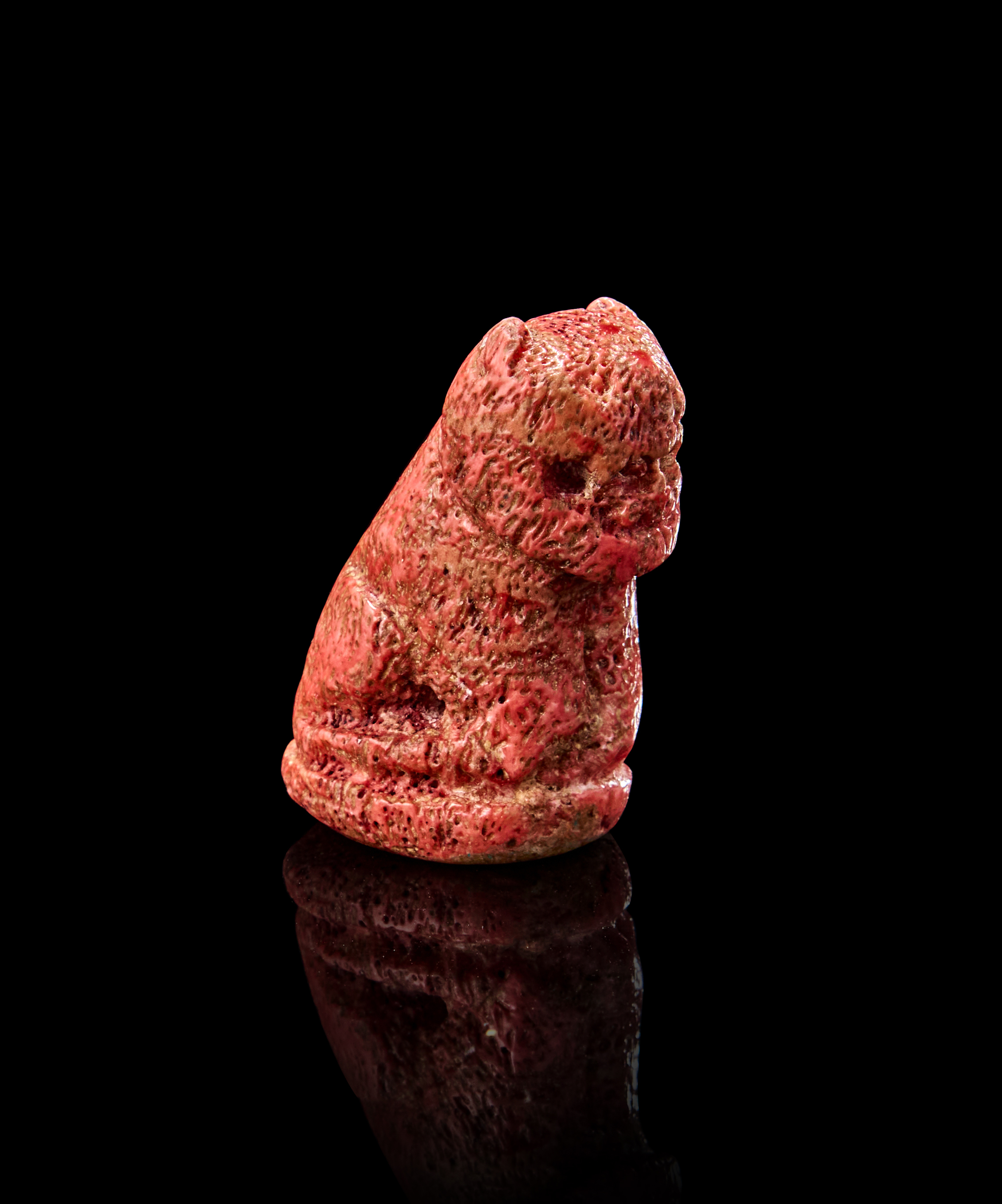 The figure is with defined features, a textured surface suggesting fur, and a prominent feline expression.