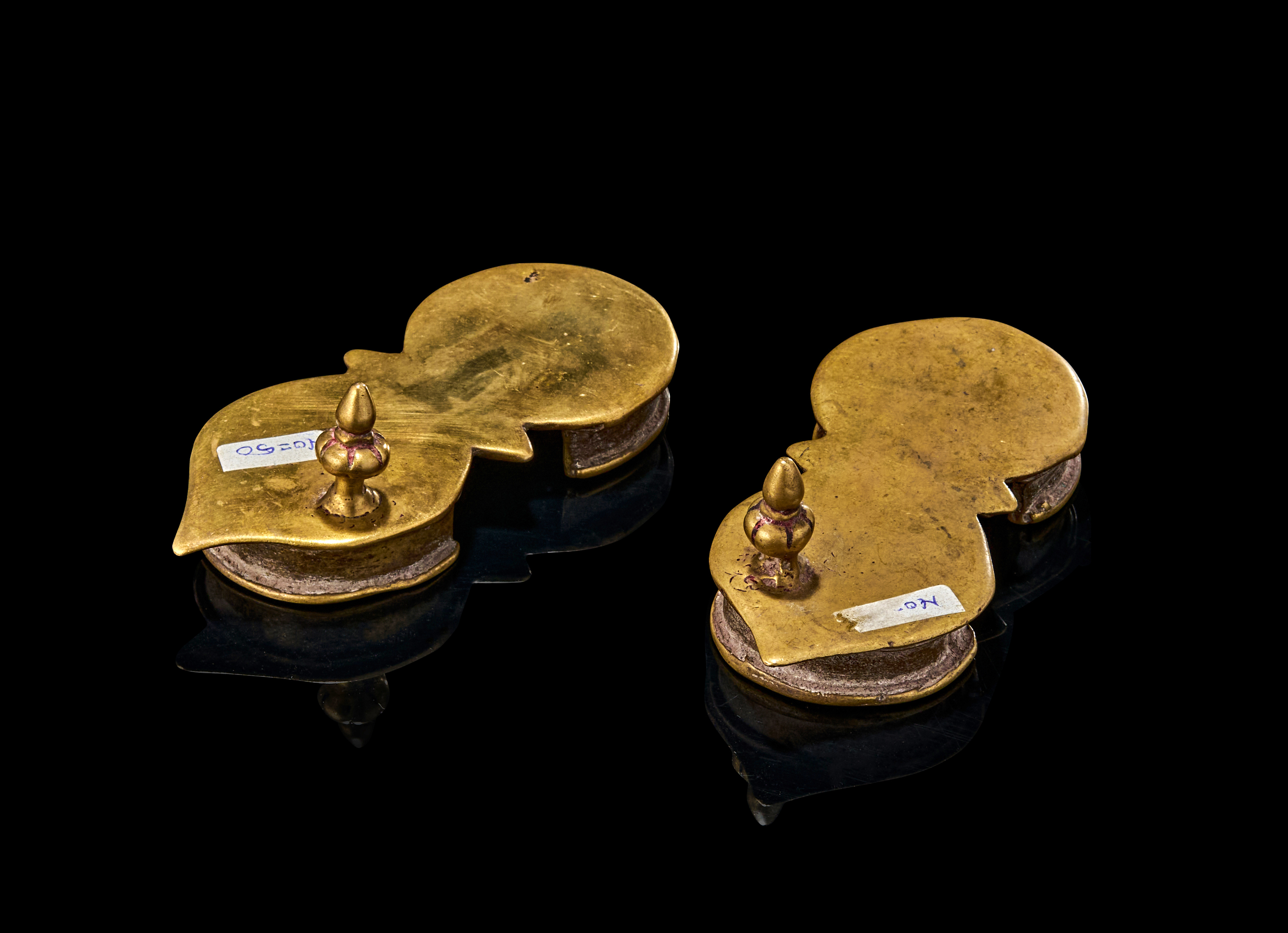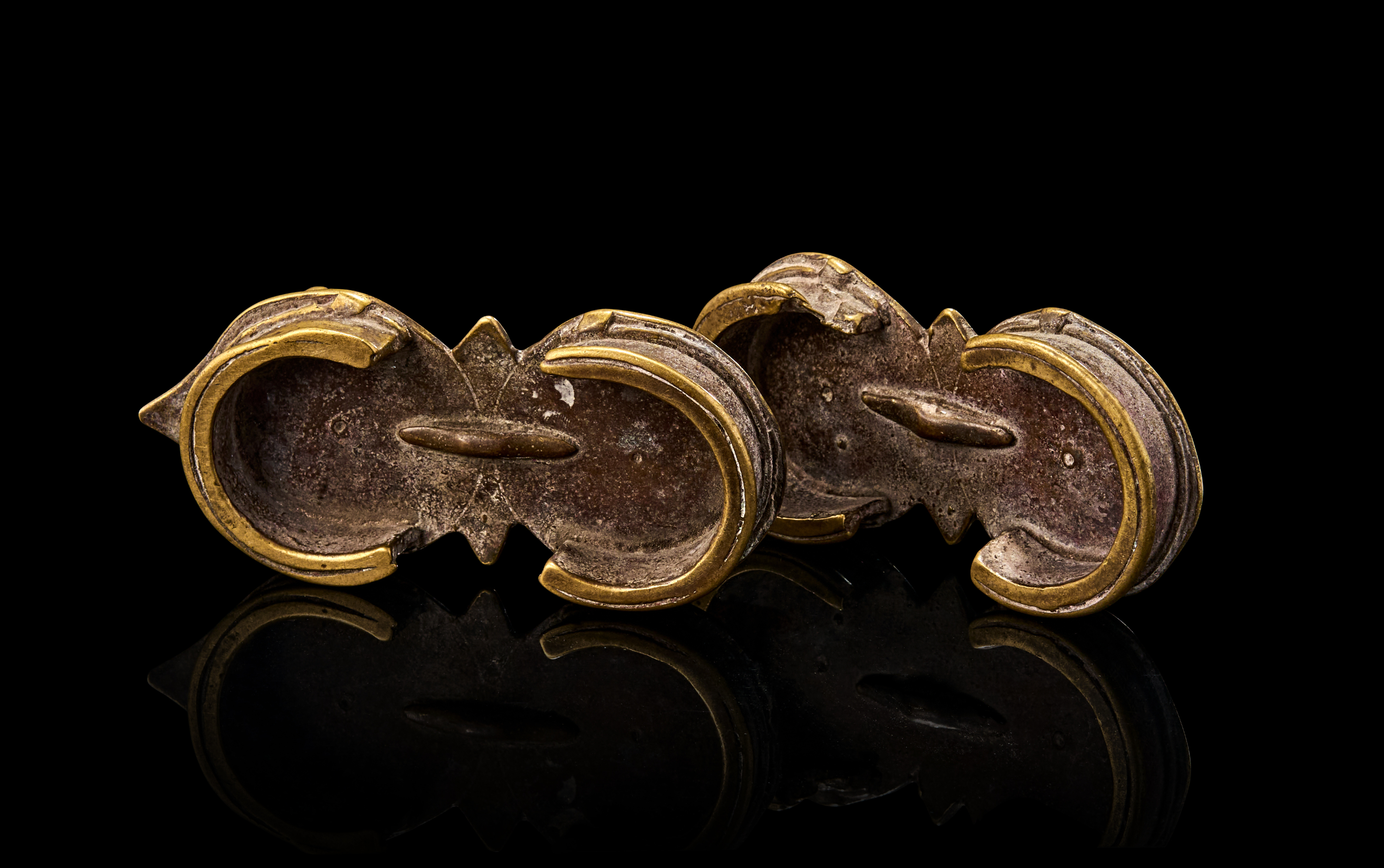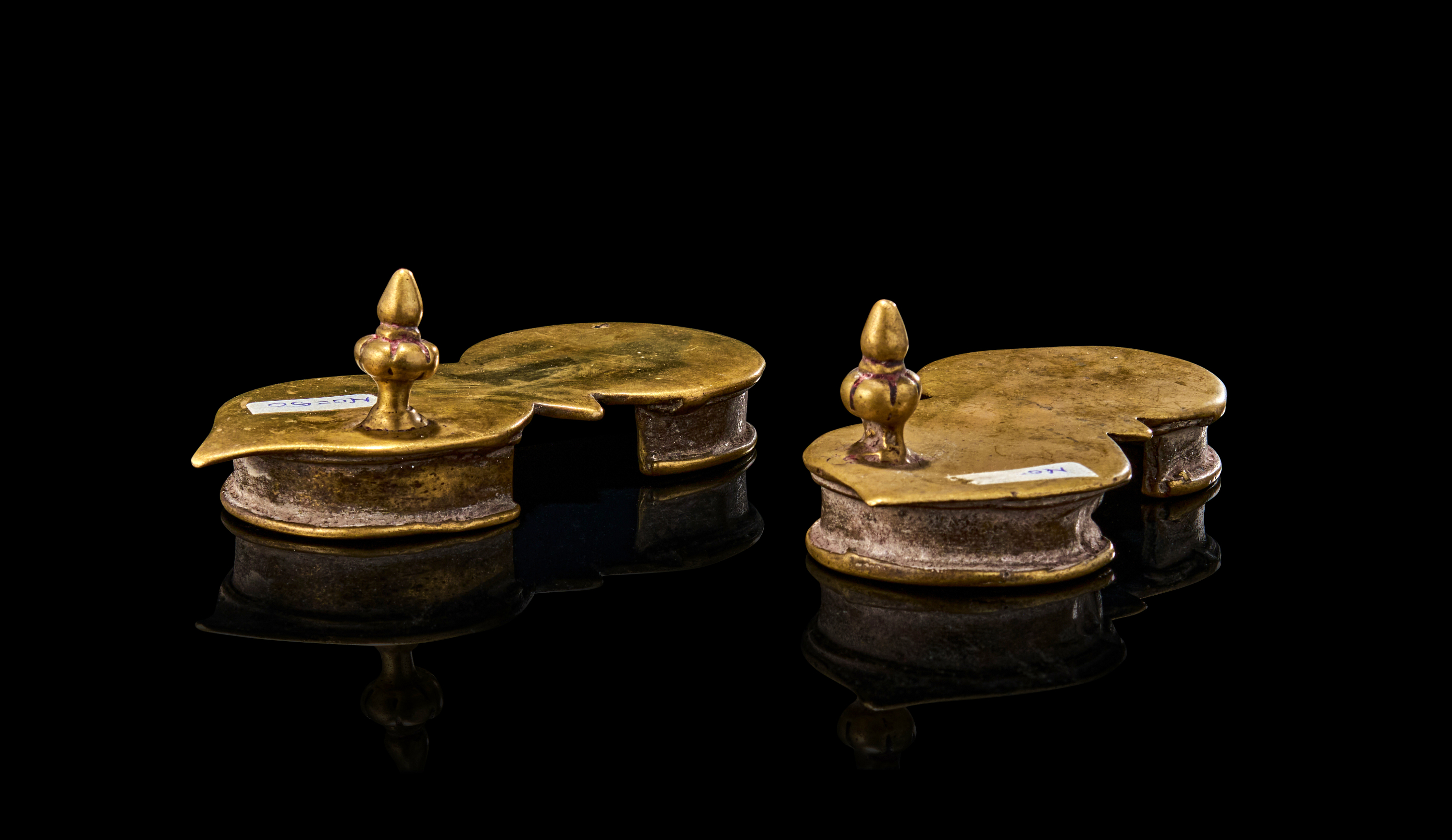 These paduka-style sandals feature a twin-lobed footplate with pointed front and a raised toe knob for grip, the underside reveals cast ridges for support.
