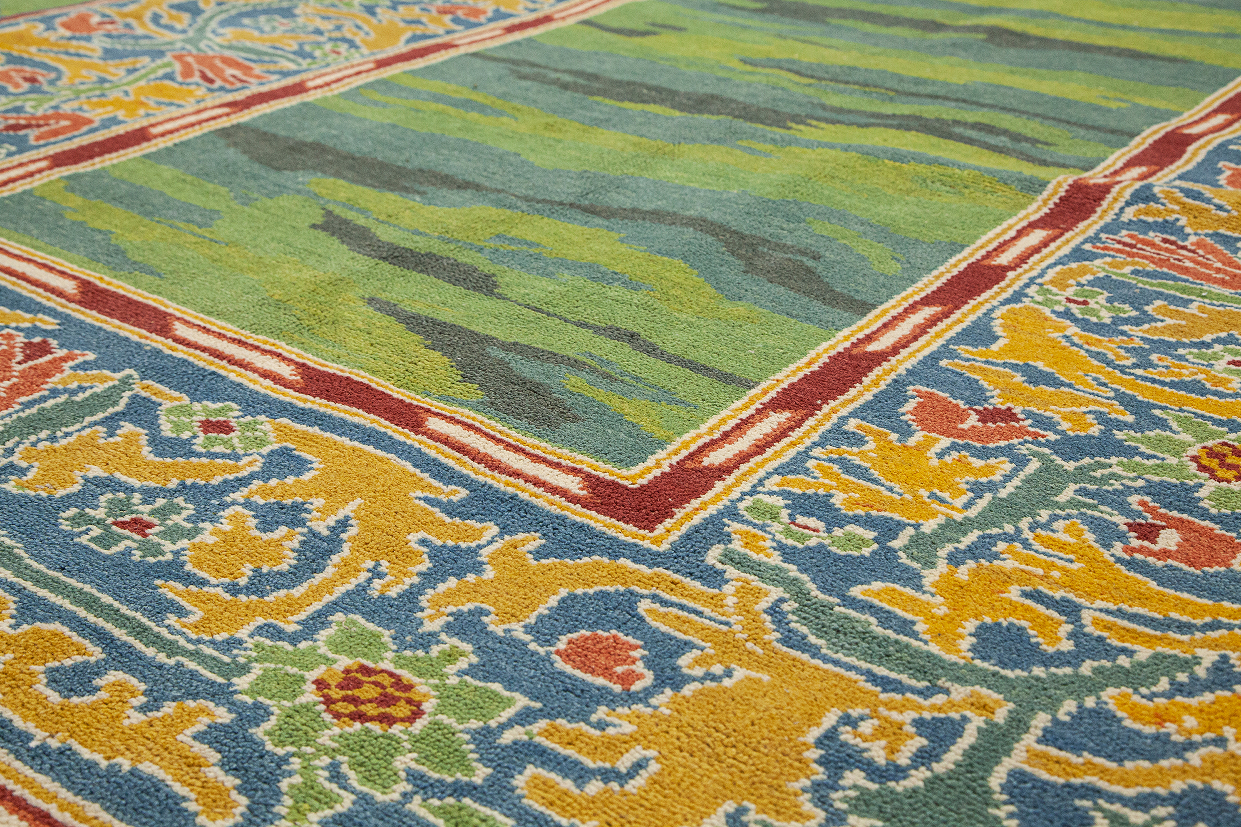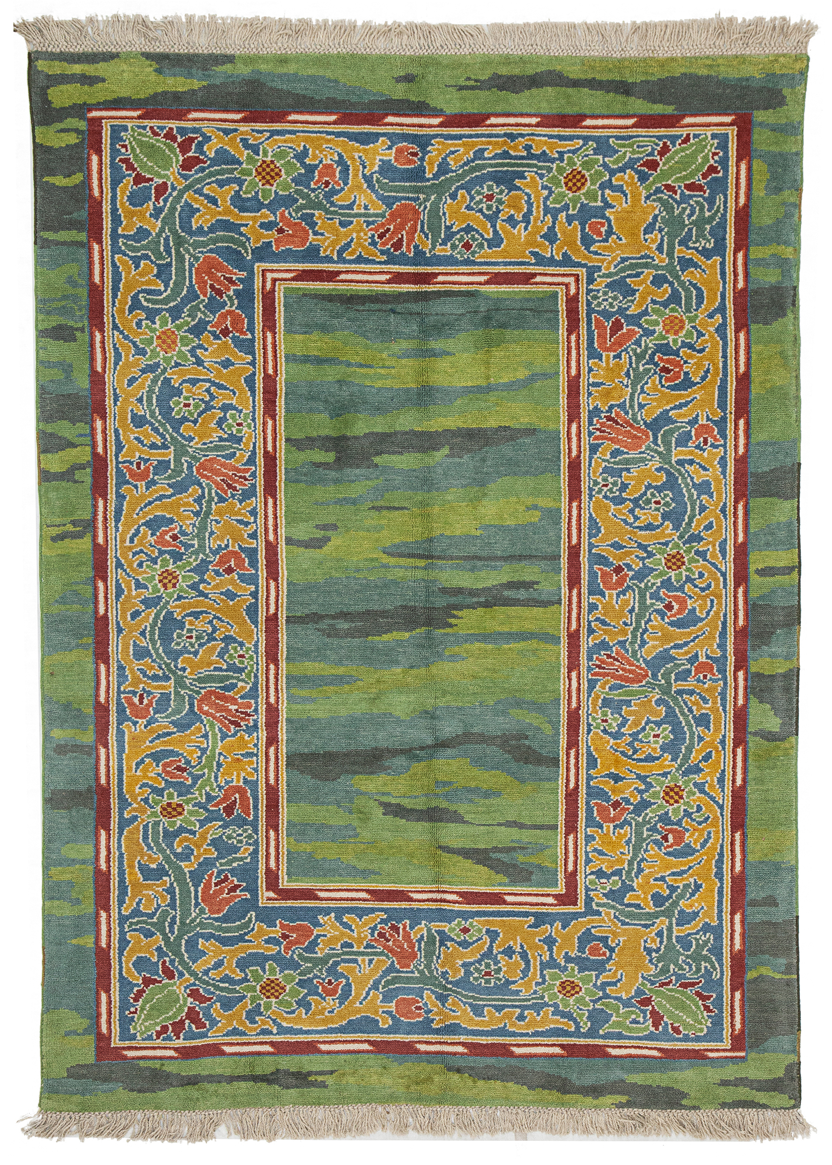 A GREEN WILLIAM MORRIS STYLE WOOL RUG 242 X 175 CM
