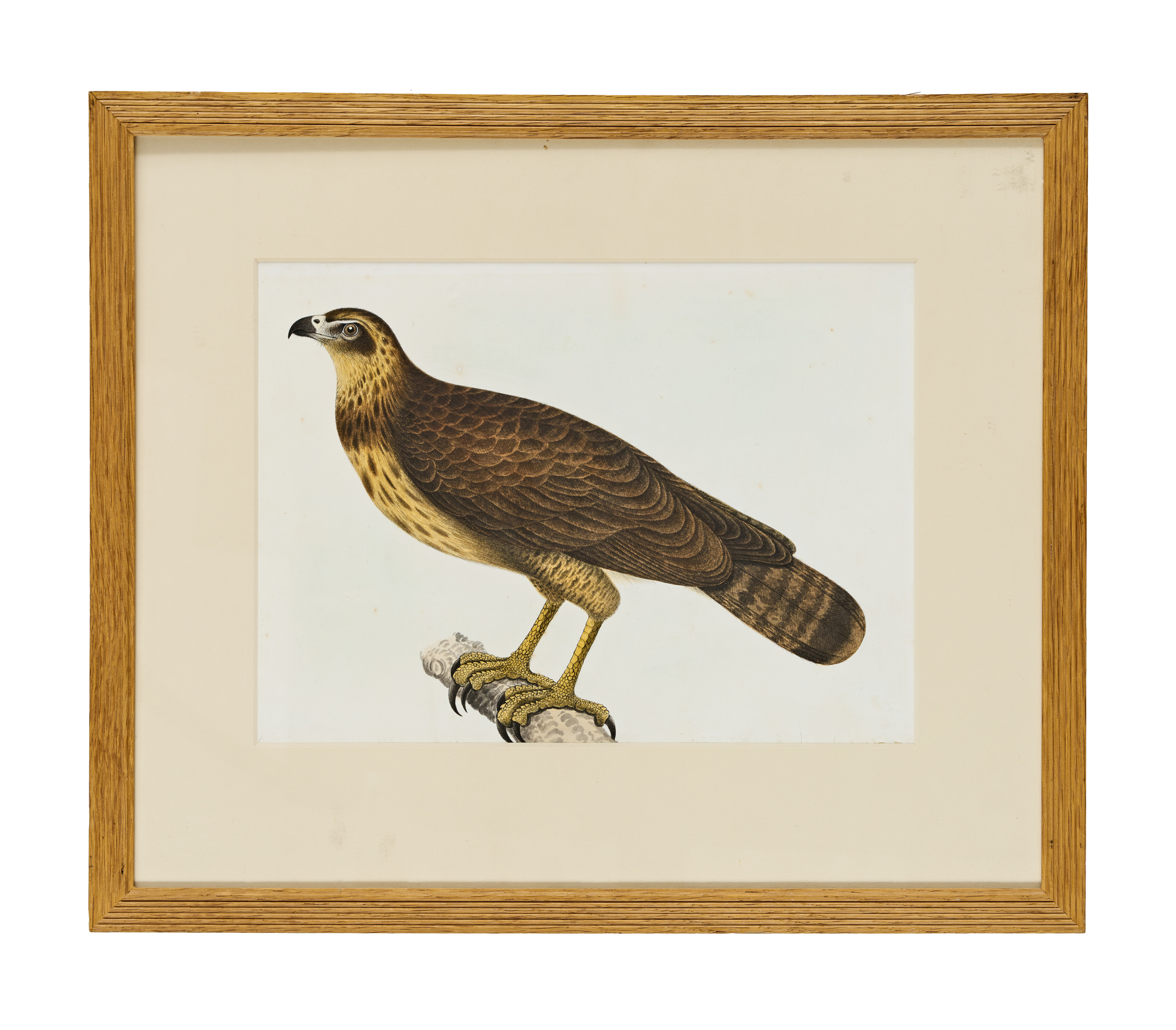The painting is framed in a simple wooden frame with a cream-coloured mount, giving it a clean, classical presentation. The background is left plain white, a hallmark of Company School paintings, which were often created for scientific or educational purposes during British colonial rule in India in the early 19th century.