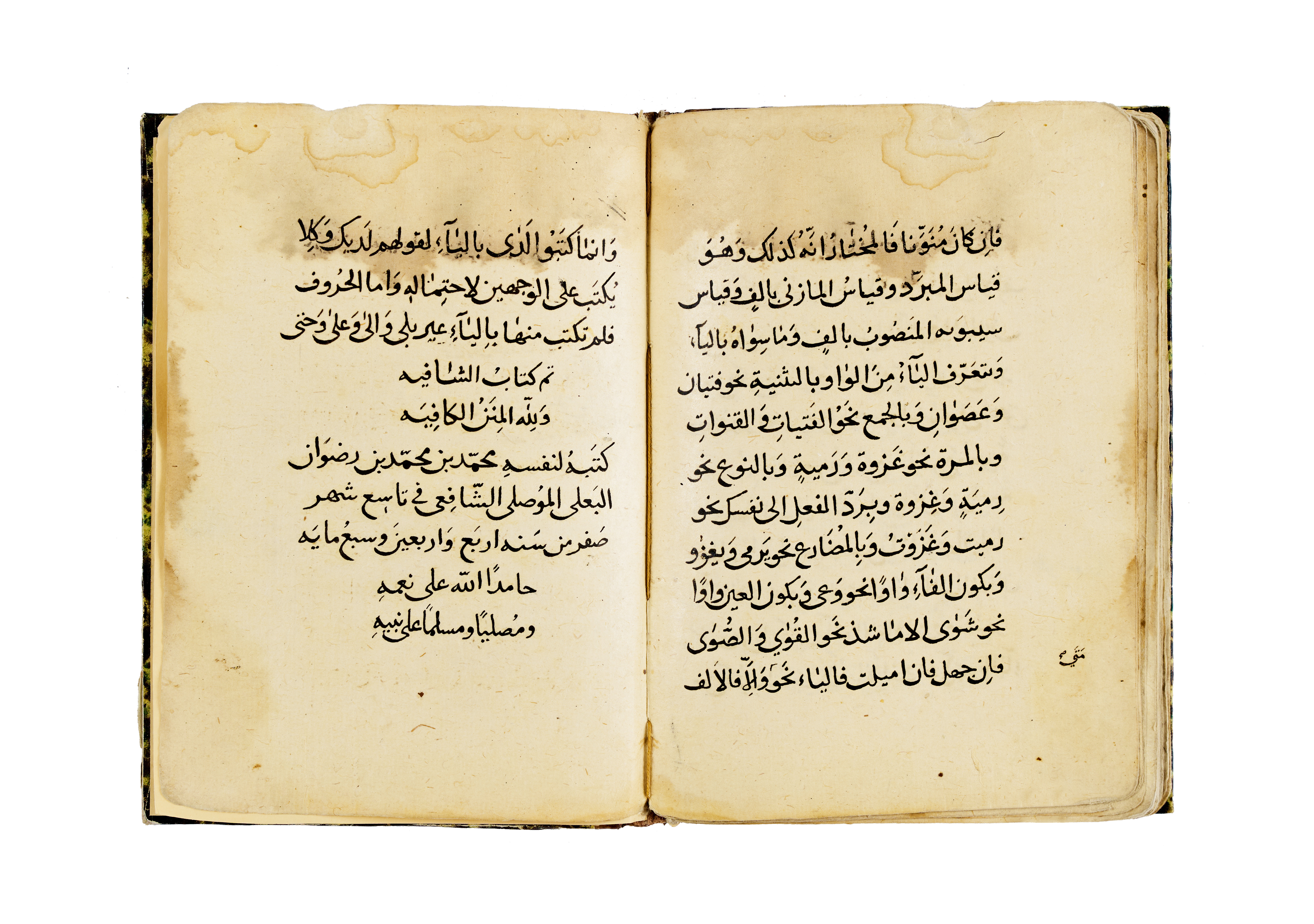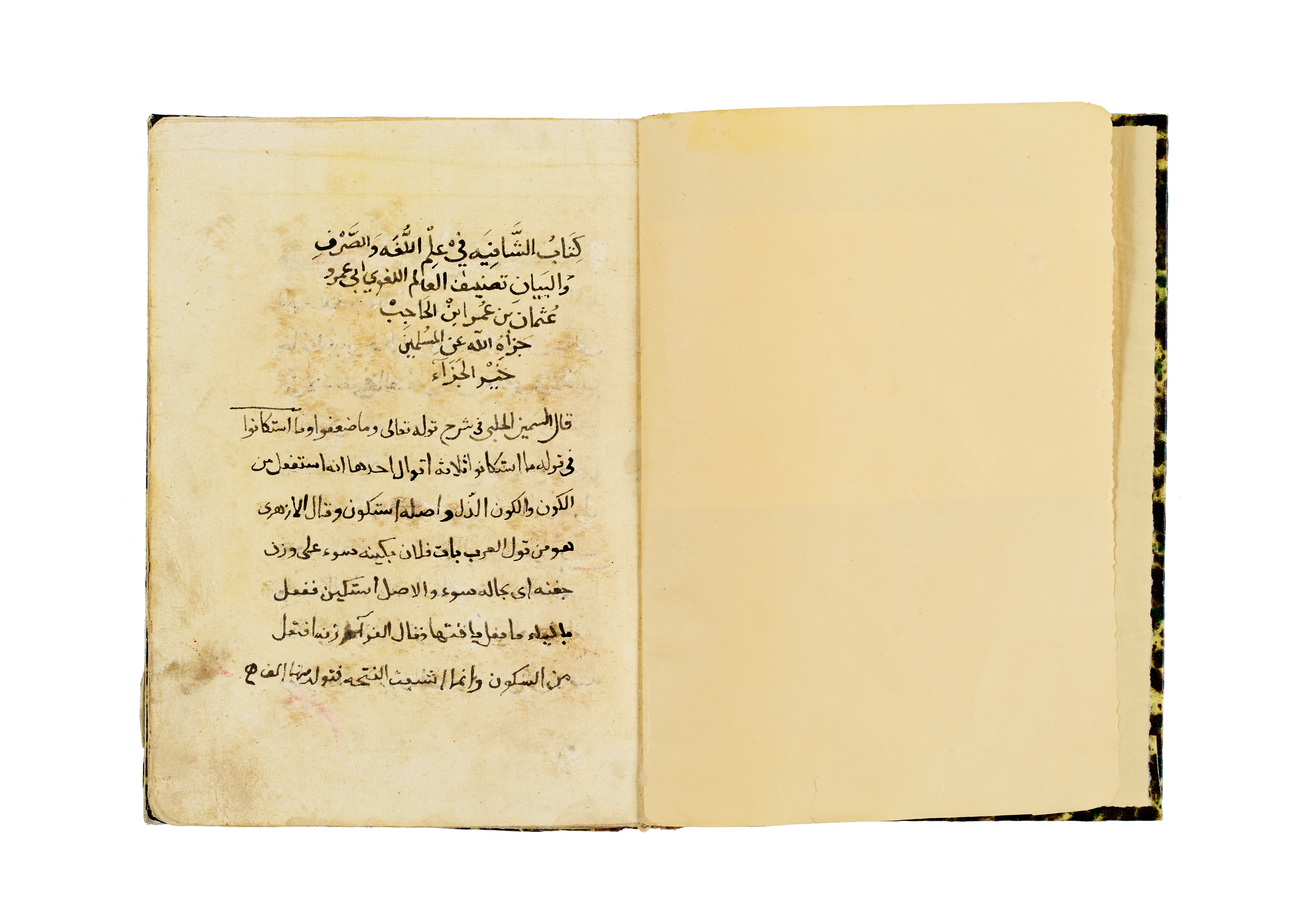 A copy of Al-Shafia, the seminal grammatical treatise by the great linguist Abu ‘Amr ‘Uthman bin ‘Umar al-Hajib, composed in the 7th century Hijri and widely regarded as one of the foundational texts in Arabic linguistic theory.