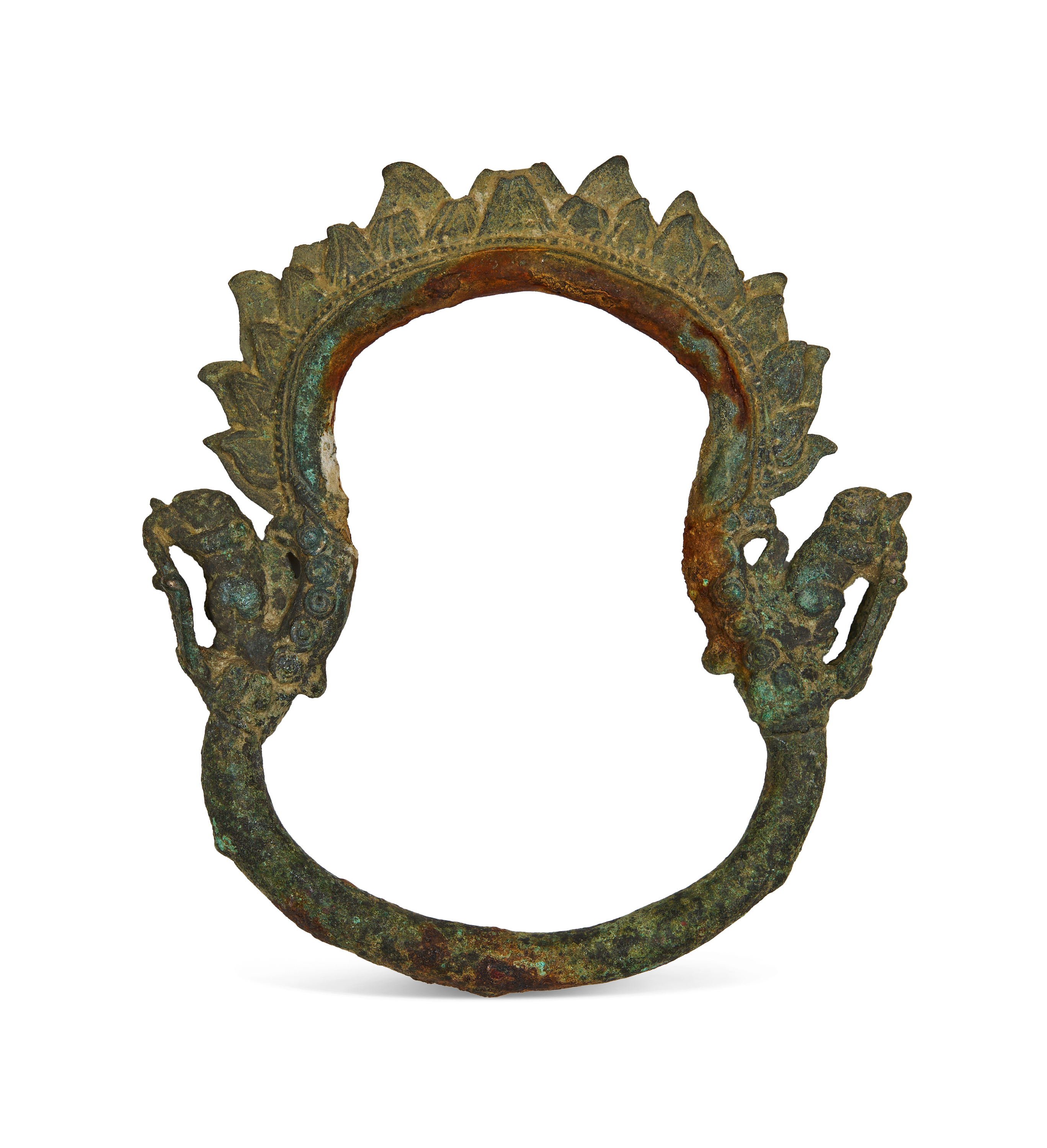 ANCIENT CAMBODIAN KHMER BRONZE SADDLE RING WITH ANIMAL MOTIFS