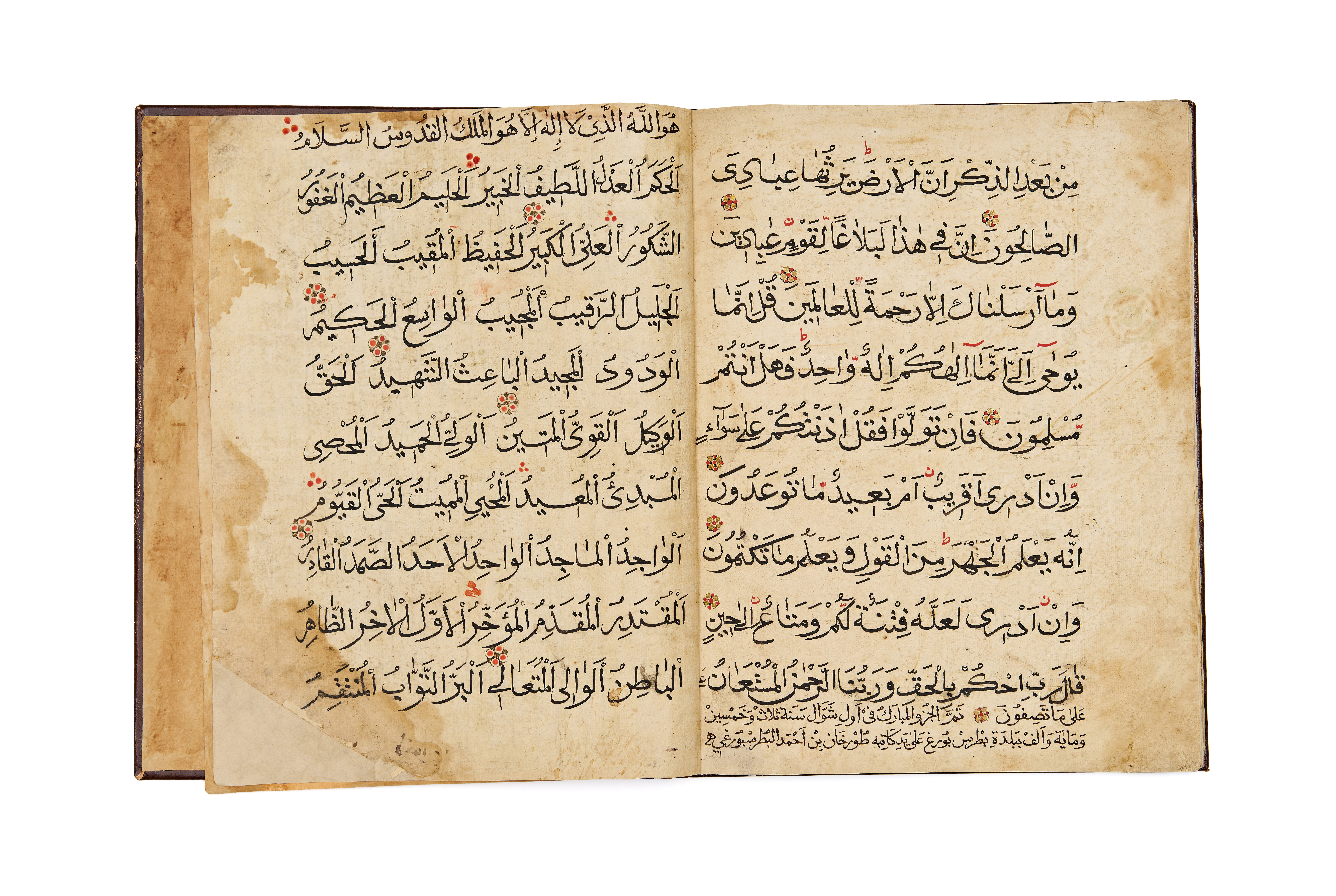 A LARGE RUSSIAN QURAN JUZ SIGNED TORKHAN BIN AHMAD ALPUTROSBURGI AND DATED 1153 HIJRI, WAS WRITEN IN SAINT PETERSBURG