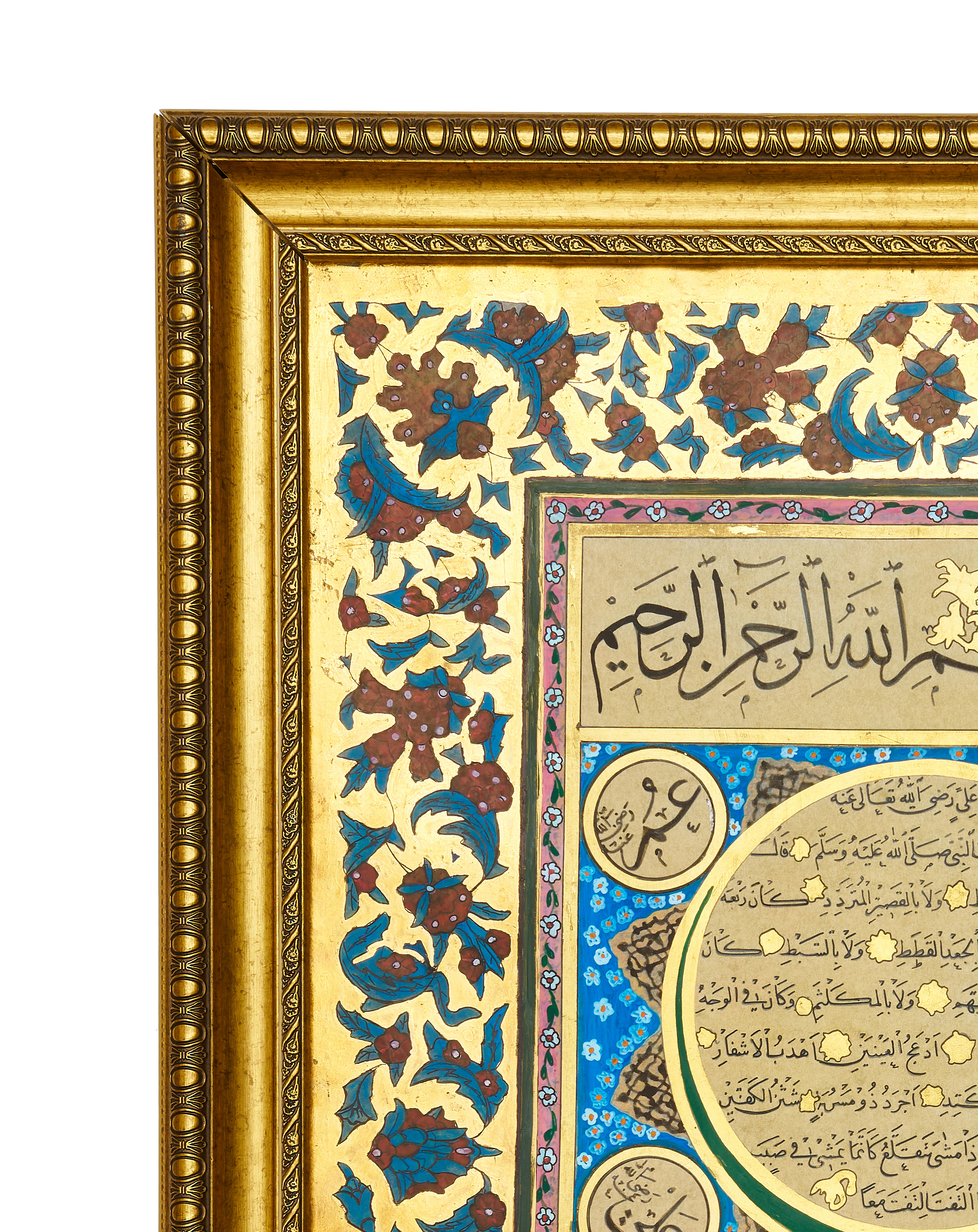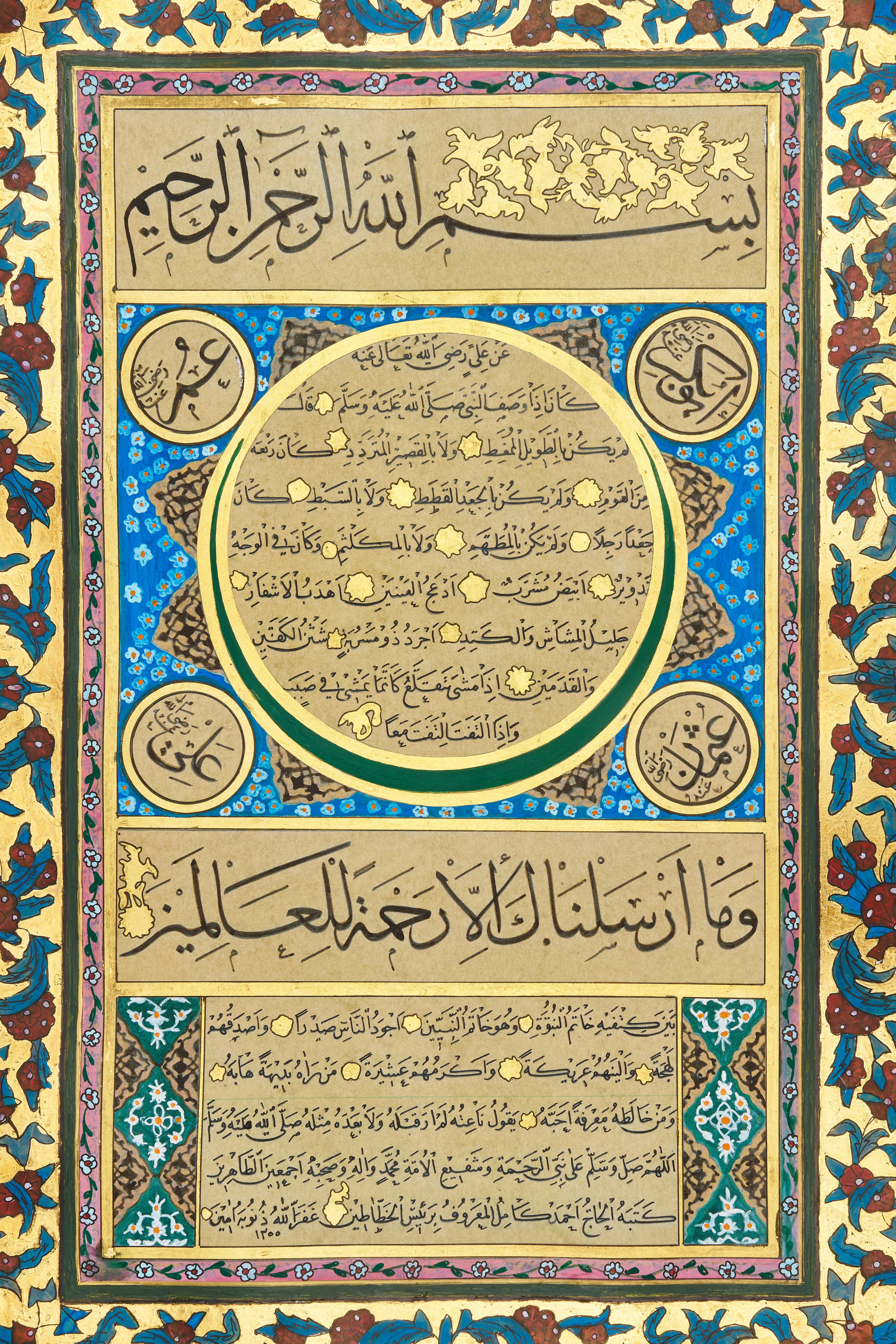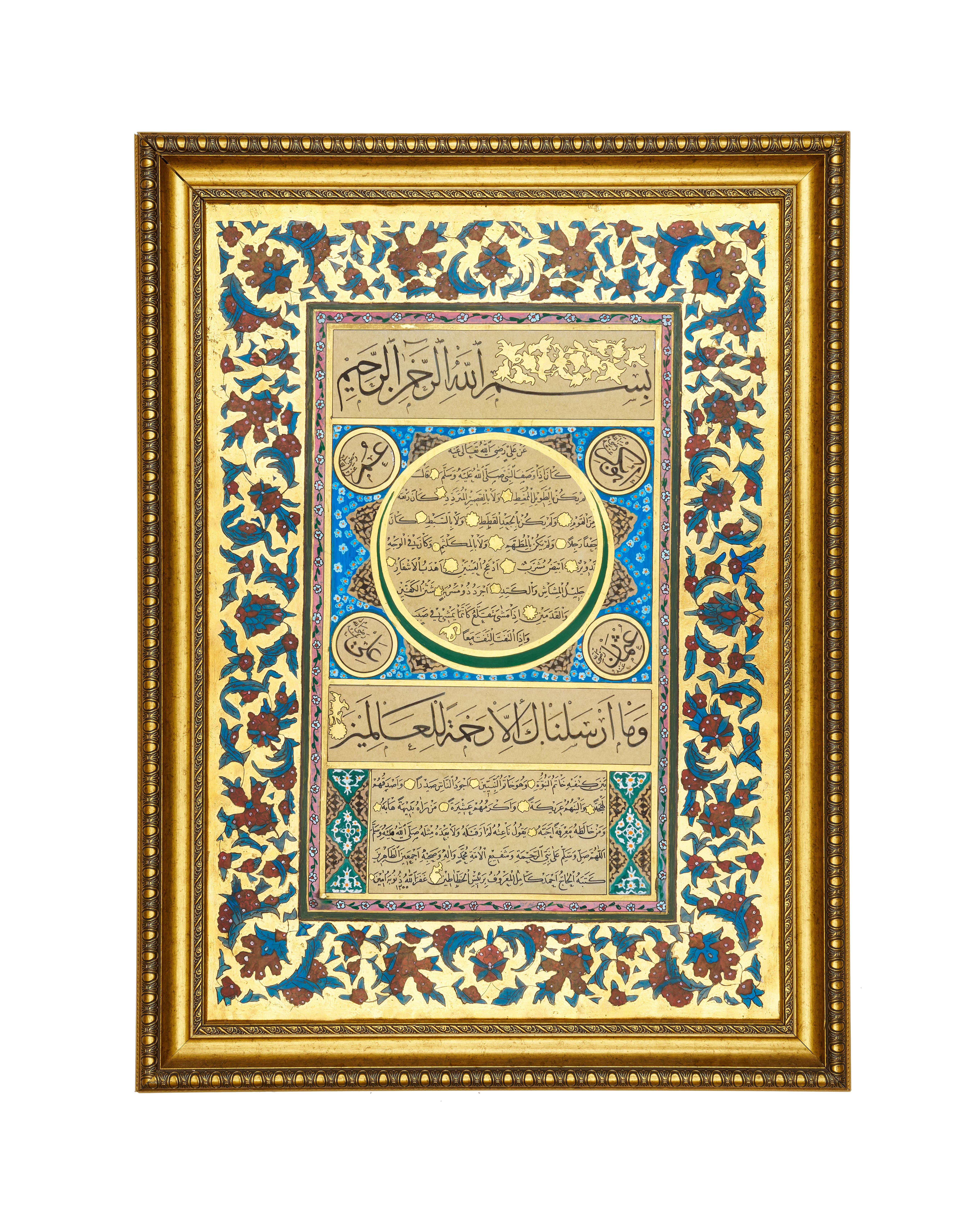 HILYA TALISMANIC QURANIC CALLIGRAPHY PANEL, SIGNED AHMAD KAMAL AND DATED