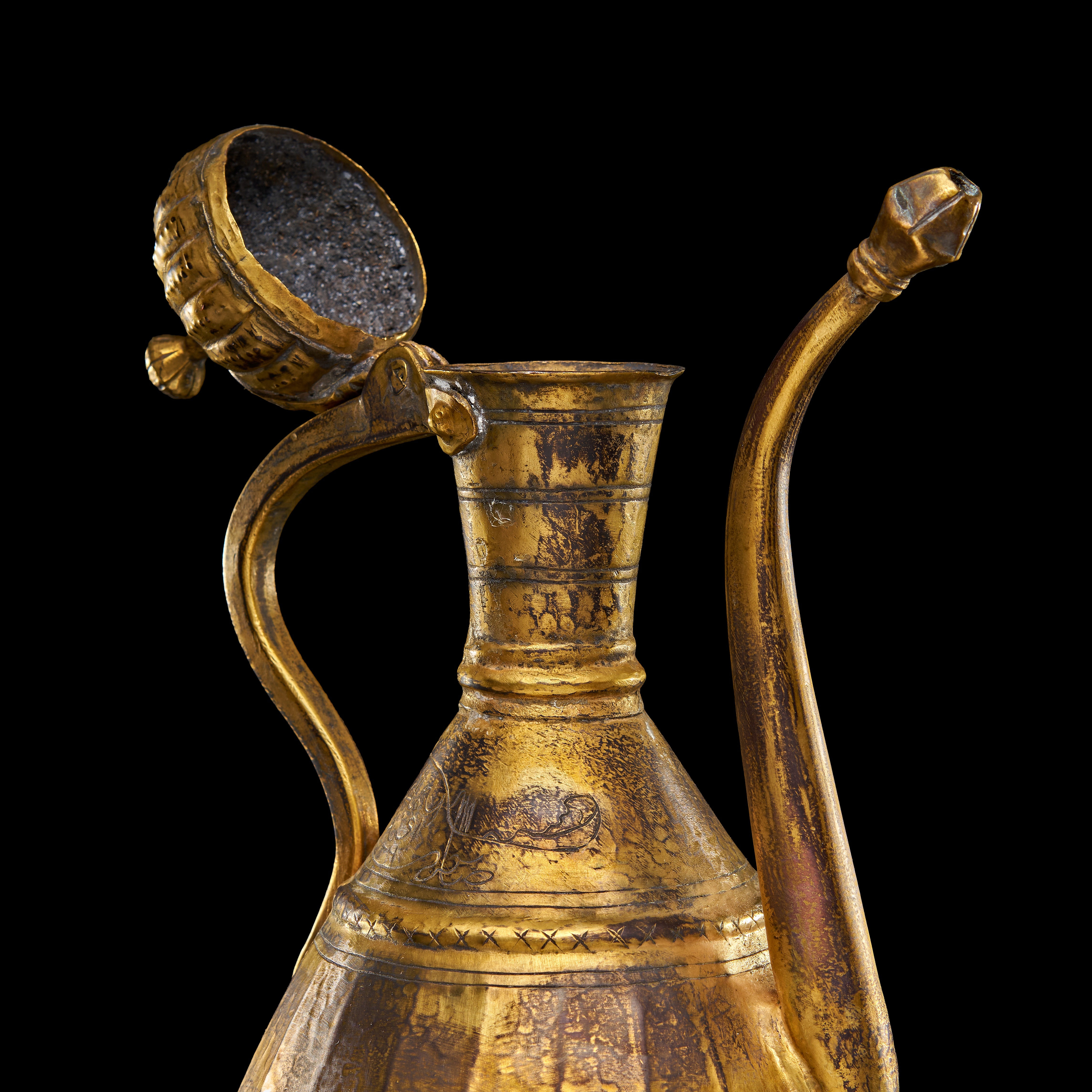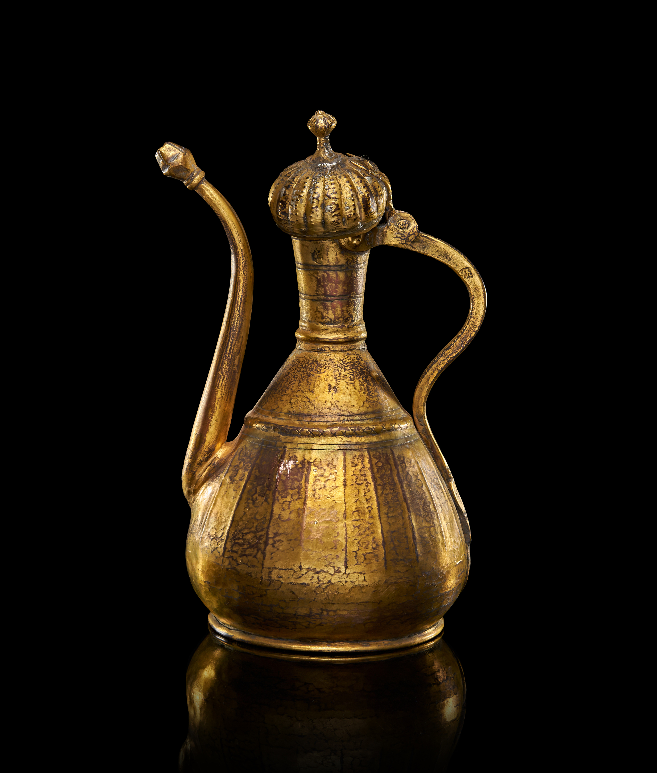 AN OTTOMAN GILT COPPER (TOMBAK) LIDDED EWER, TURKEY, 17TH CENTURY