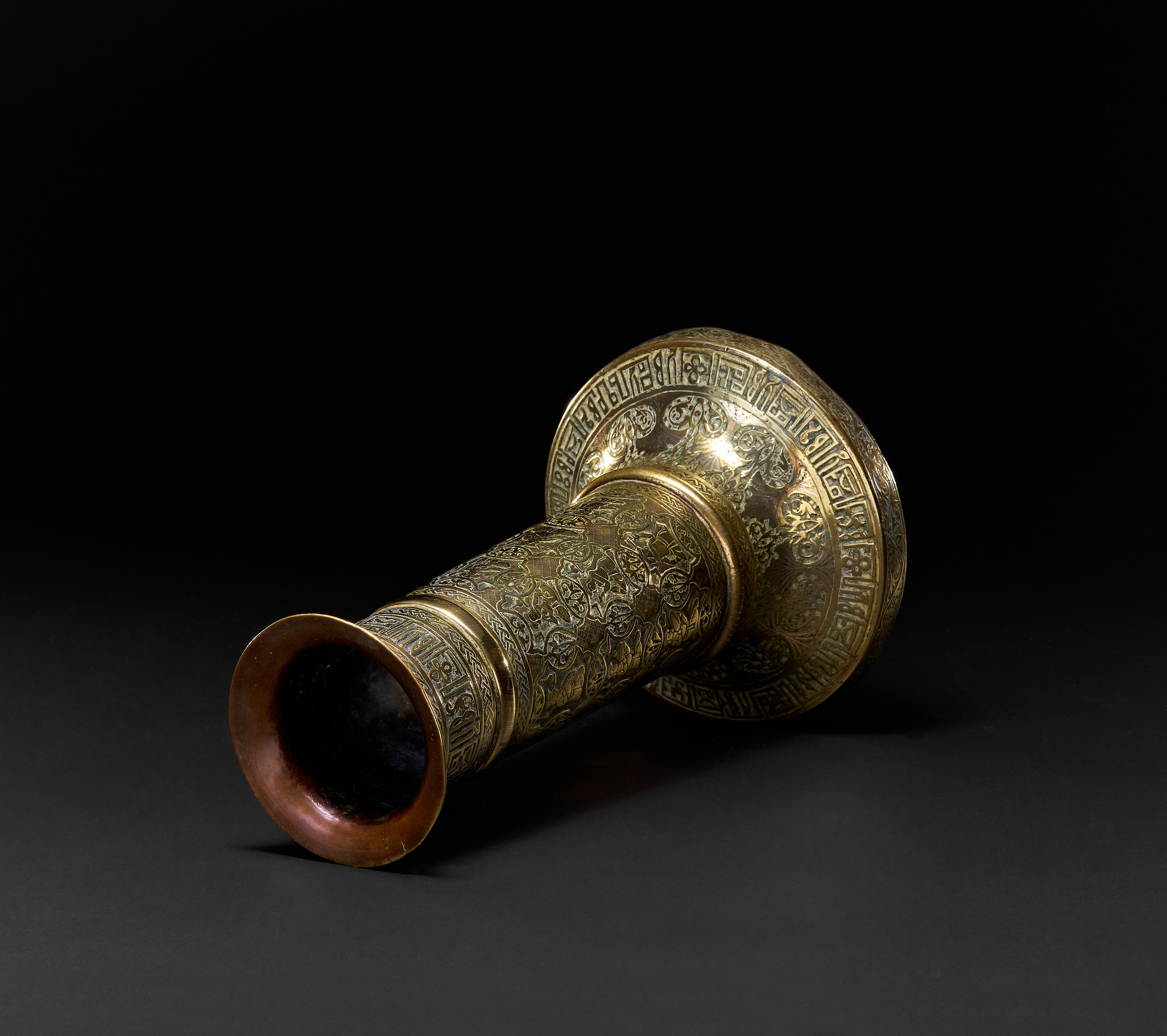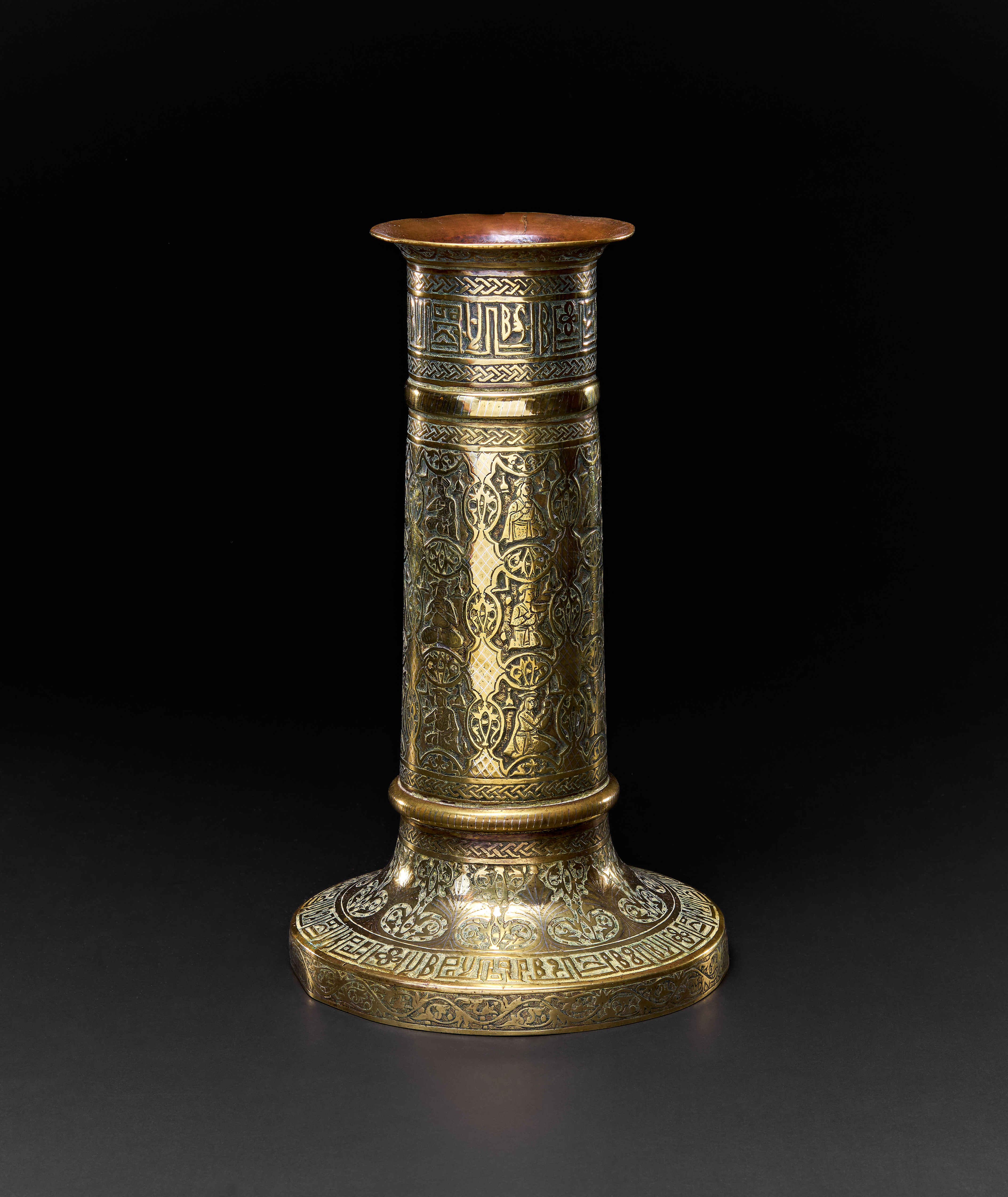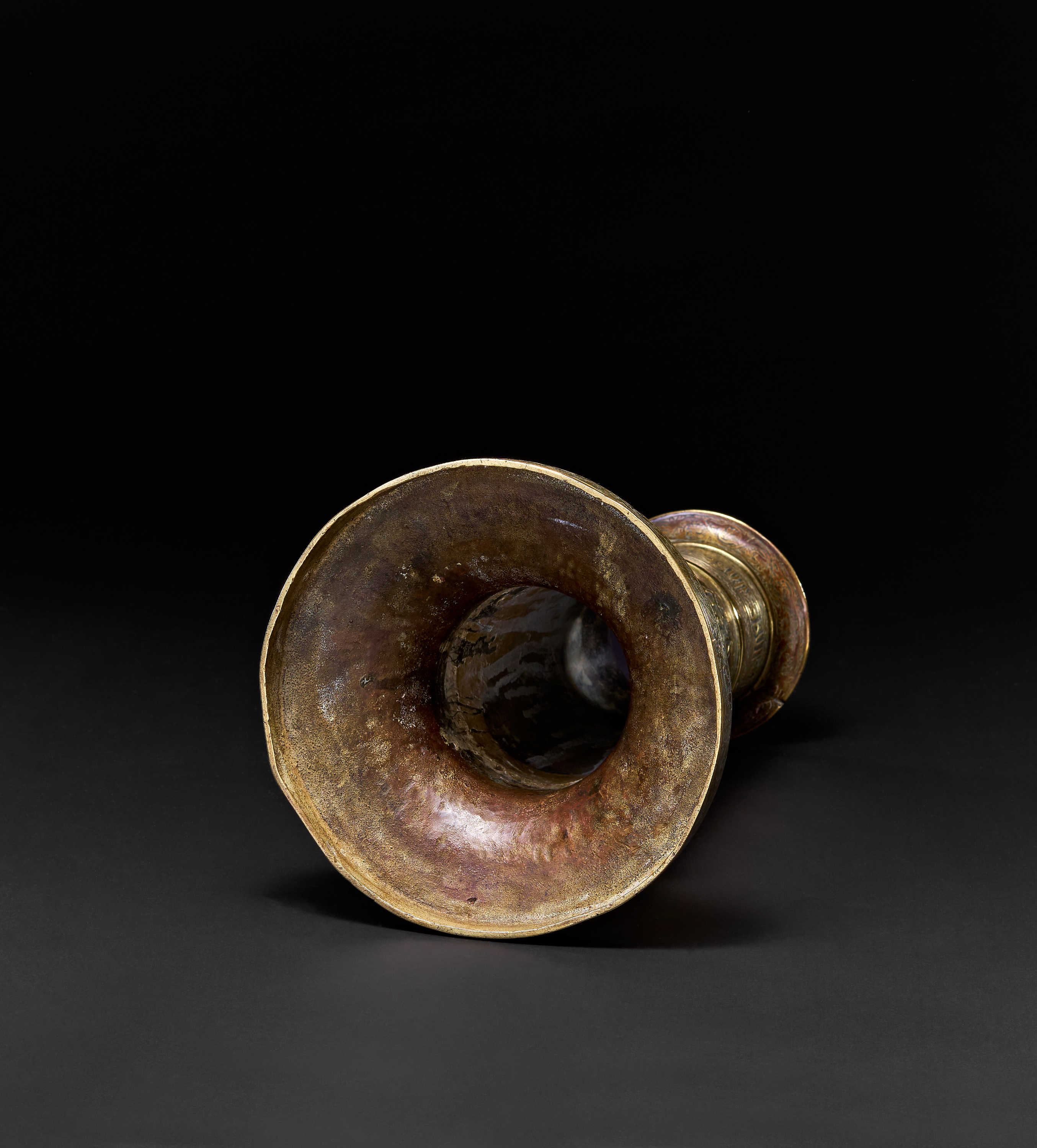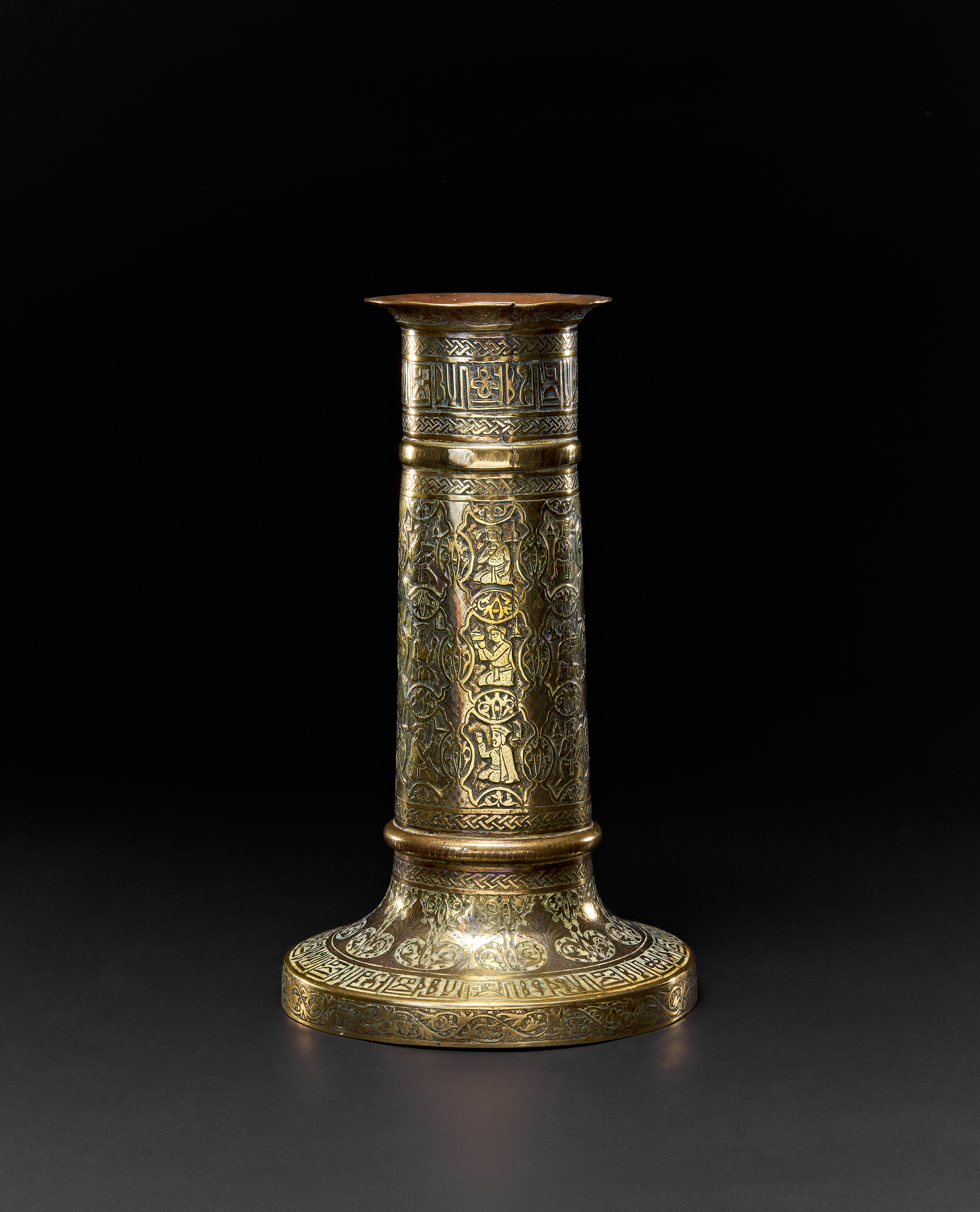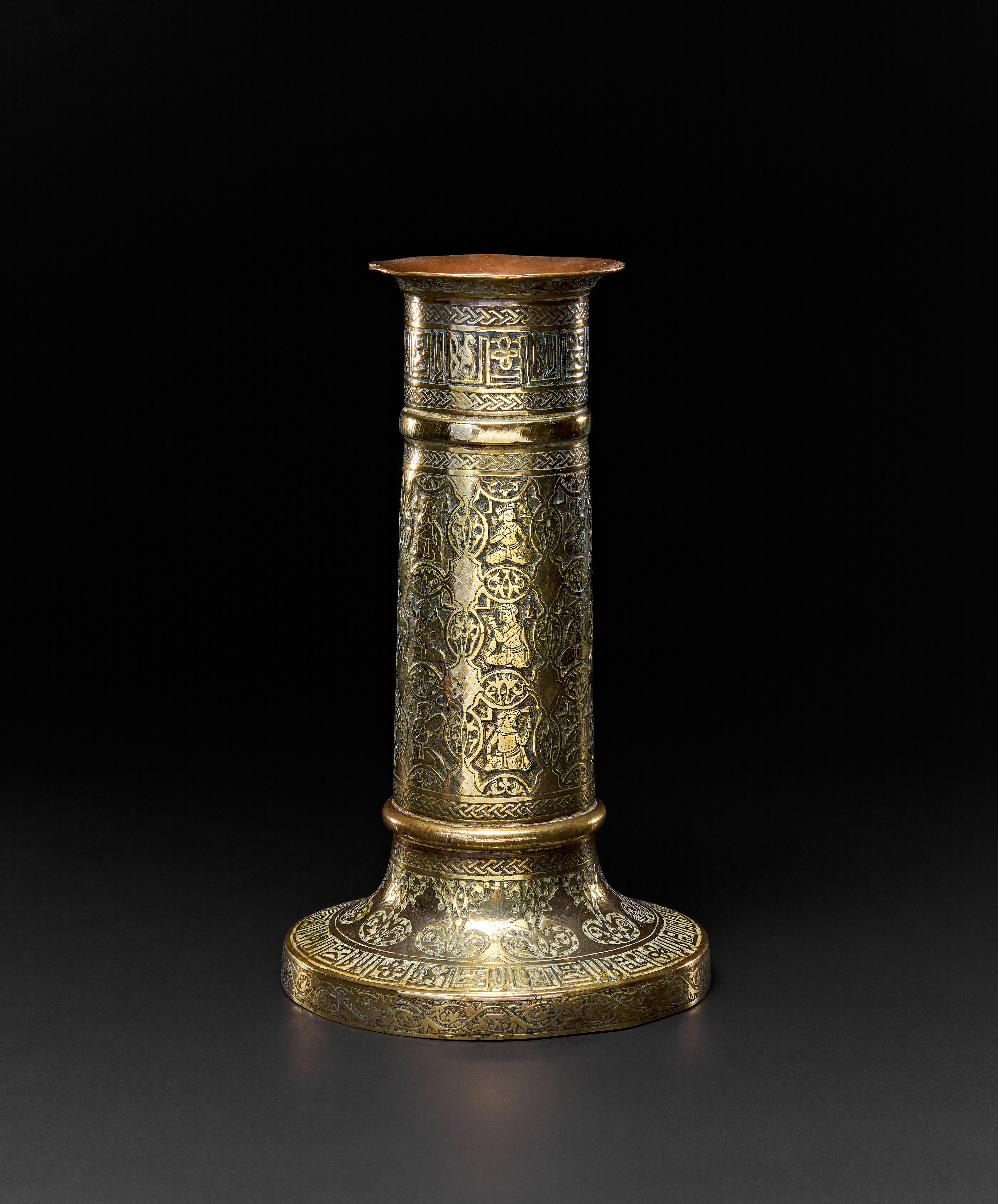 A QAJAR BRASS TORCH STAND, PERSIA, 19TH CENTURY