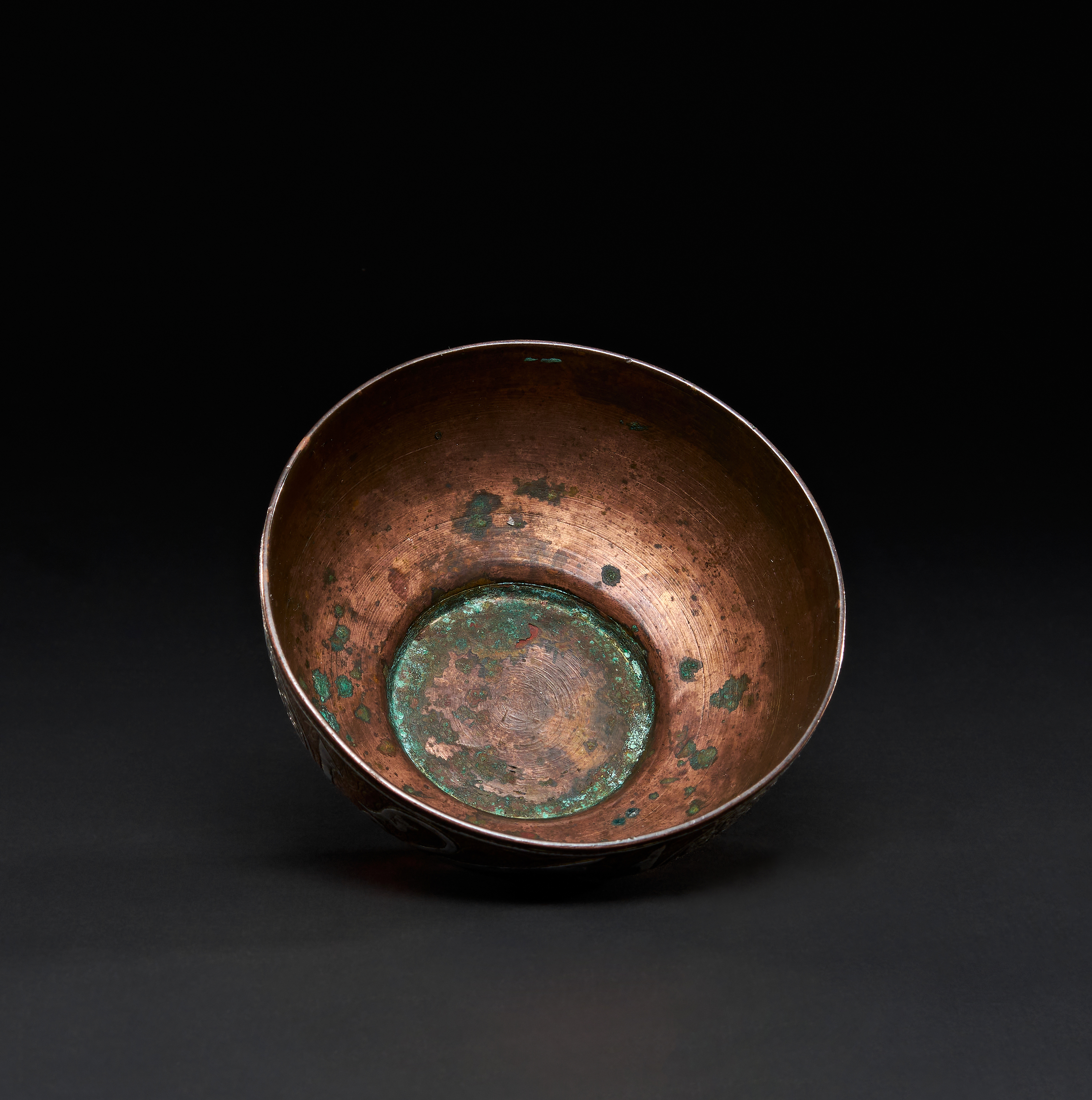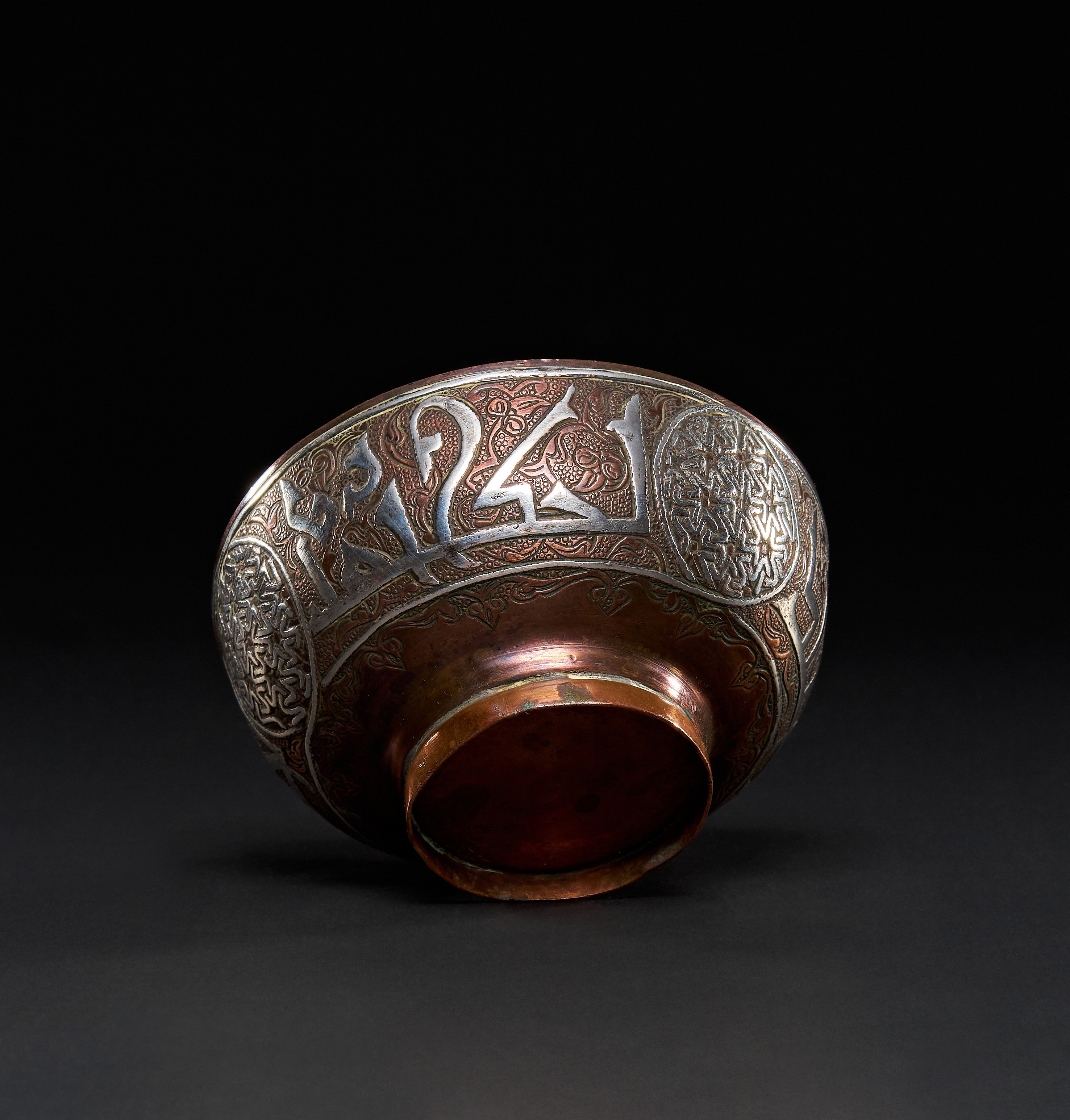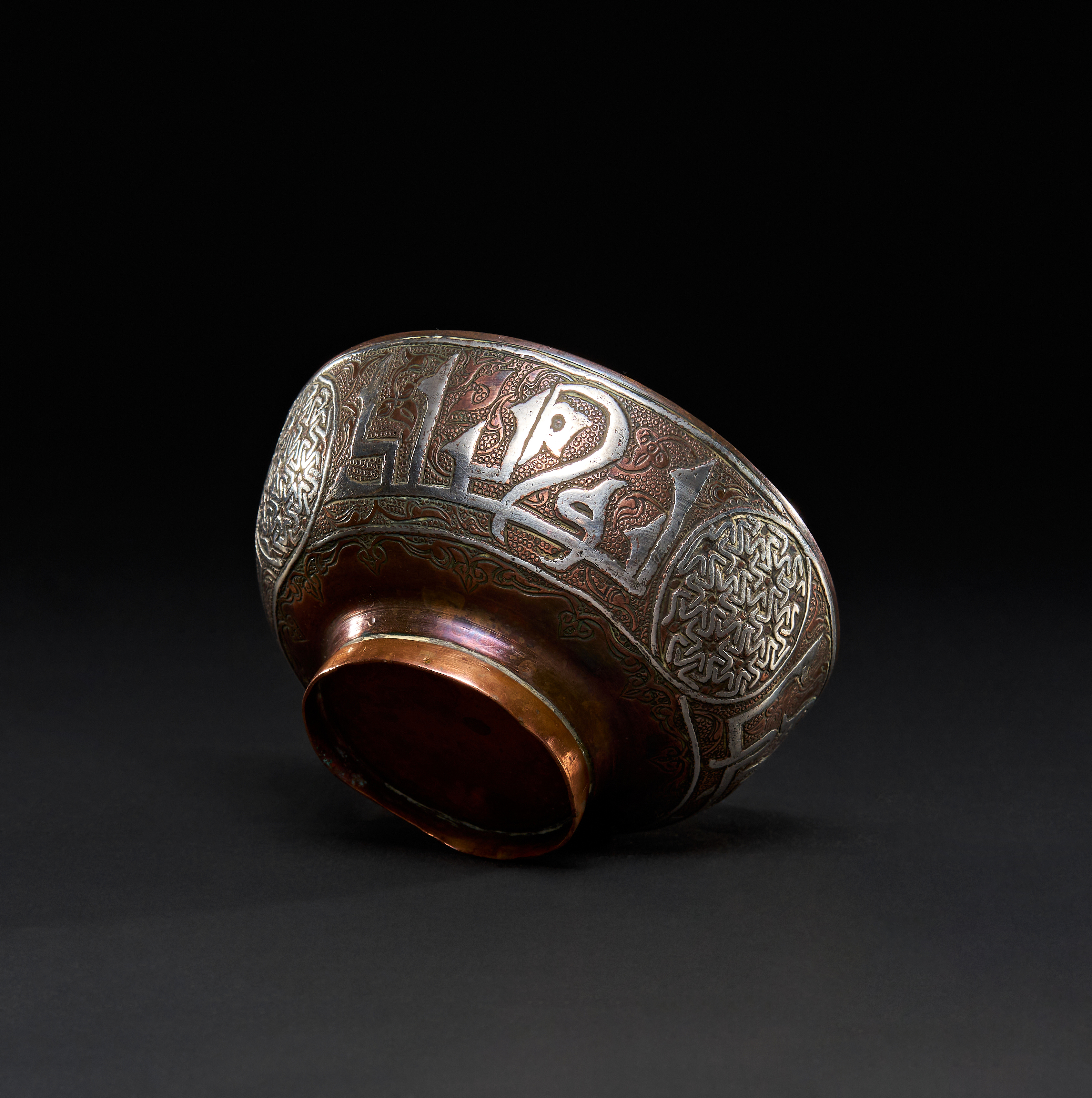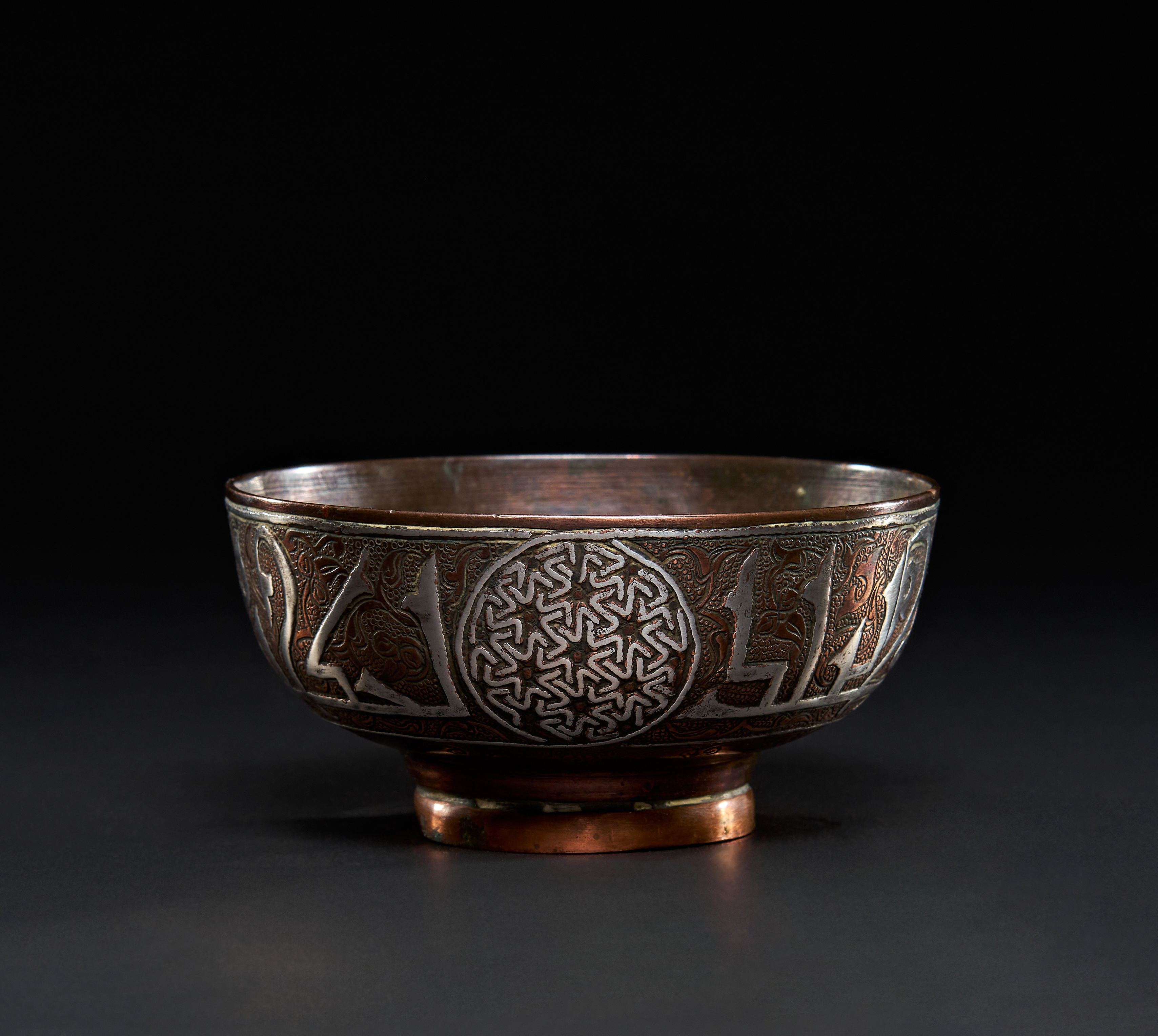 A SILVER INLAID COPPER DRINKING BOWL WITH KUFIC INSCRIPTION, DAMASCUS, 19TH CENTURY