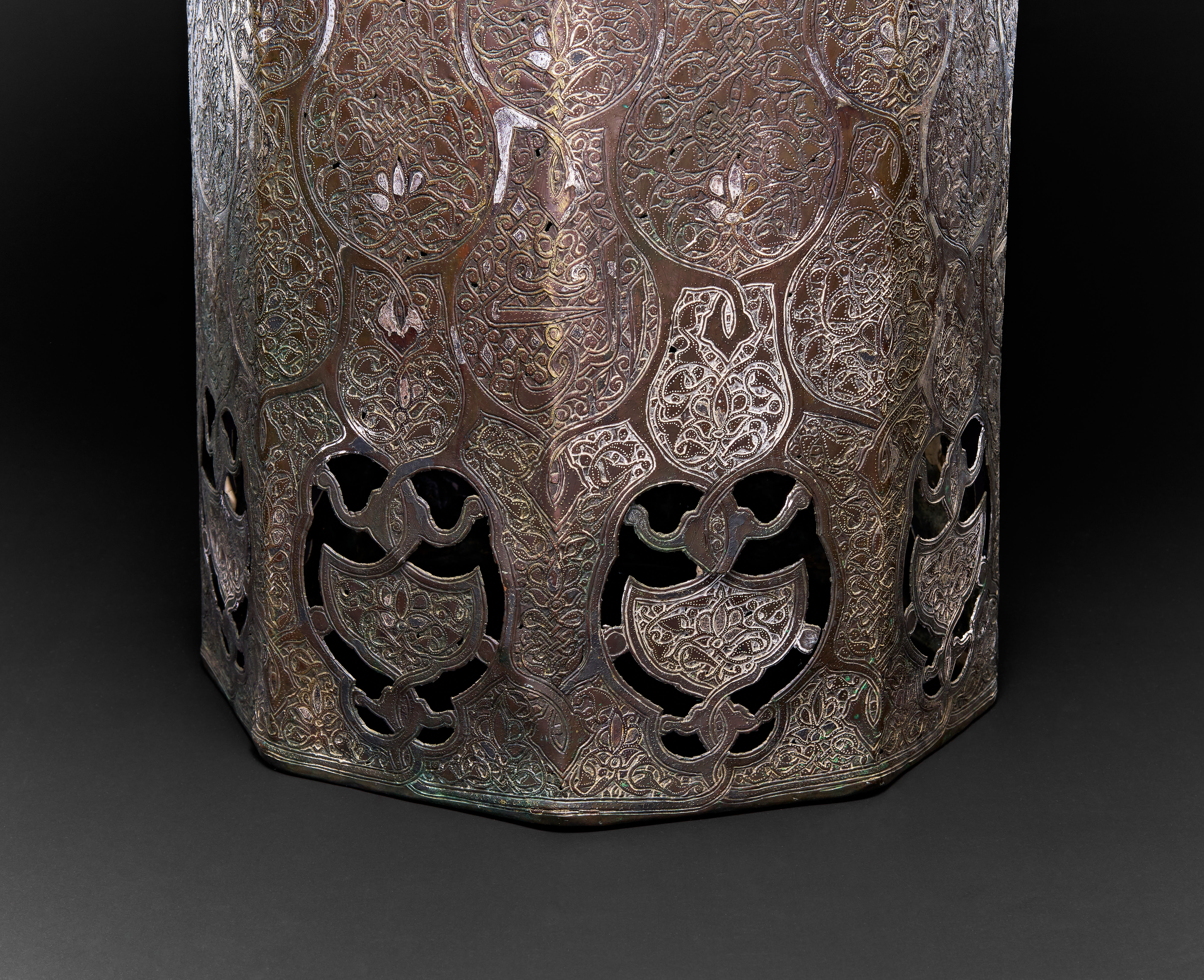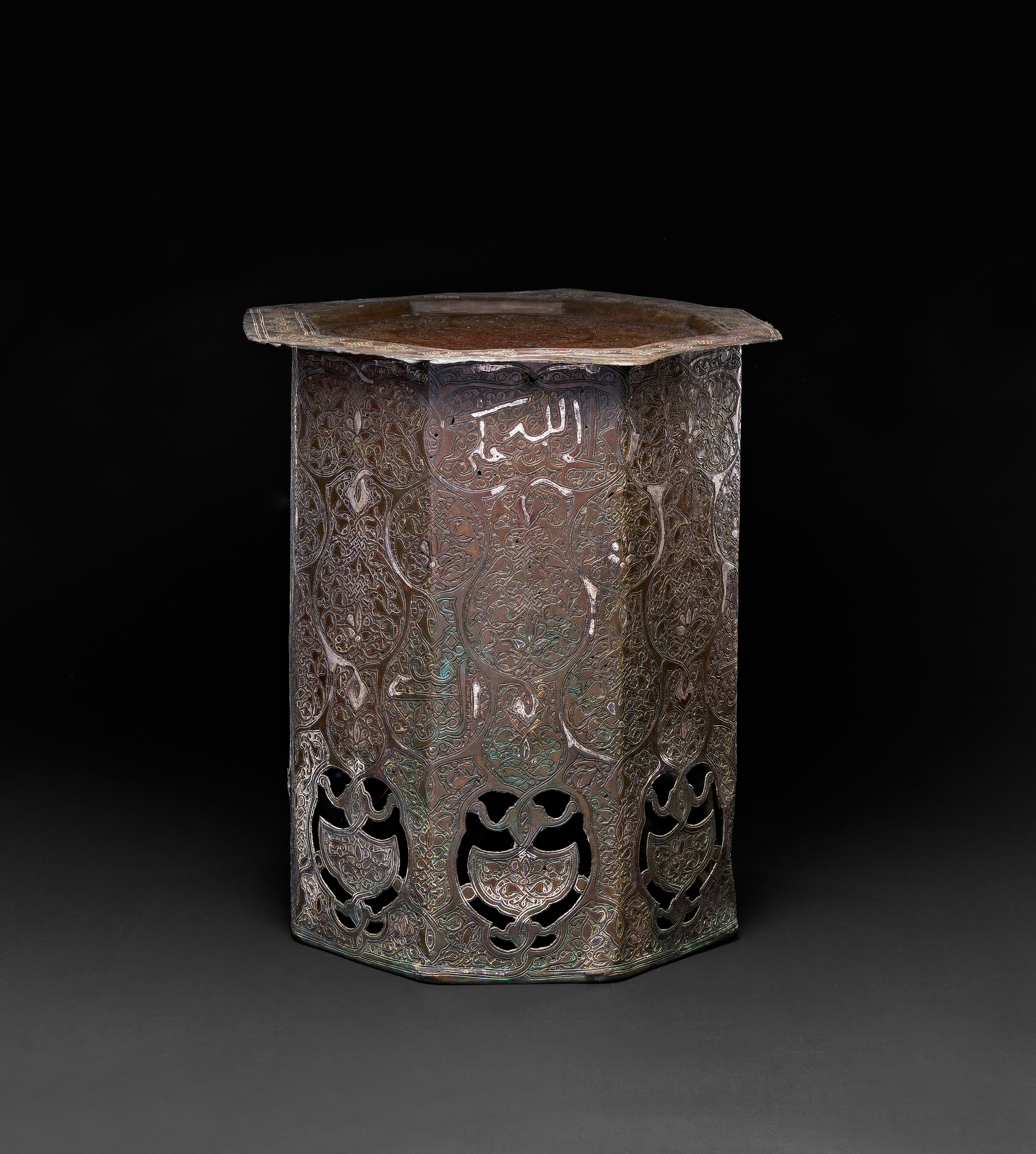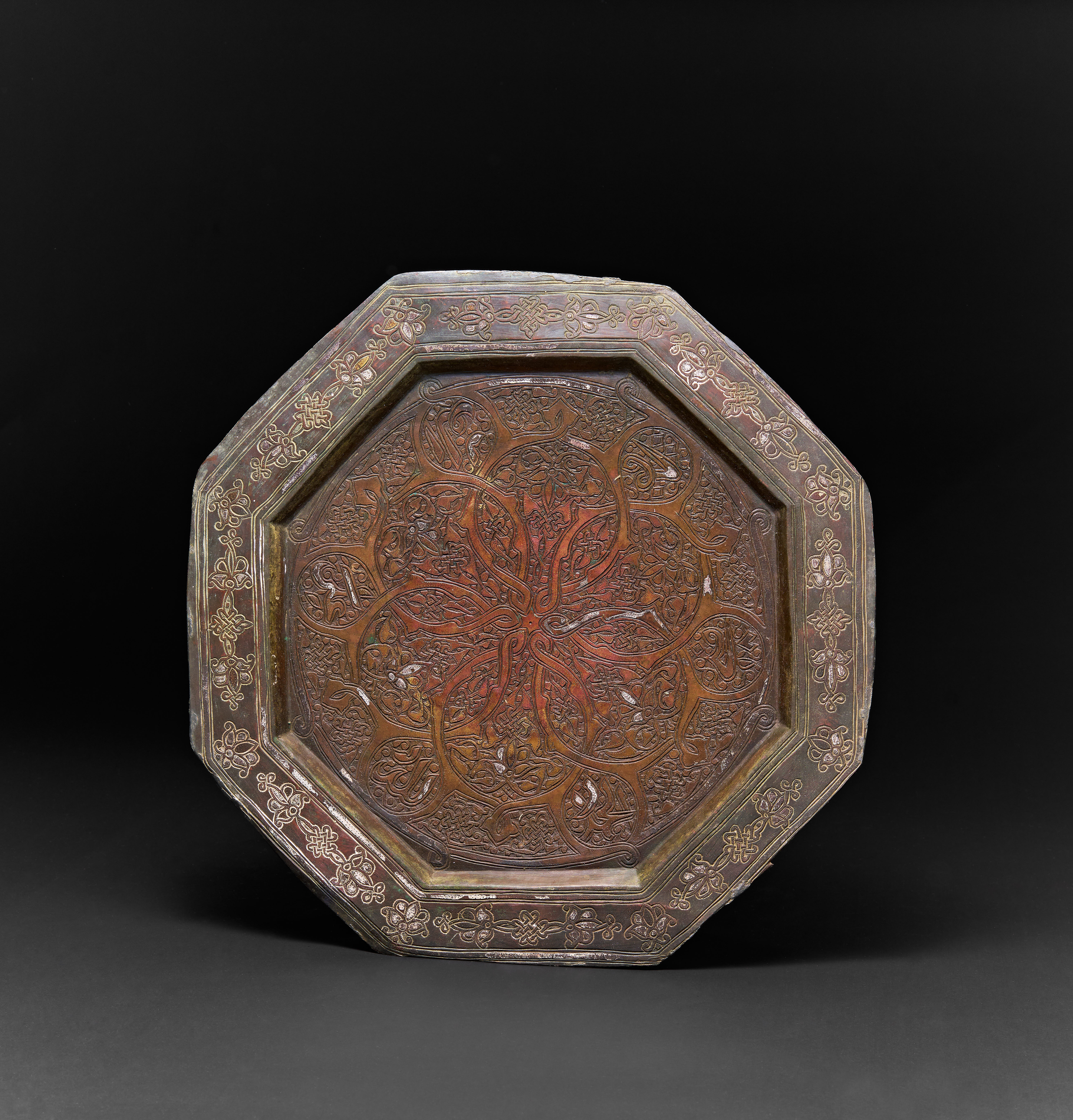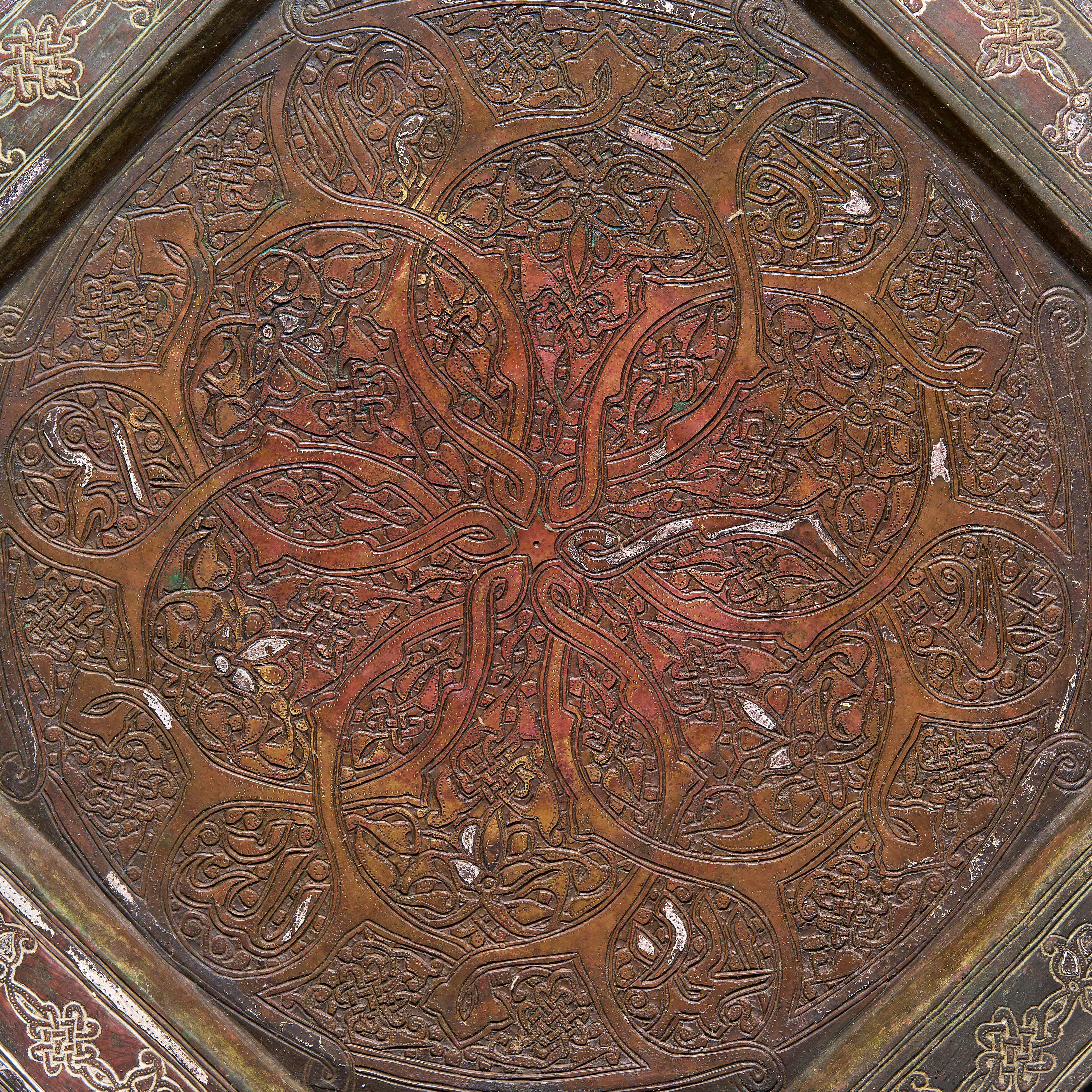 A MAMLUK REVIVAL SILVER INLAID BRASS TABLE, EGYPT OR SYRIA, 19TH CENTURY