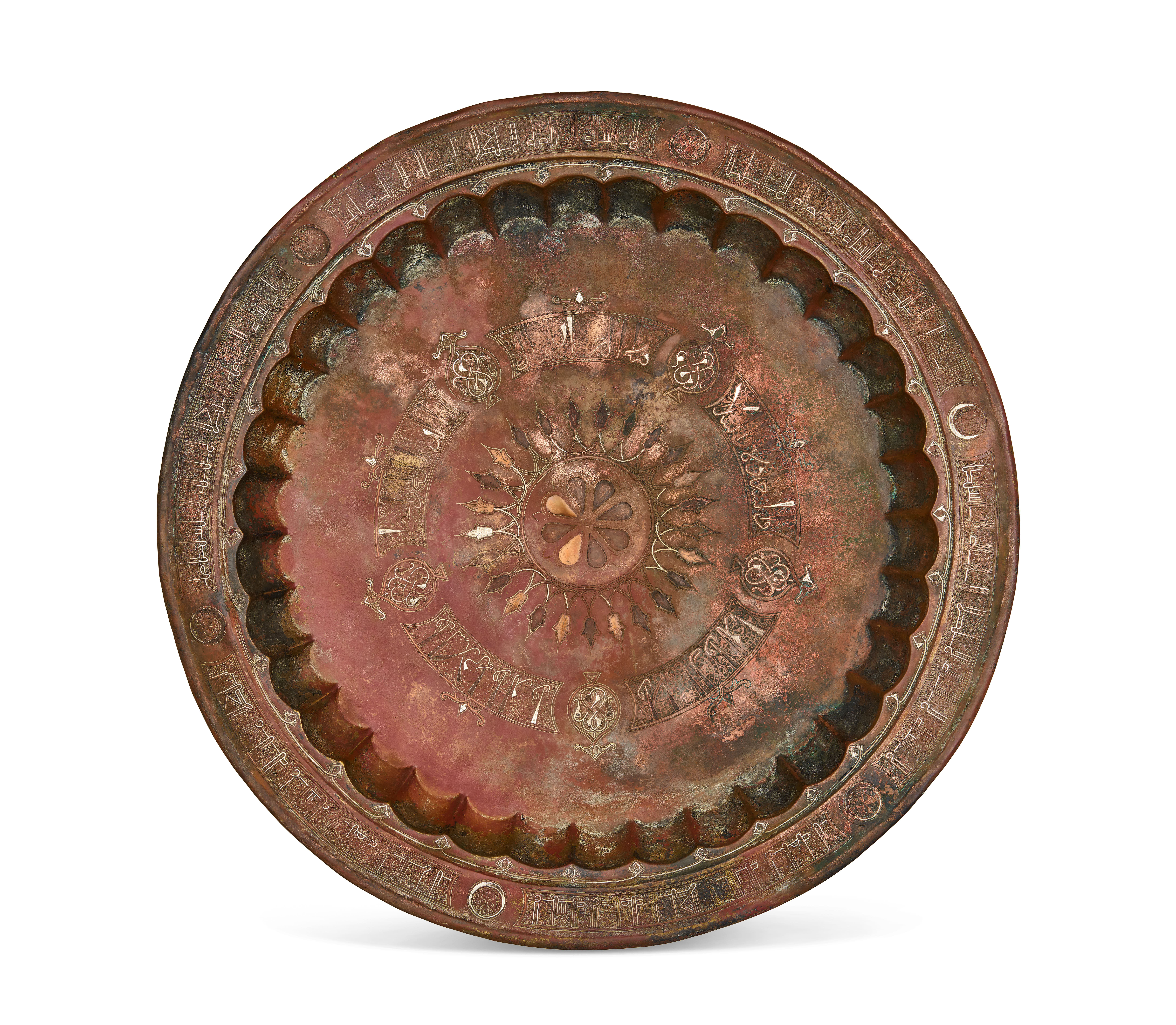 A LARGE SILVER INLAID SELJUK STYLE TRAY