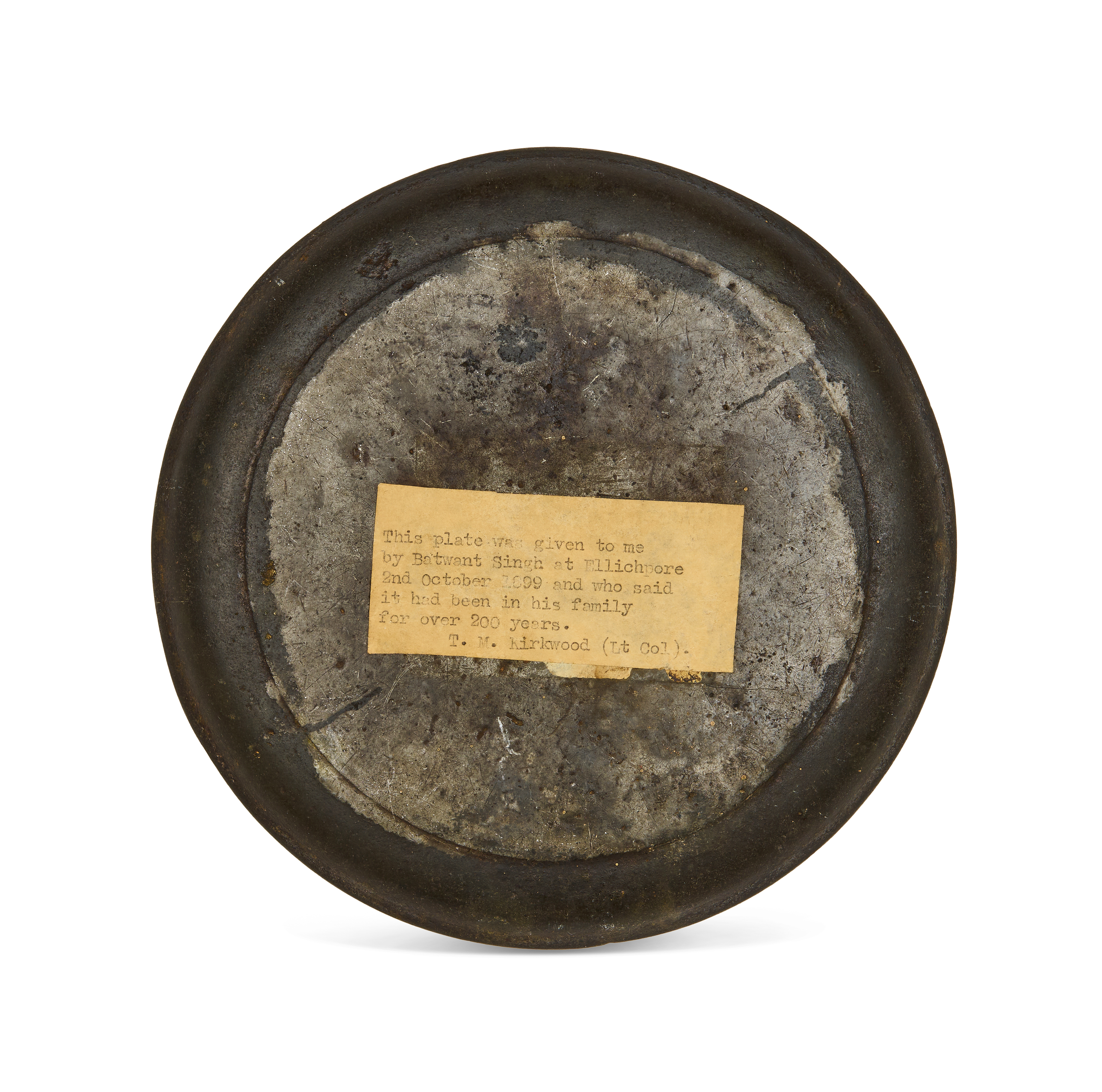 A SILVER INLAID ALLOY BIDRI DISH, DECCAN, 18TH CENTURY