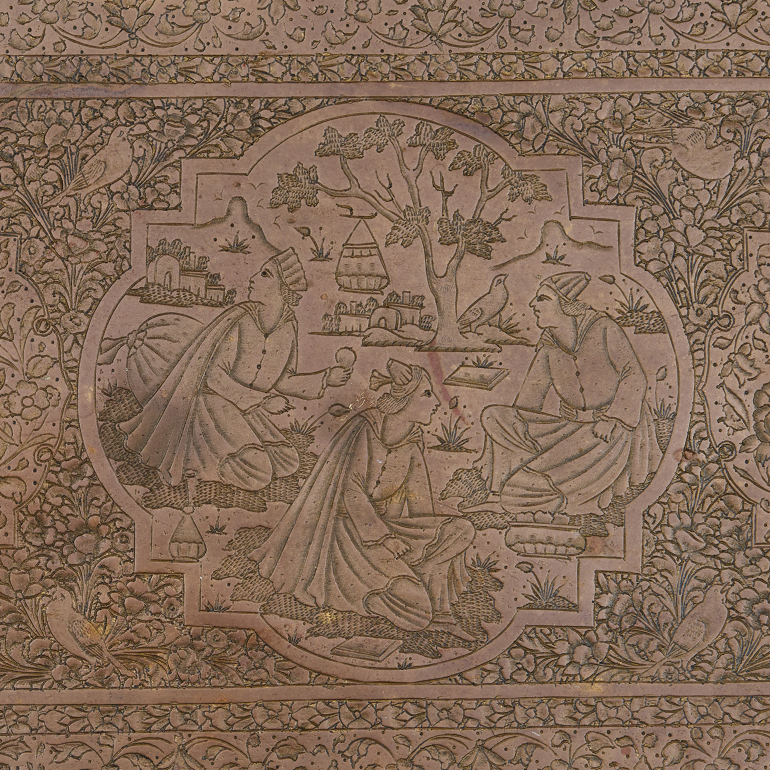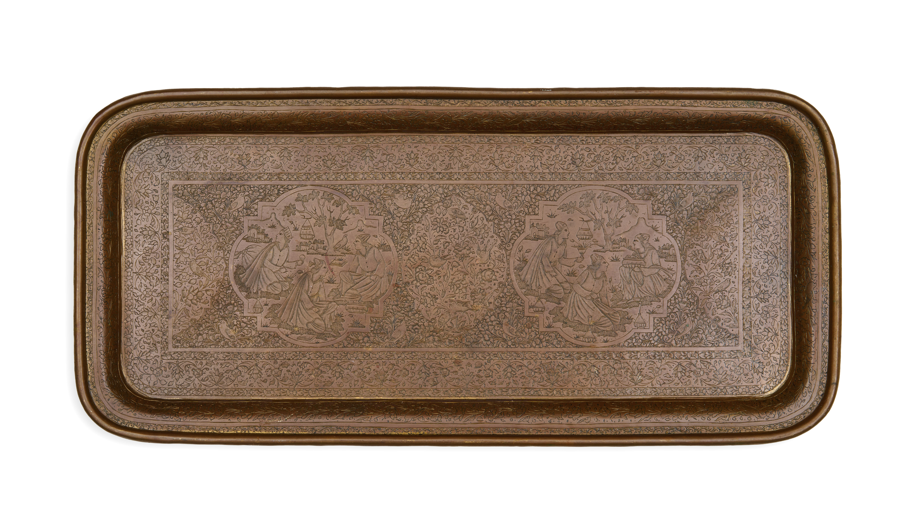 A PERSIAN BRASS ENGRAVED TRAY, QAJAR, 19TH CENTURY